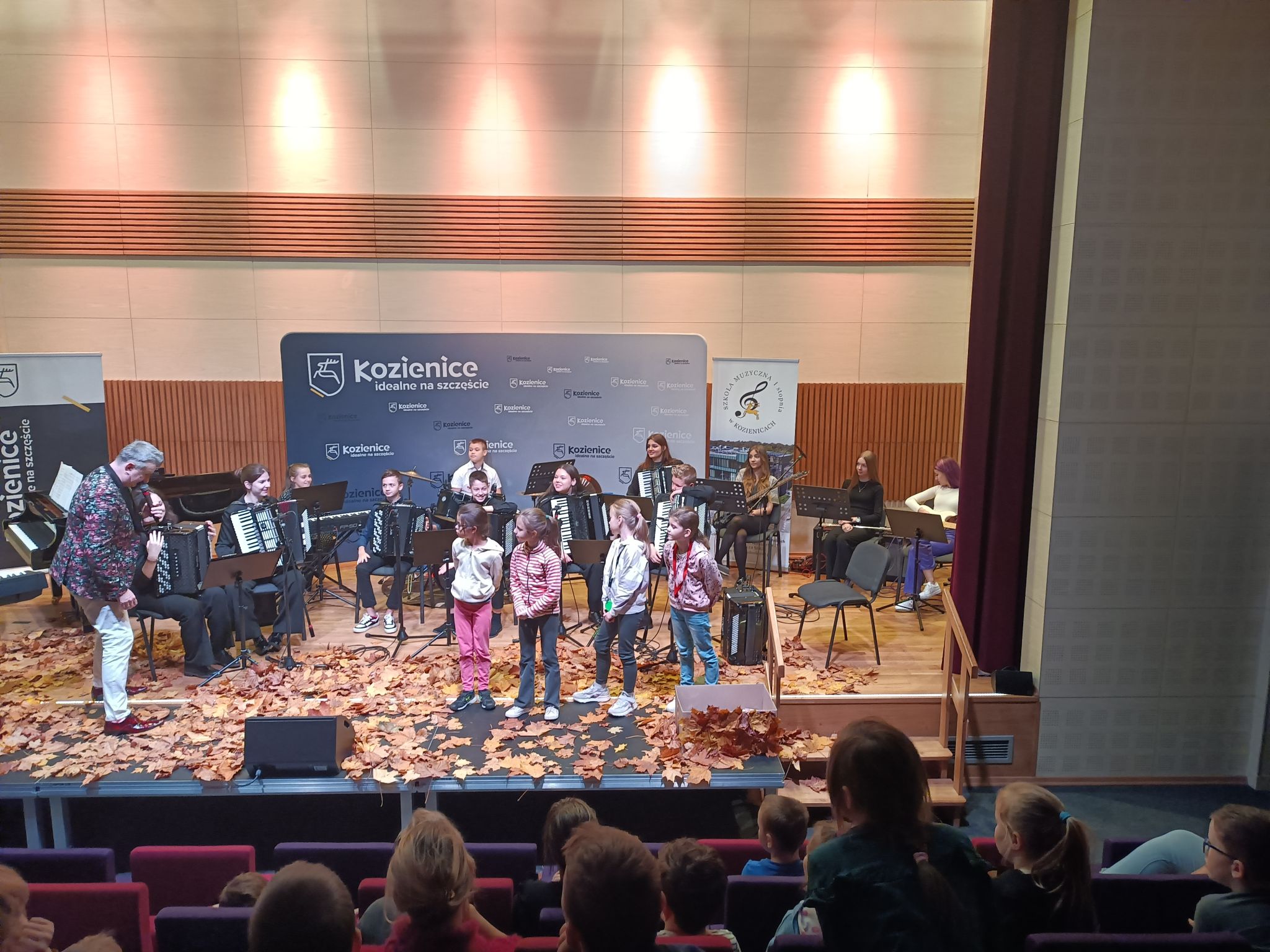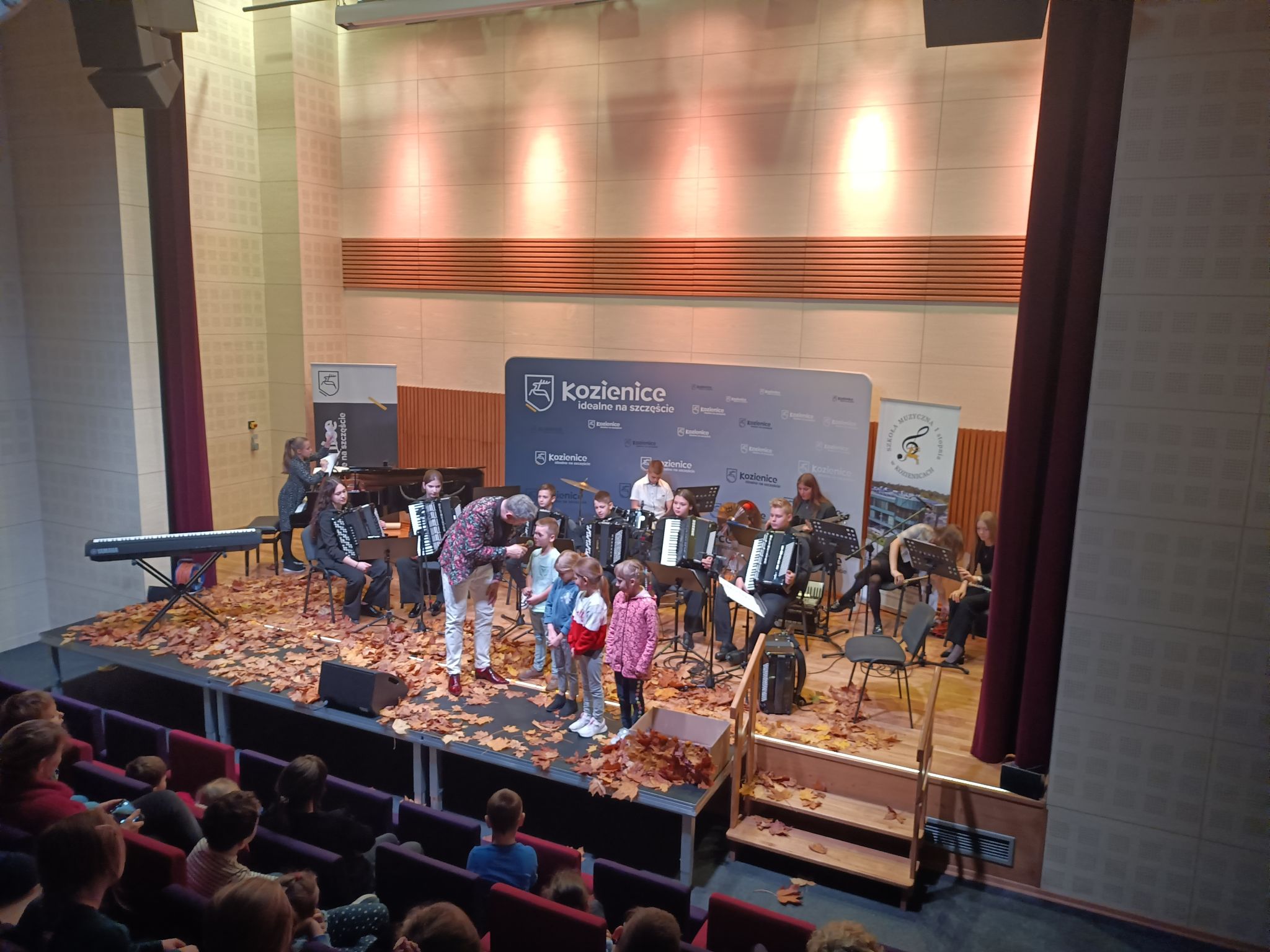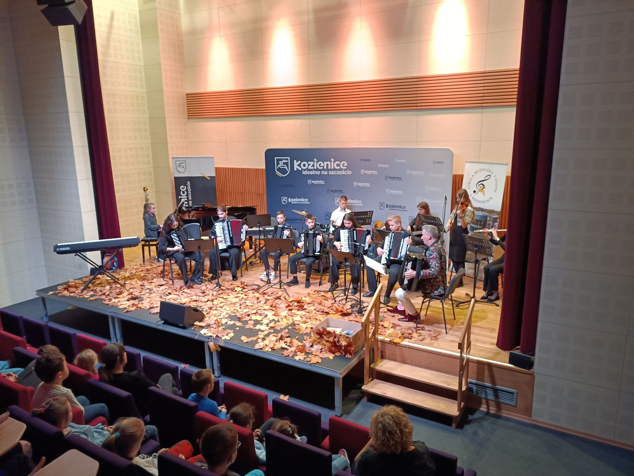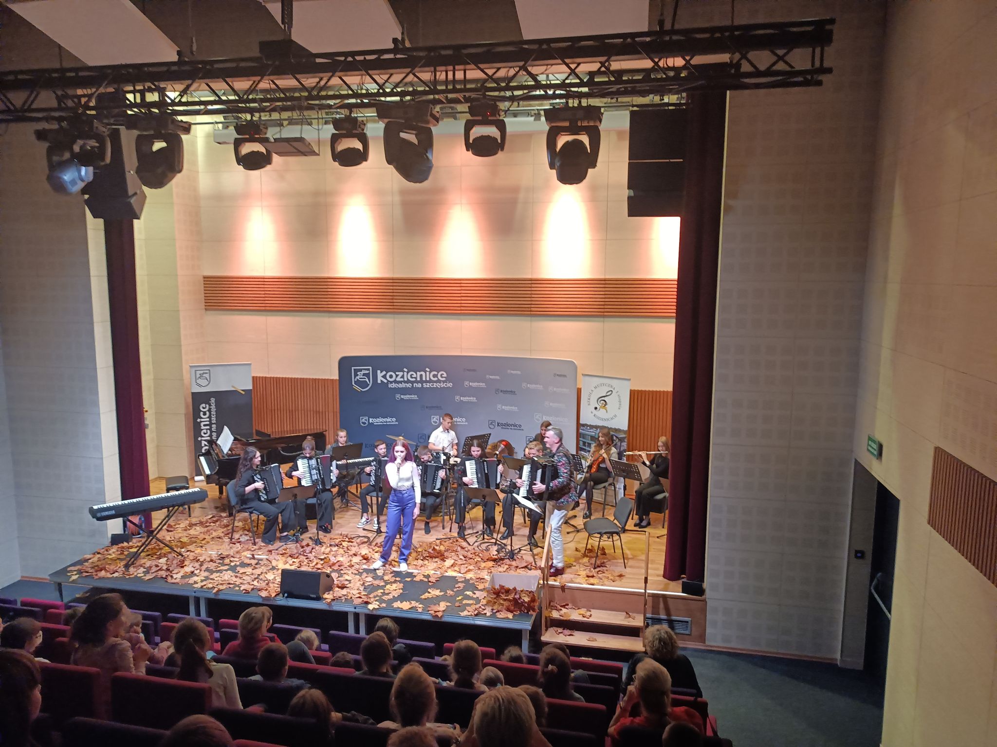 Szkoła Muzyczna I stopnia w Kozienicach w dniu 28.10.2022 r. dała dla dzieci koncert edukacyjny pt.:”Jesień”, a uczniowie klas 2b, 2c oraz 2d mieli przyjemność uczestniczenia w tym pięknym i niecodziennym wydarzeniu. Na scenie sali kameralnej CKA wystąpił zespół akordeonowy „Arturo  Band” pod dyrekcją pana Artura Miedzińskiego, który za sprawą cudownych dzwięków ukazał jesień w innym wymiarze i przeniósł nas w delikatny, piękny i ulotny świat.