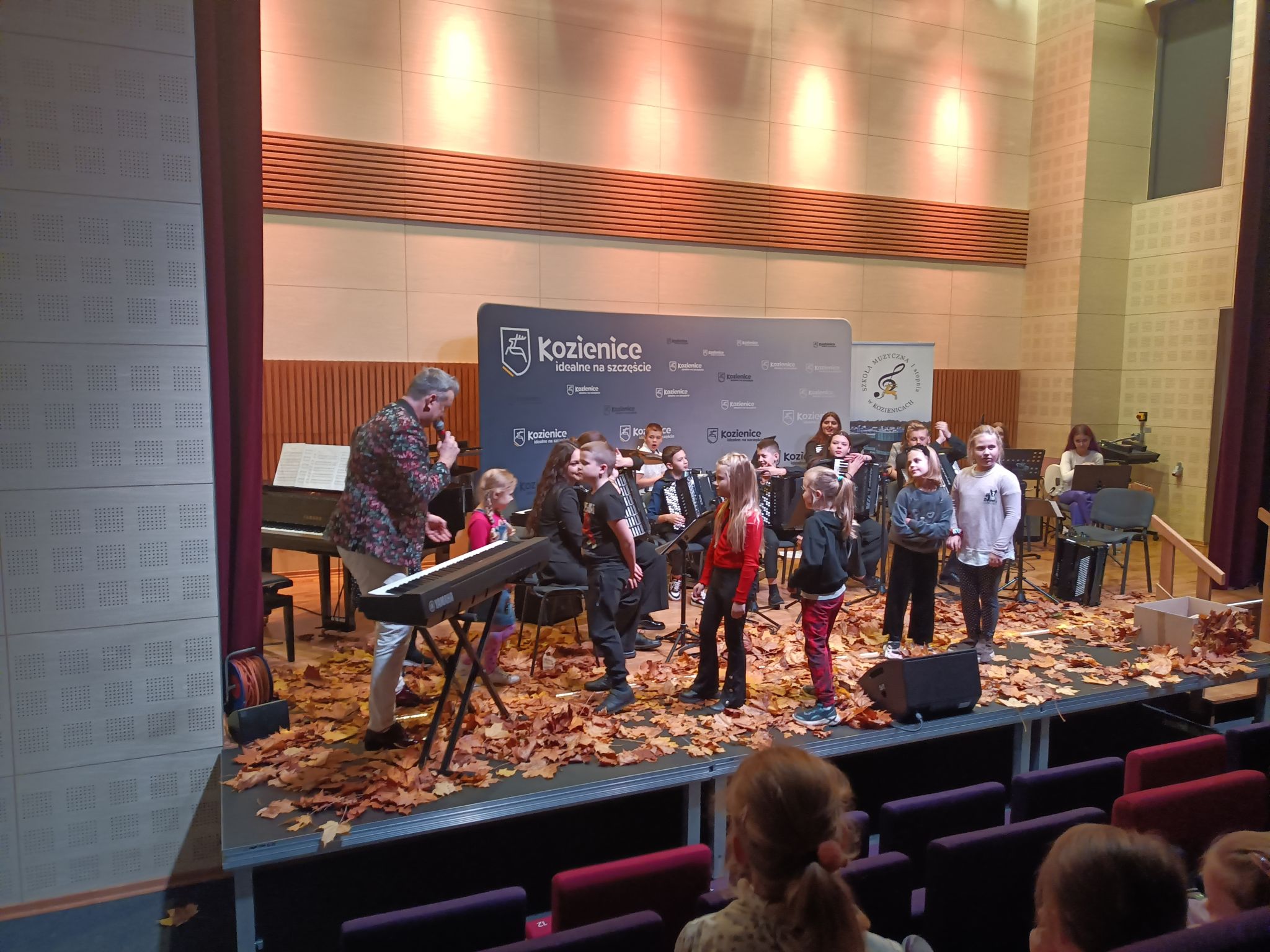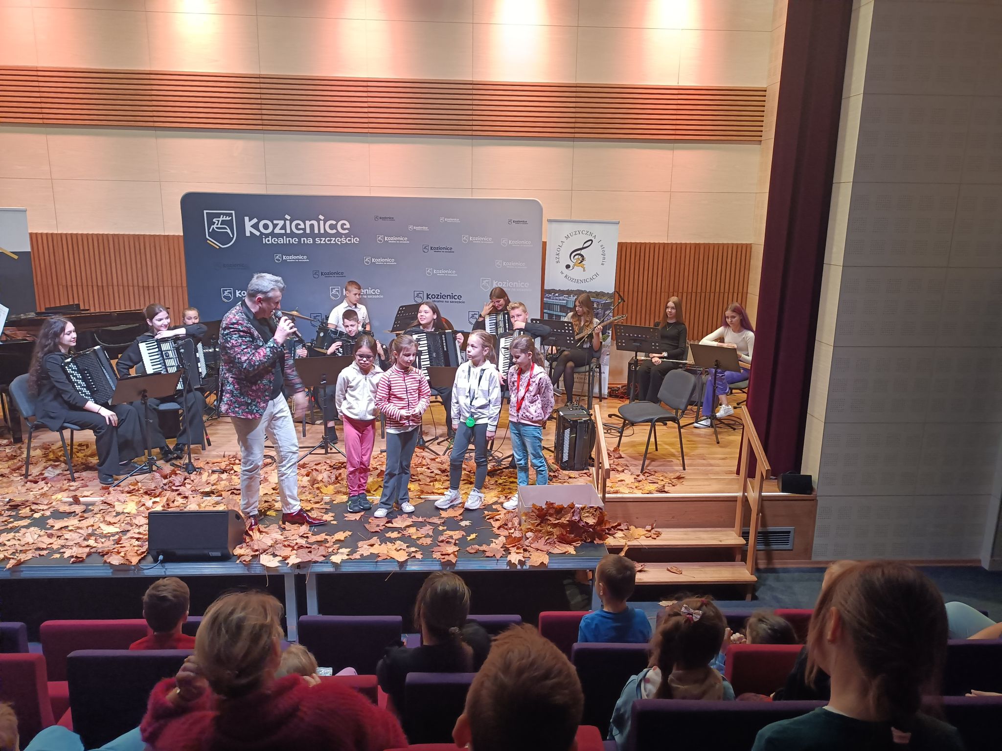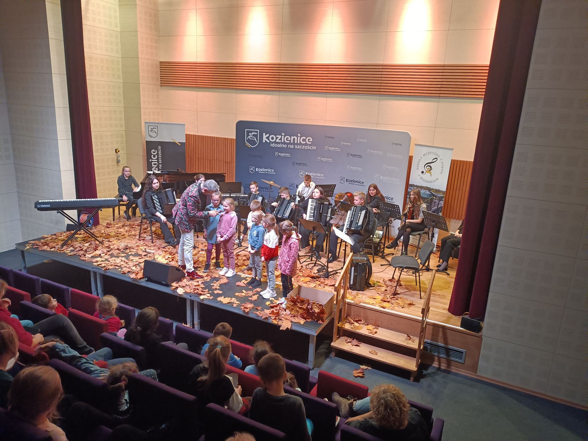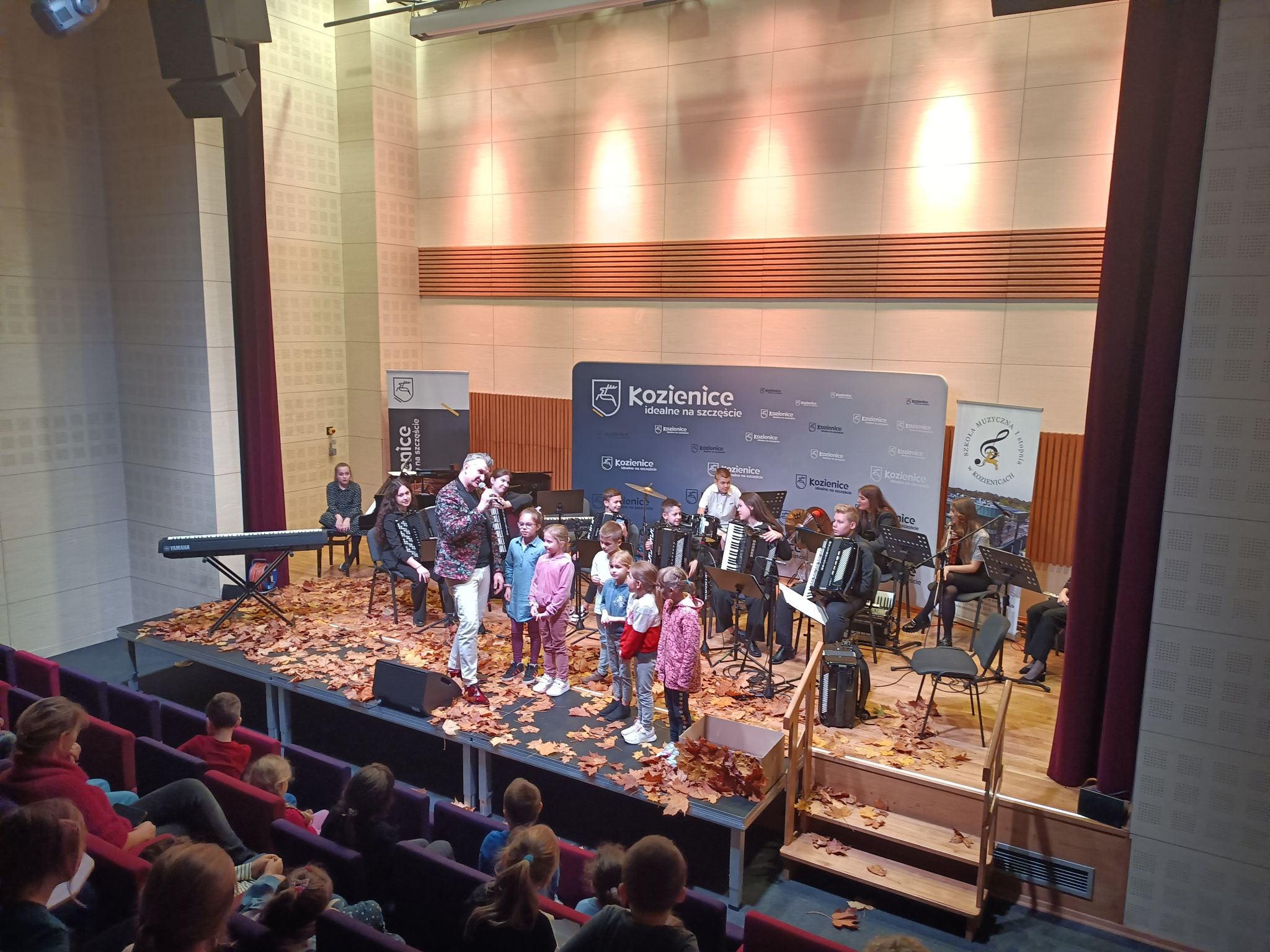 Szkoła Muzyczna I stopnia w Kozienicach w dniu 28.10.2022 r. dała dla dzieci koncert edukacyjny pt.:”Jesień”, a uczniowie klas 2b, 2c oraz 2d mieli przyjemność uczestniczenia w tym pięknym i niecodziennym wydarzeniu. Na scenie sali kameralnej CKA wystąpił zespół akordeonowy „Arturo  Band” pod dyrekcją pana Artura Miedzińskiego, który za sprawą cudownych dzwięków ukazał jesień w innym wymiarze i przeniósł nas w delikatny, piękny i ulotny świat.