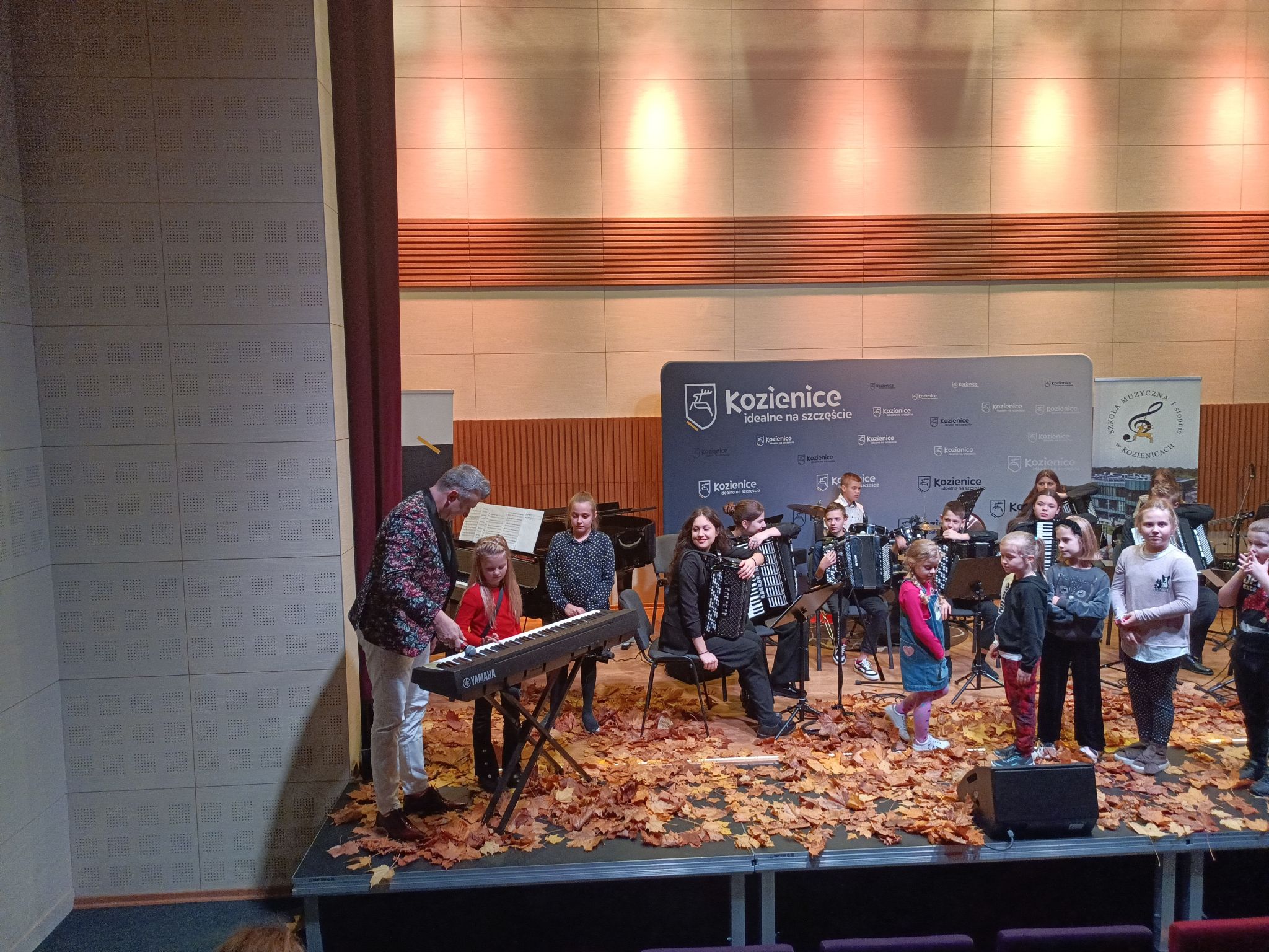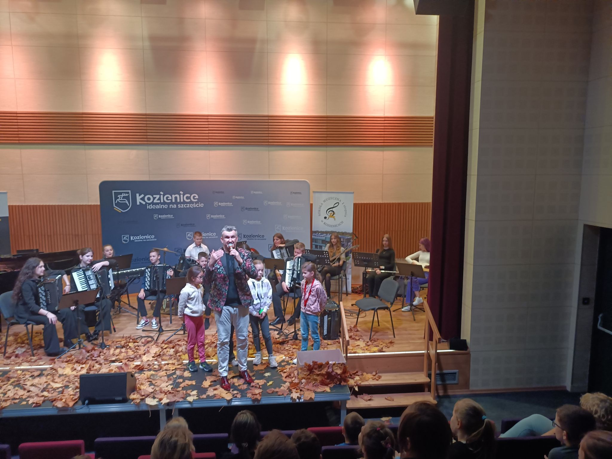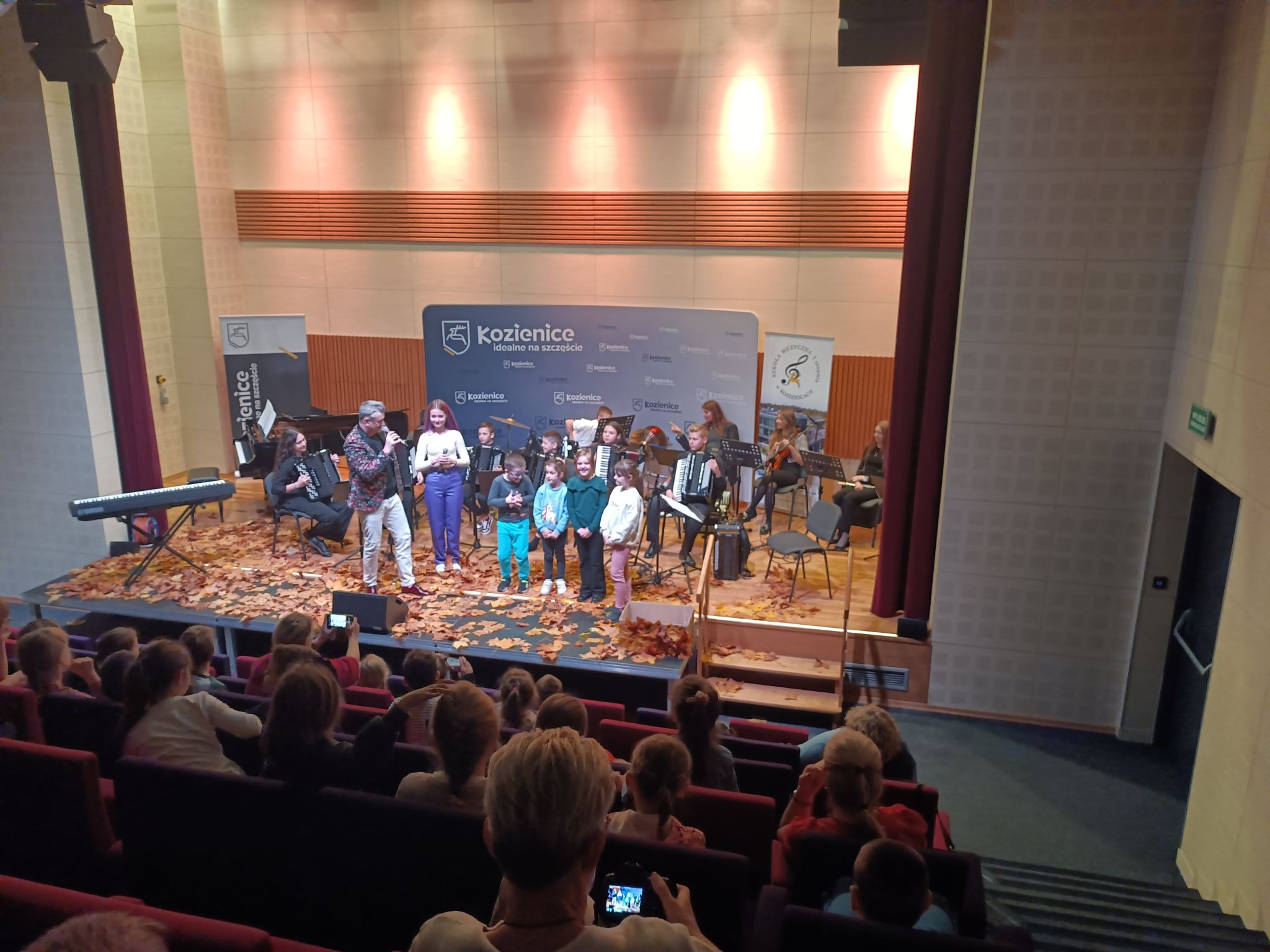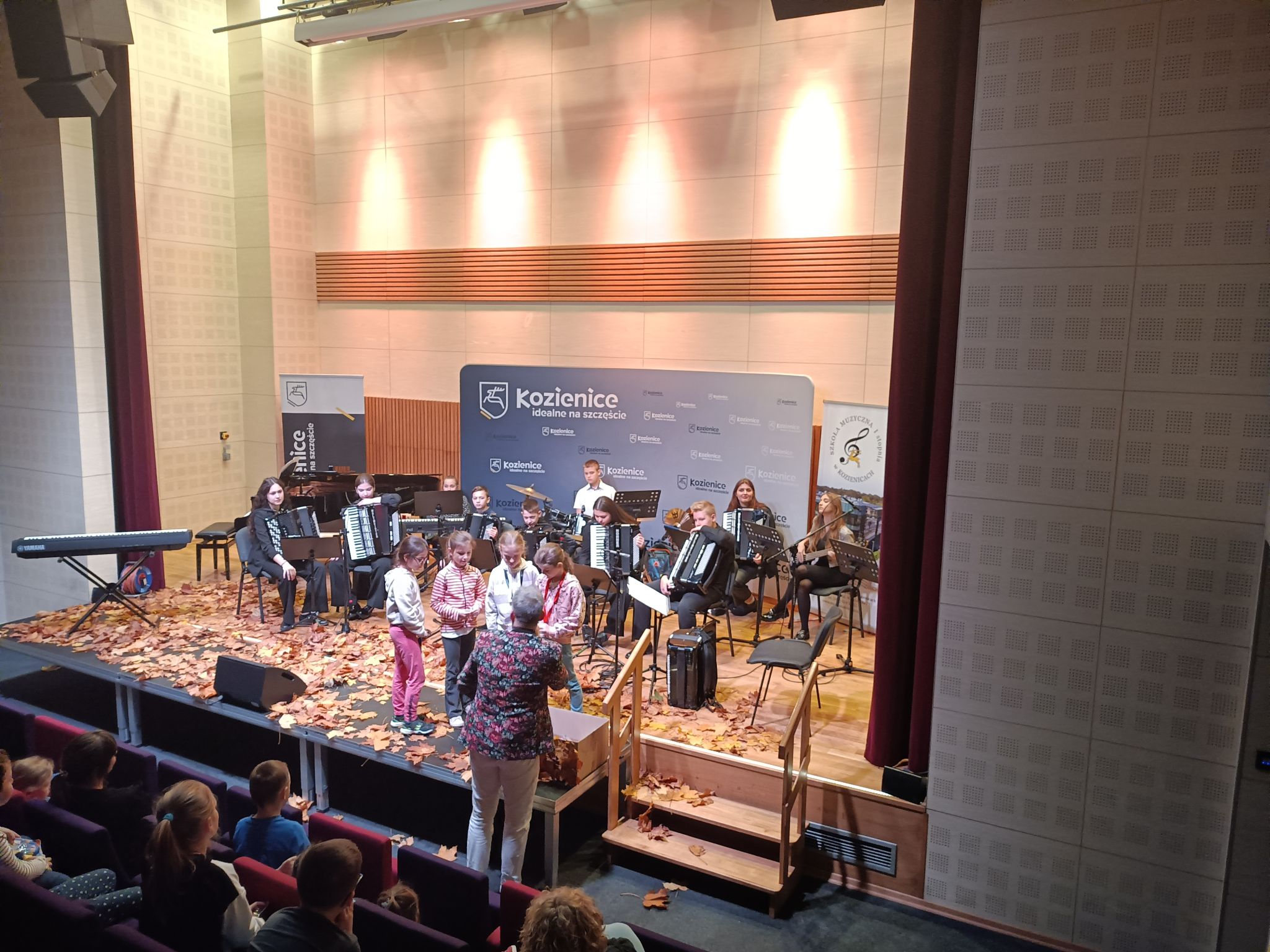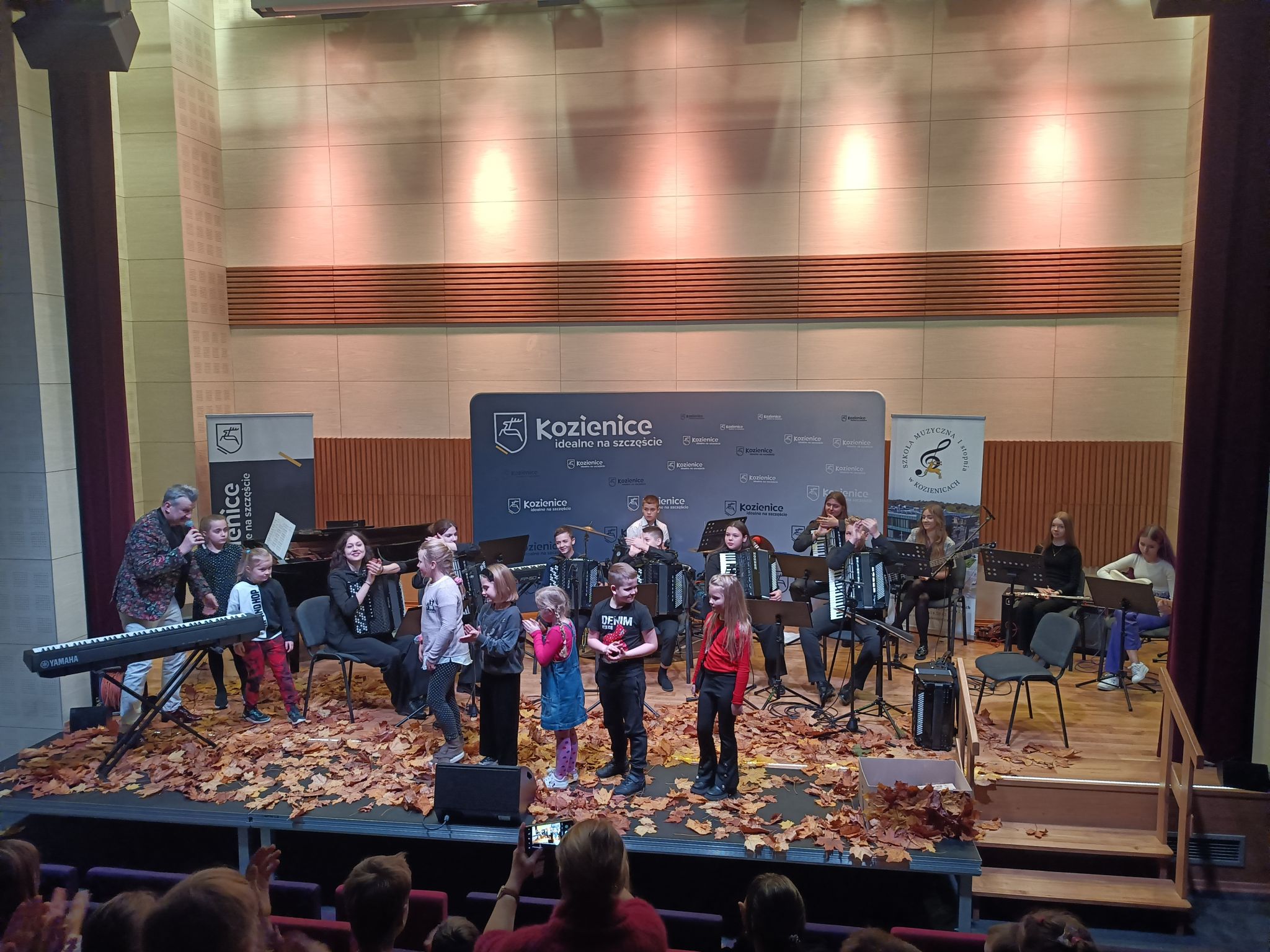 Szkoła Muzyczna I stopnia w Kozienicach w dniu 28.10.2022 r. dała dla dzieci koncert edukacyjny pt.:”Jesień”, a uczniowie klas 2b, 2c oraz 2d mieli przyjemność uczestniczenia w tym pięknym i niecodziennym wydarzeniu. Na scenie sali kameralnej CKA wystąpił zespół akordeonowy „Arturo  Band” pod dyrekcją pana Artura Miedzińskiego, który za sprawą cudownych dzwięków ukazał jesień w innym wymiarze i przeniósł nas w delikatny, piękny i ulotny świat.