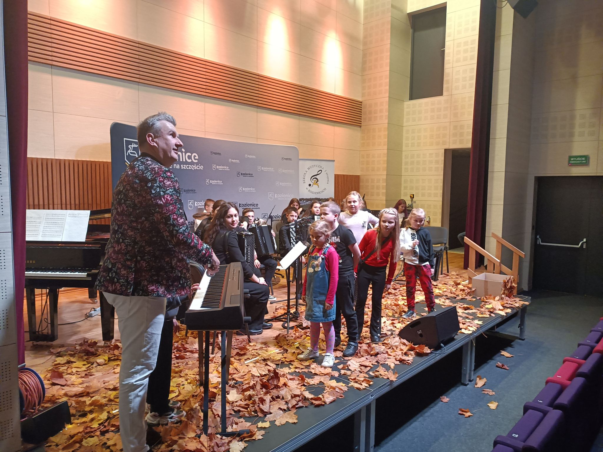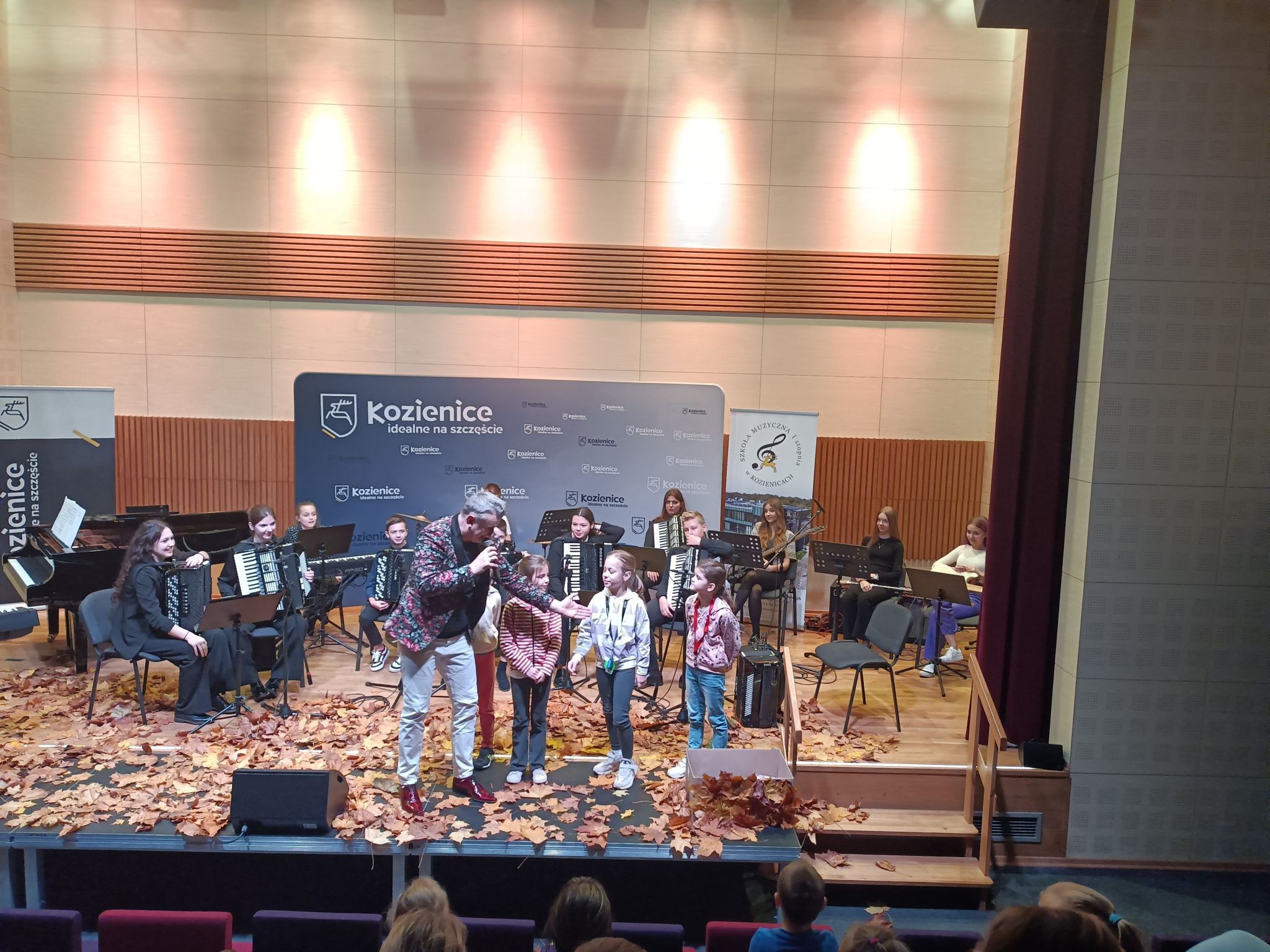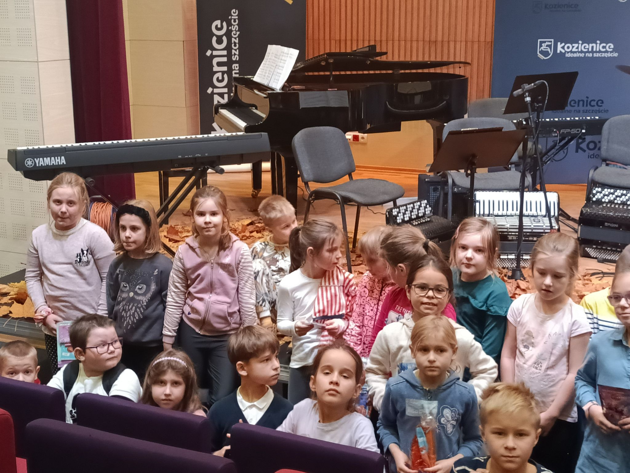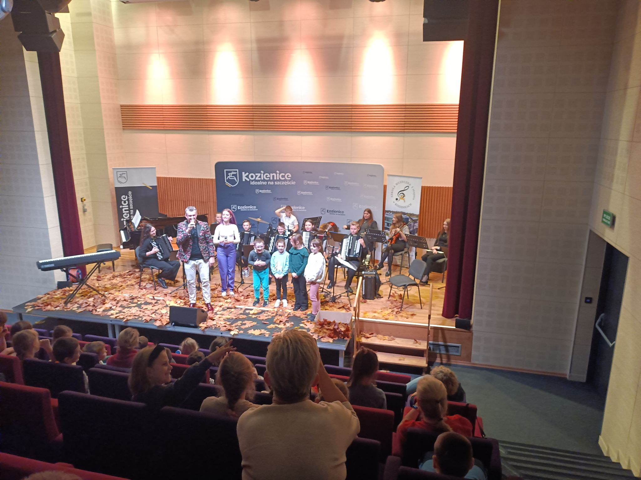 Szkoła Muzyczna I stopnia w Kozienicach w dniu 28.10.2022 r. dała dla dzieci koncert edukacyjny pt.:”Jesień”, a uczniowie klas 2b, 2c oraz 2d mieli przyjemność uczestniczenia w tym pięknym i niecodziennym wydarzeniu. Na scenie sali kameralnej CKA wystąpił zespół akordeonowy „Arturo  Band” pod dyrekcją pana Artura Miedzińskiego, który za sprawą cudownych dzwięków ukazał jesień w innym wymiarze i przeniósł nas w delikatny, piękny i ulotny świat.