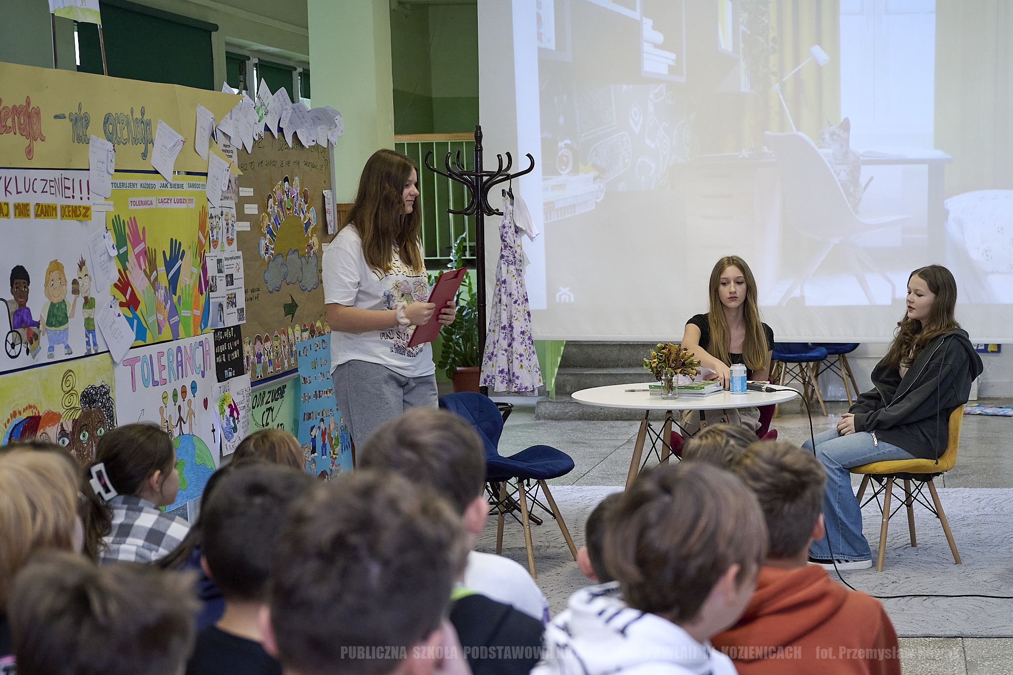 W tym tygodniu zostały również przeprowadzone warsztaty profilaktyczne dla klas IV-VII pt. „Tolerancja i szacunek to mój wizerunek”. Zajęcia dotyczyły rozwiązywania konfliktów i miały na celu uświadomienie uczniom, jak ważna jest tolerancja i wzajemny szacunek w odniesieniu do siebie i innych. Ponadto prowadząca warsztaty psychoterapeutka p. Jolanta Dekundy z Centrum Działań Profilaktycznych w Wieliczce skupiła się na niwelowaniu zachowań agresywnych poprzez rozwijanie asertywności oraz nauki akceptowania błędów i prowadzenia dialogu.