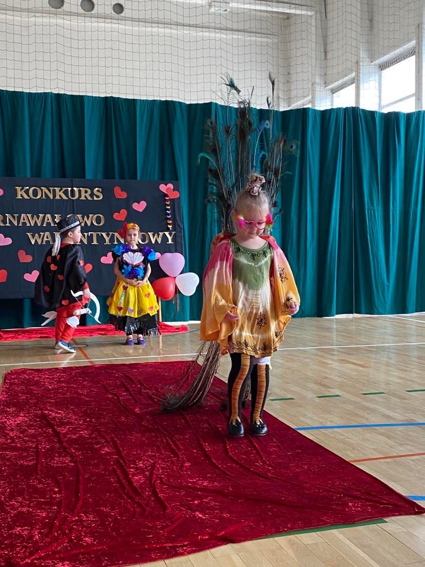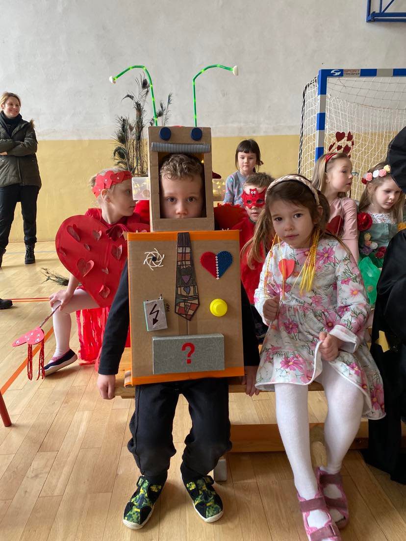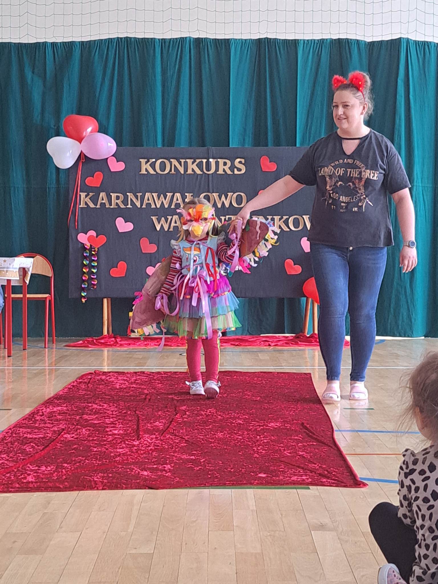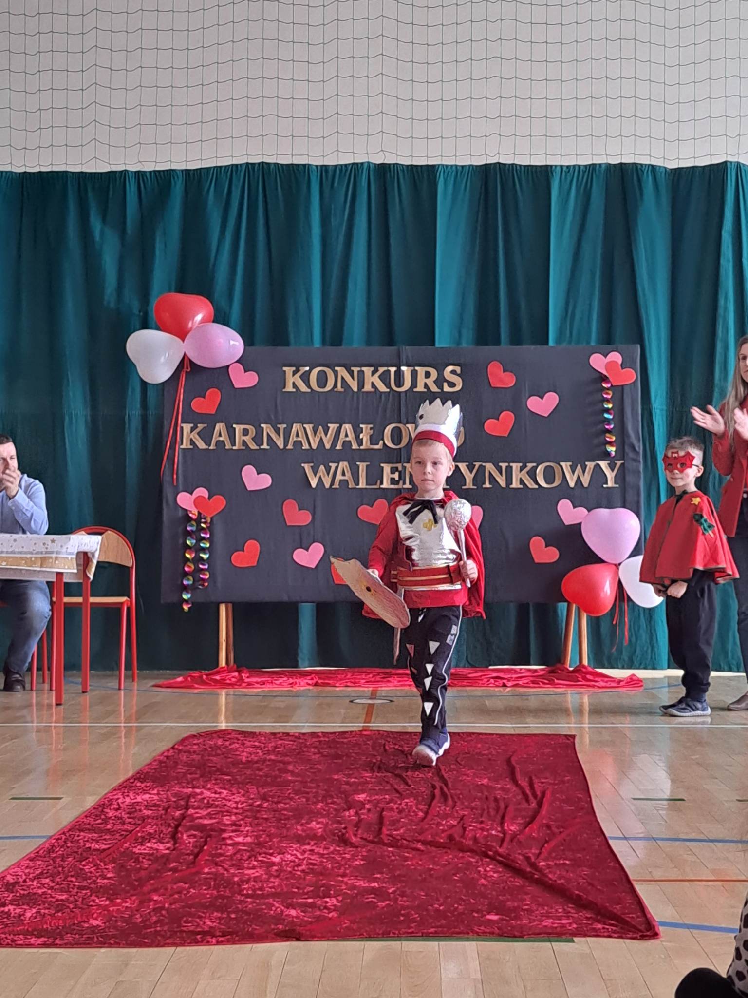 14 lutego odbył się konkurs na ,,Najciekawszy strój walentynkowo- karnawałowy”. Zadaniem konkursowym było wykonanie najciekawszego przebrania według własnego pomysłu z materiałów ogólnie dostępnych oraz zaprezentowanie stroju w przedszkolu. W konkursie wzięły udział wszystkie grupy przedszkolne. Do konkursu przystąpiło łącznie 24 przedszkolaków. Dzieci zaprezentowały swoje pomysłowe stroje podczas wybiegu na ,,czerwonym dywanie”. Stroje były zaskakujące i bardzo oryginalne.