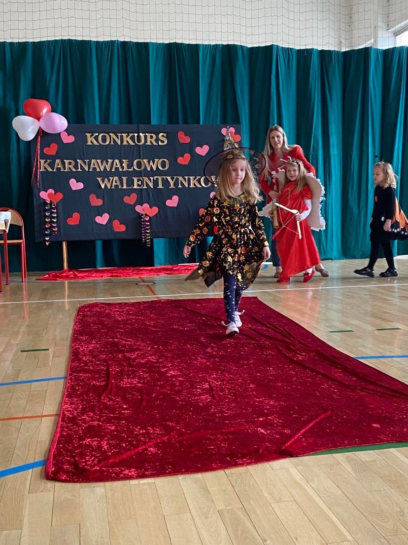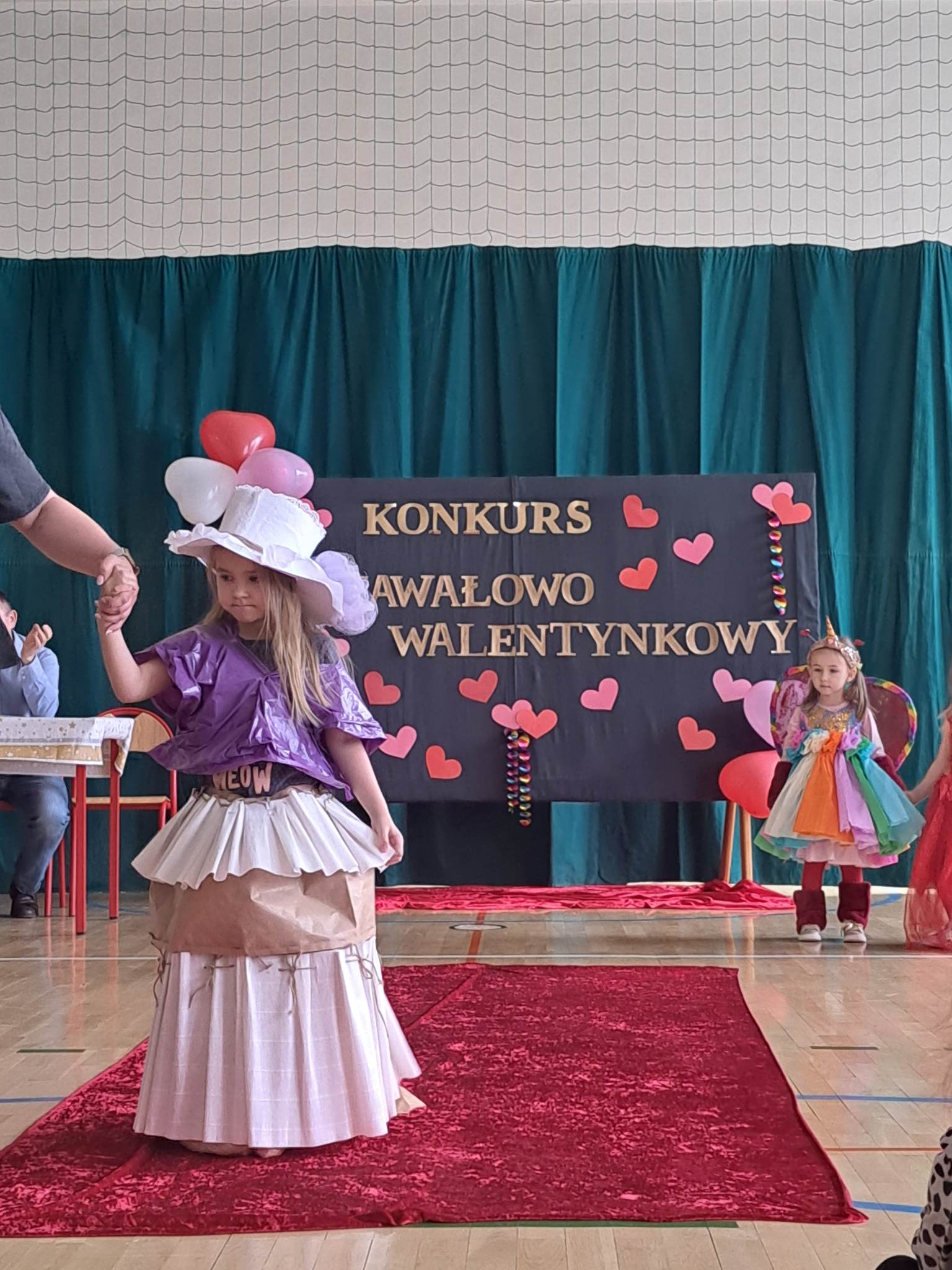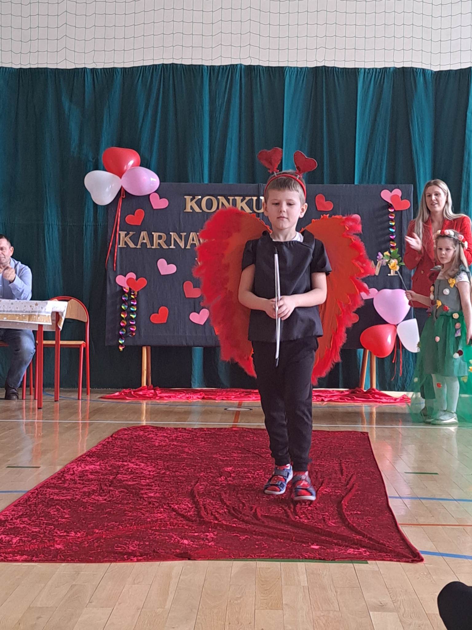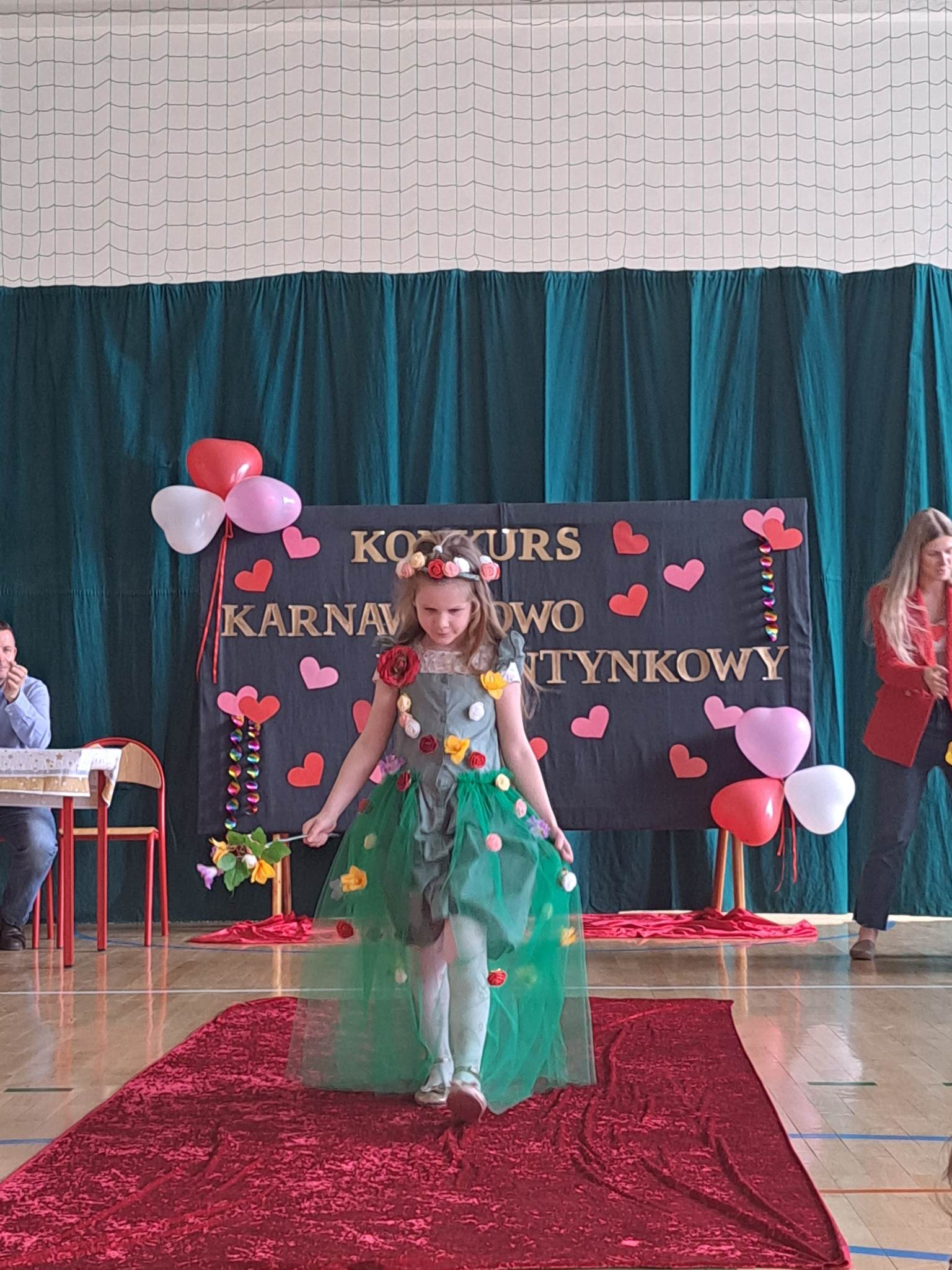 14 lutego odbył się konkurs na ,,Najciekawszy strój walentynkowo- karnawałowy”. Zadaniem konkursowym było wykonanie najciekawszego przebrania według własnego pomysłu z materiałów ogólnie dostępnych oraz zaprezentowanie stroju w przedszkolu. W konkursie wzięły udział wszystkie grupy przedszkolne. Do konkursu przystąpiło łącznie 24 przedszkolaków. Dzieci zaprezentowały swoje pomysłowe stroje podczas wybiegu na ,,czerwonym dywanie”. Stroje były zaskakujące i bardzo oryginalne.