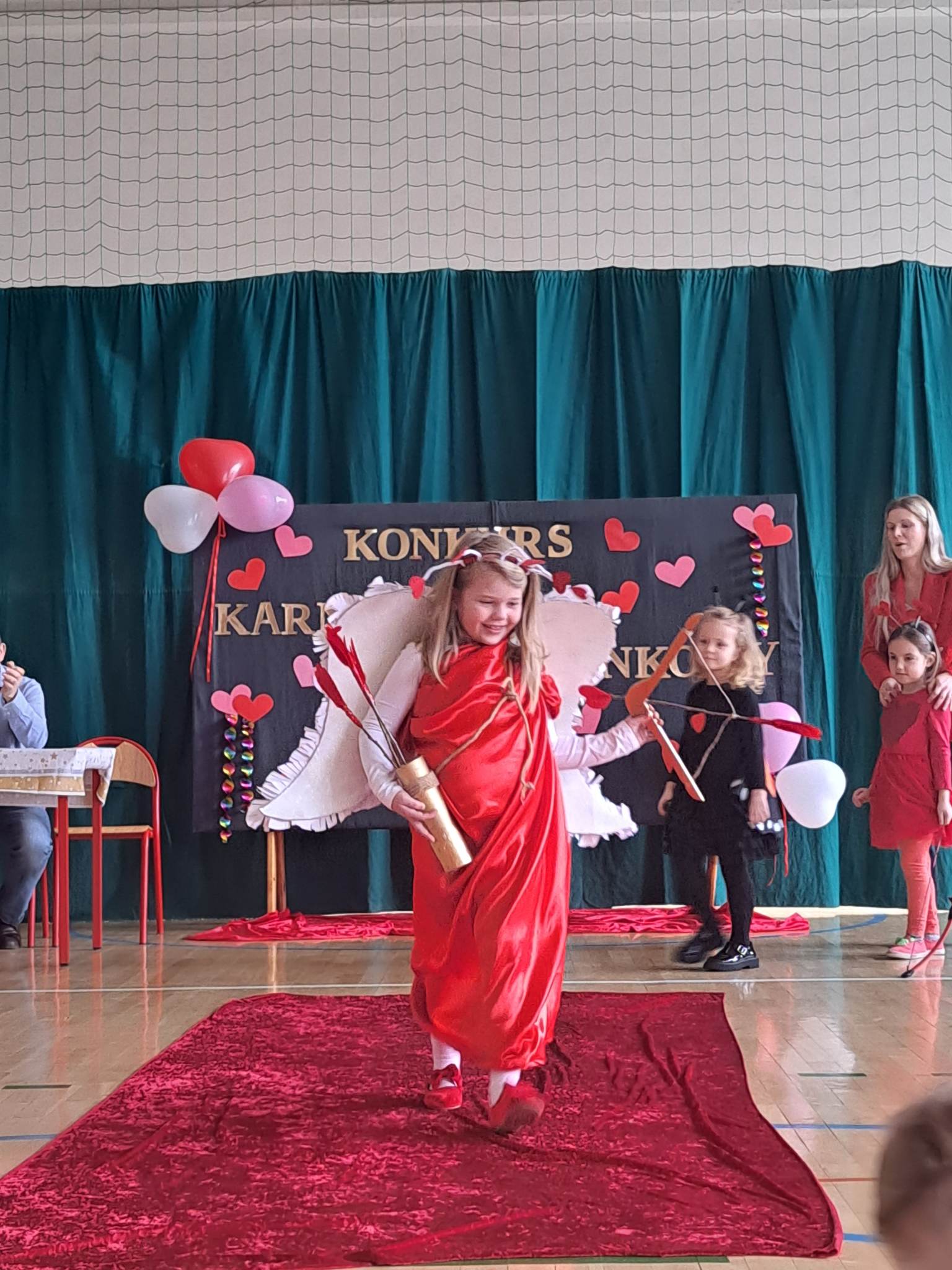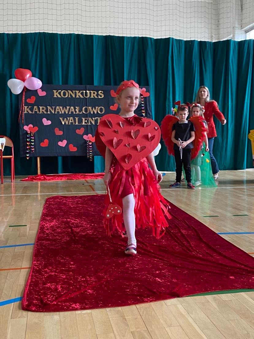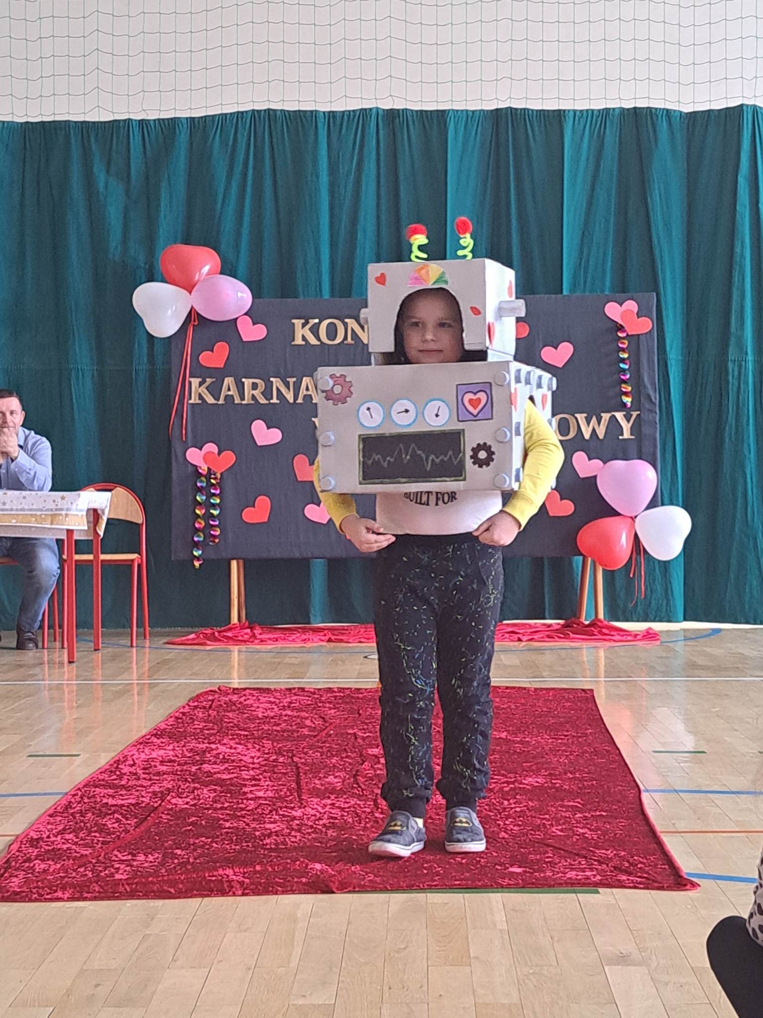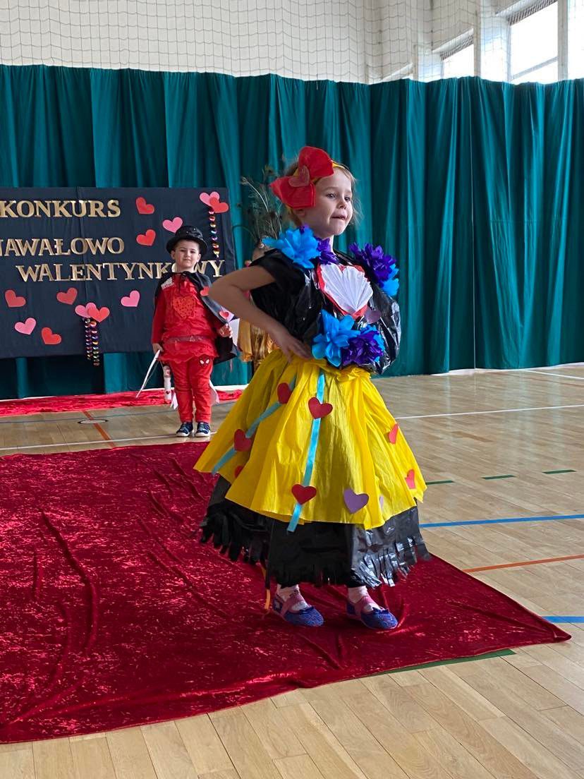 14 lutego odbył się konkurs na ,,Najciekawszy strój walentynkowo- karnawałowy”. Zadaniem konkursowym było wykonanie najciekawszego przebrania według własnego pomysłu z materiałów ogólnie dostępnych oraz zaprezentowanie stroju w przedszkolu. W konkursie wzięły udział wszystkie grupy przedszkolne. Do konkursu przystąpiło łącznie 24 przedszkolaków. Dzieci zaprezentowały swoje pomysłowe stroje podczas wybiegu na ,,czerwonym dywanie”. Stroje były zaskakujące i bardzo oryginalne.