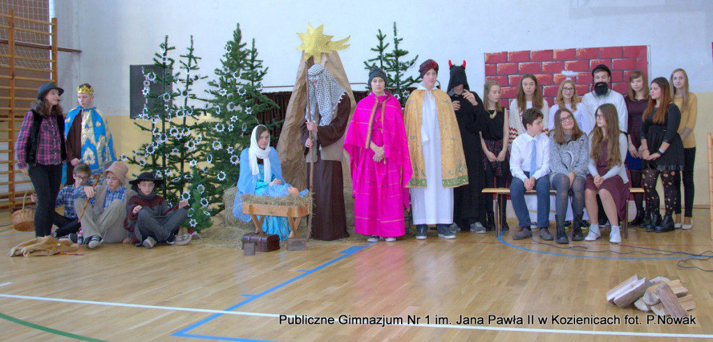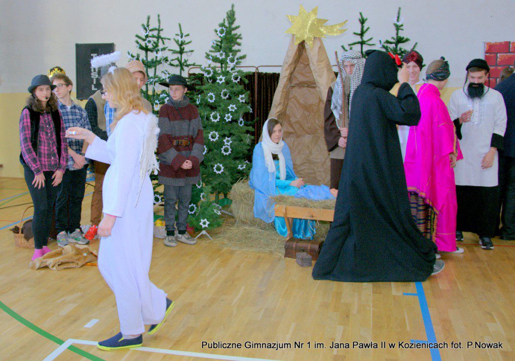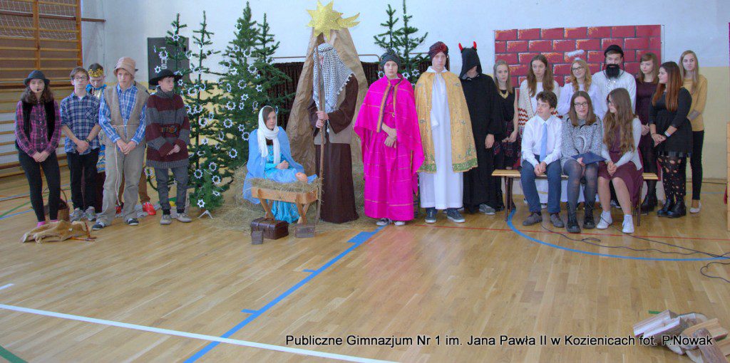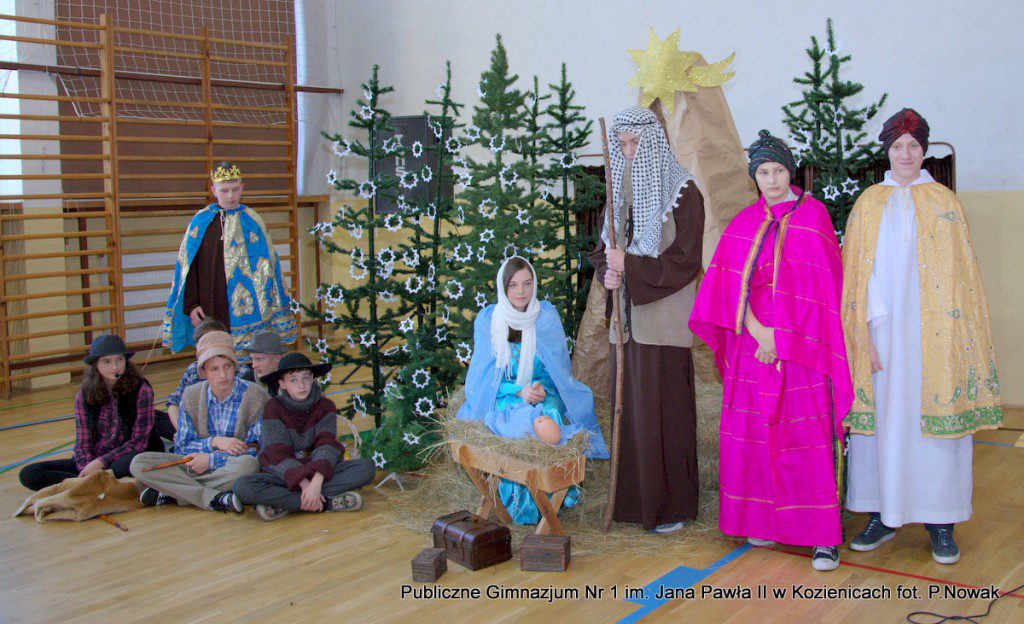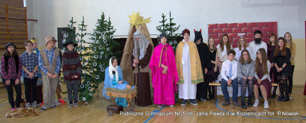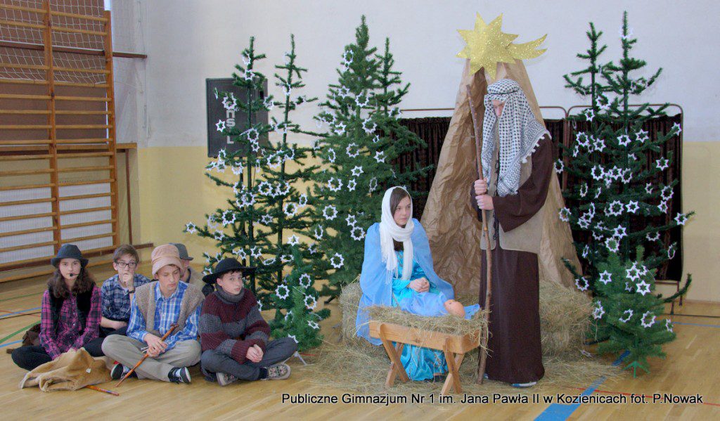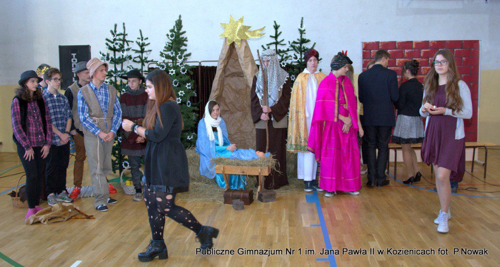 Czas oczekiwania na Boże Narodzenie należy do najpiękniejszych dni w roku. 22 grudnia 2015 roku w świąteczny klimat wprowadziły wszystkich przygotowane przez młodzież naszej szkoły jasełka. Zjednoczyły one uczniów naszego gimnazjum, którzy wraz z dyrekcją, nauczycielami i zaproszonymi gośćmi obejrzeli wystawione przez młodych artystów przedstawienie: „Magia świąt Bożego Narodzenia”. Widowisko przygotowała opierając się na różnych materiałach edukacyjnych pani Alicja Kucharska, o oprawę muzyczną zadbała pani Beata Rodakowska, a sprawami technicznymi zajęli się panowie Sebastian Kotlarek i Przemysław Nowak. Jasełka w wykonaniu młodzieży spowodowały, że niejeden widz miał łzy w oczach lub popadł w chwilę zadumy. Inscenizacja opowiadała o sprawach współczesnego świata przesłaniających nam prawdziwe, ludzkie wartości, o zanikających ciepłych relacjach rodzinnych.