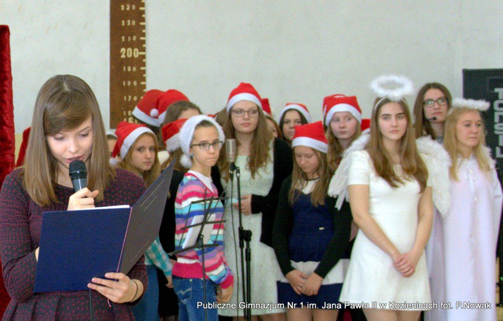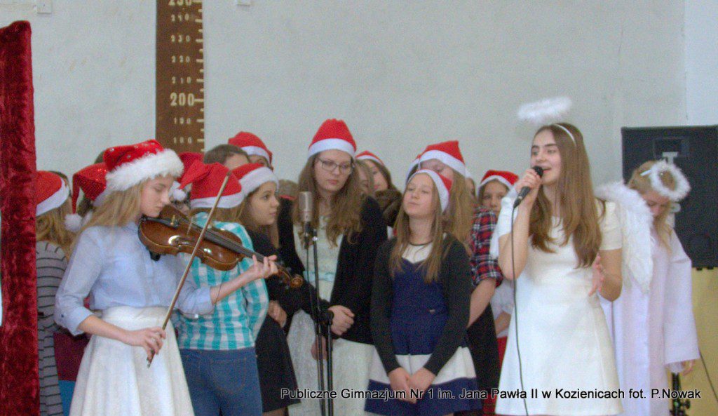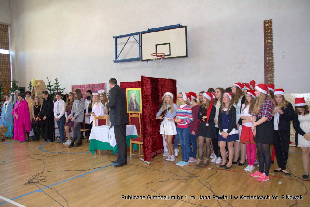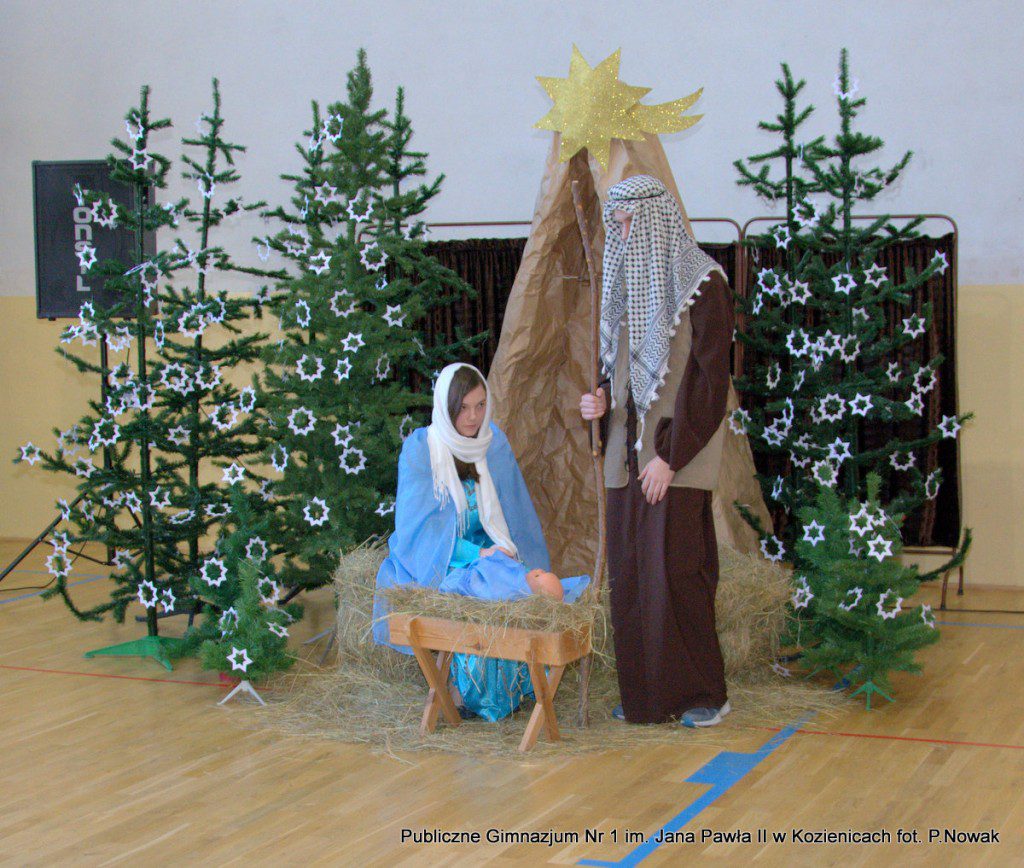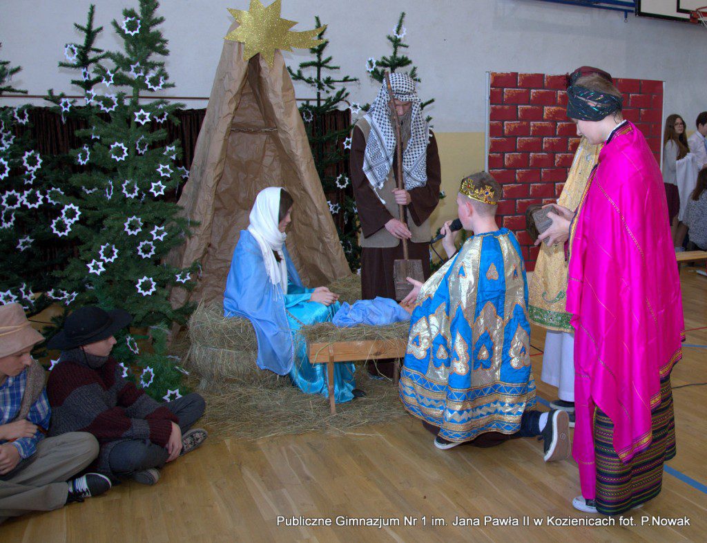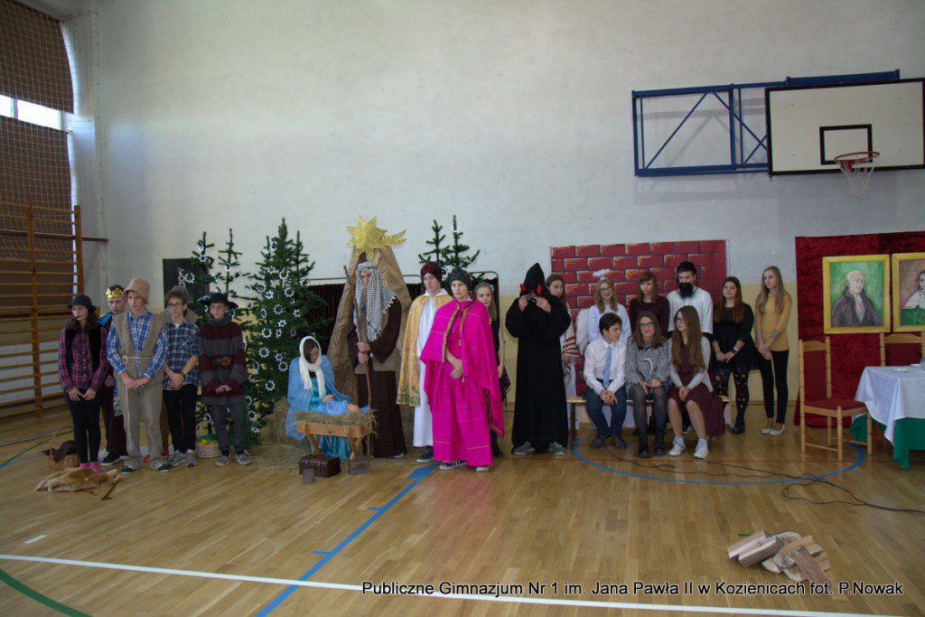 Czas oczekiwania na Boże Narodzenie należy do najpiękniejszych dni w roku. 22 grudnia 2015 roku w świąteczny klimat wprowadziły wszystkich przygotowane przez młodzież naszej szkoły jasełka. Zjednoczyły one uczniów naszego gimnazjum, którzy wraz z dyrekcją, nauczycielami i zaproszonymi gośćmi obejrzeli wystawione przez młodych artystów przedstawienie: „Magia świąt Bożego Narodzenia”. Widowisko przygotowała opierając się na różnych materiałach edukacyjnych pani Alicja Kucharska, o oprawę muzyczną zadbała pani Beata Rodakowska, a sprawami technicznymi zajęli się panowie Sebastian Kotlarek i Przemysław Nowak. Jasełka w wykonaniu młodzieży spowodowały, że niejeden widz miał łzy w oczach lub popadł w chwilę zadumy. Inscenizacja opowiadała o sprawach współczesnego świata przesłaniających nam prawdziwe, ludzkie wartości, o zanikających ciepłych relacjach rodzinnych.