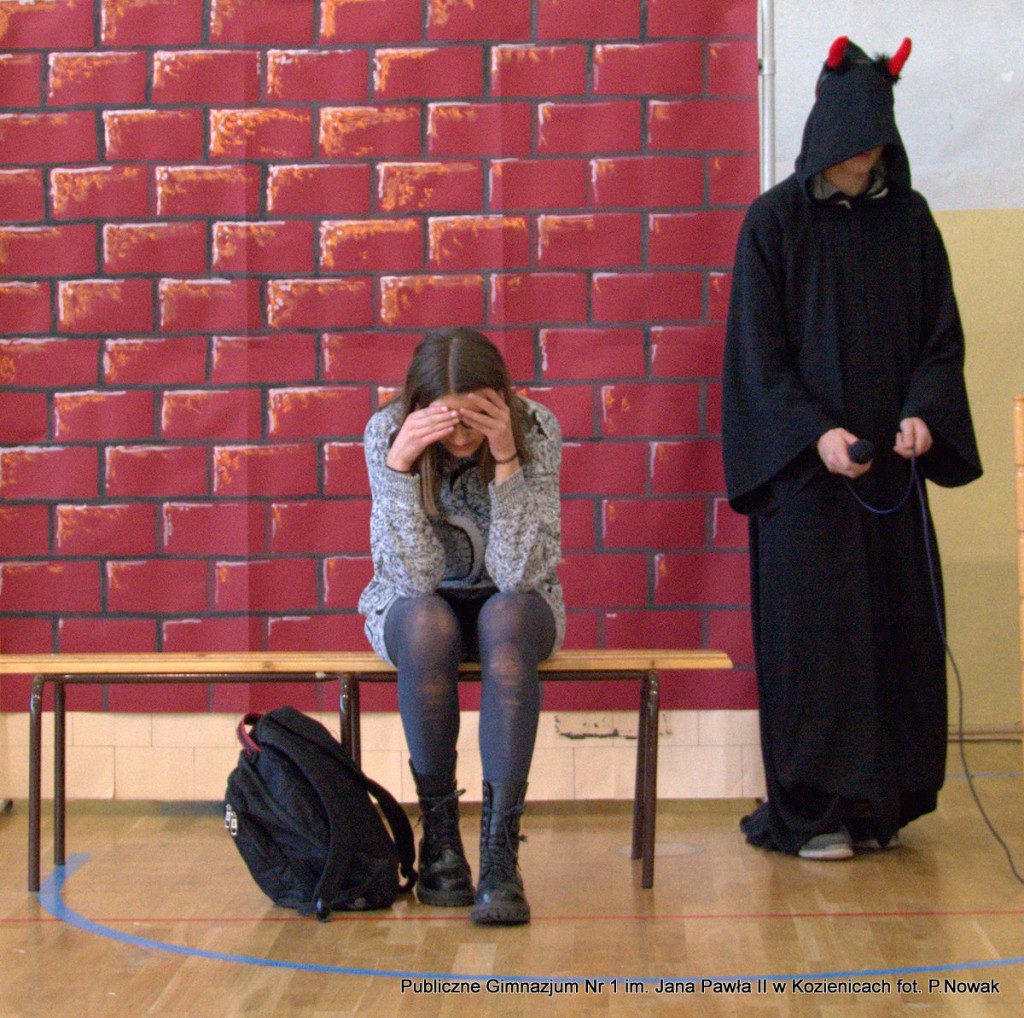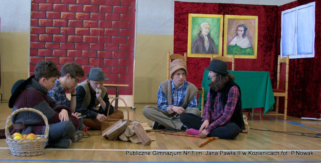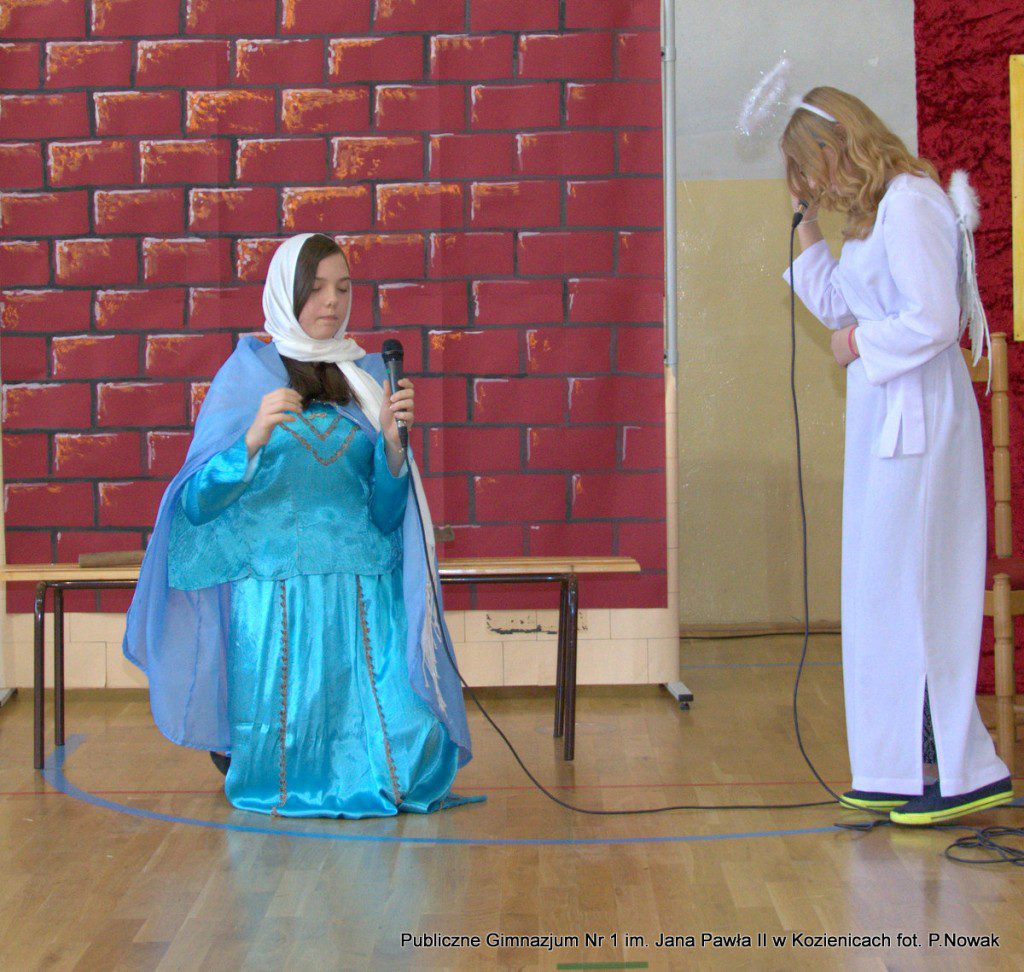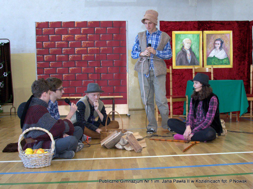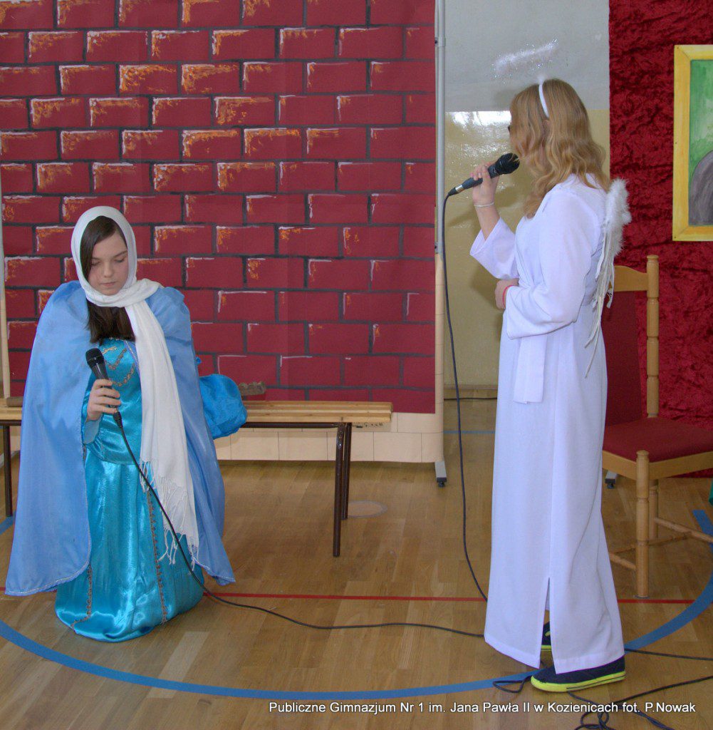 Młodzi aktorzy biorący udział w spektaklu wcielali się w wybrane role: prowadząca Natalia Kłos 2a, żona- Wiktoria Banaś 3a, mąż- Marcin Nowak 3d, Marta- Daria Domagała 3a, mama- Aleksandra Rybakowska 2a, tata- Marcin Świątkowski 2a, Ania- Anna Turek 3a, diabeł- Karol Fikus 3a, dziewczna1- Ada Wielgomas 3d, dziewczyna 2- Klaudia Hałdaś 3d, śpiewające pięknie anioły: Patrycja Wołos 3e i Ada Jaros 2a, archanioł- Aleksandra Bartosiewicz 2b, Maryja- Anita Baryłka 3a, Józef- Paweł Mironiak 3a, gospodarz- Jakub Kęska 2b, gospodyni- Paulina Warmiak 2b, pasterze: Patryk Sochaj 3b, Bartek Marszałek 2a, Filip Michalski 2a, Karolina Chałas 2b i Grzegorz Maciejewski 2b, królowie: Piotr Matejko 2b, Krystian Jasek 2d i Marcel Kuśmierczyk 2d. Nieśli oni przesłanie, by mówić o tym, co jest dla nas ważne, by okazywać uczucia najbliższym, pokazali, że warto się pojednać i być szczęśliwym człowiekiem, do którego przybyło Dzieciątko Boże: