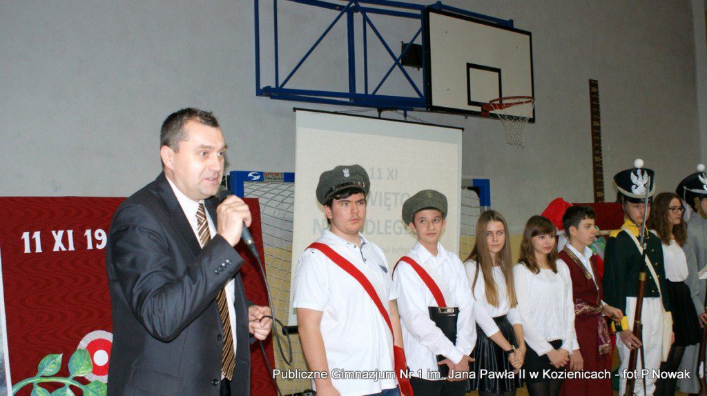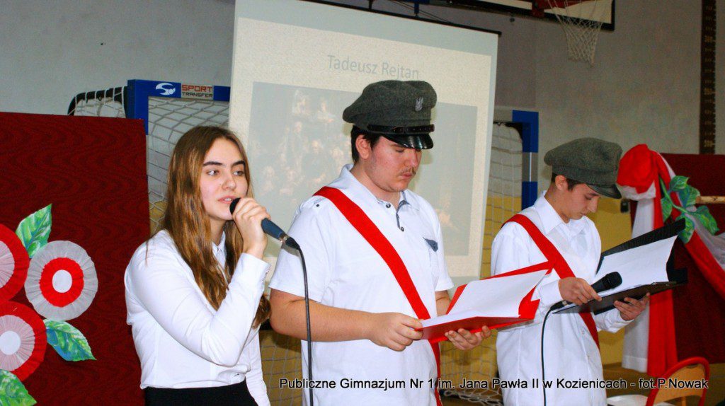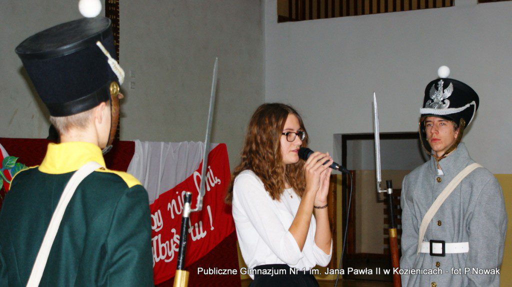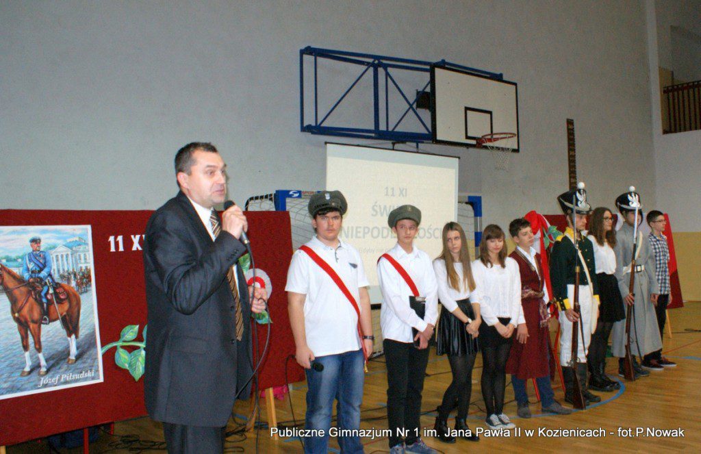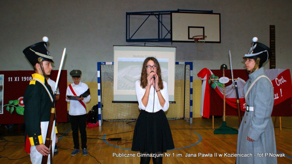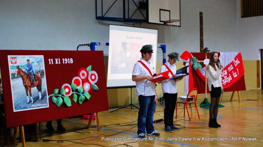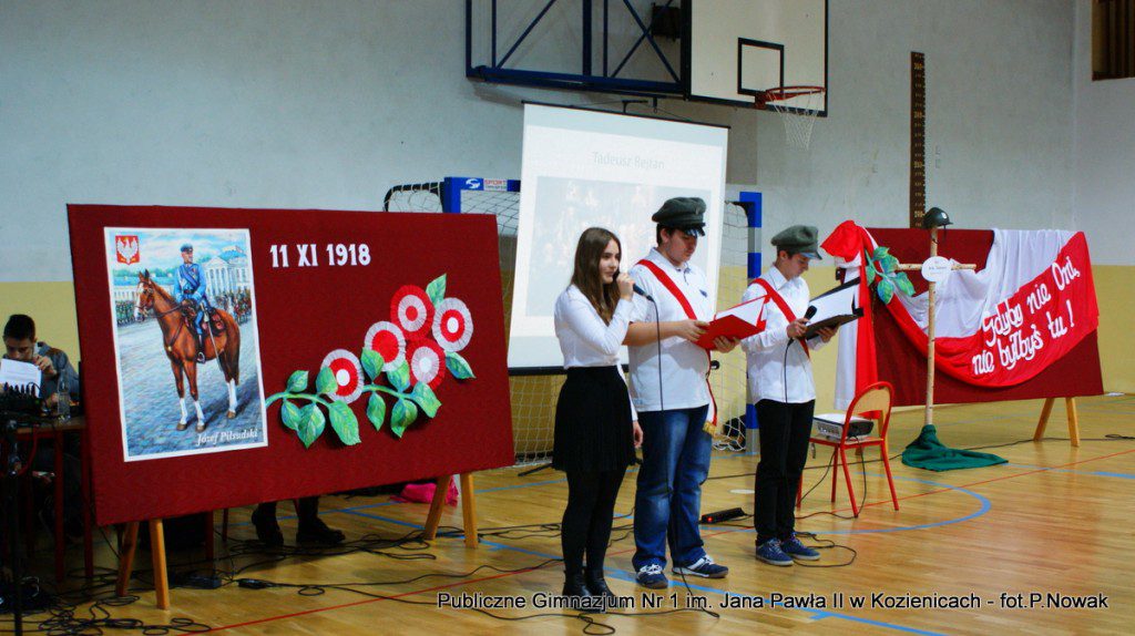 W przeddzień Narodowego Święta Niepodległości w naszej szkole odbyła się uroczysta akademia. Uczniowie pod kierunkiem nauczyciela historii pana Grzegorza Kocyka przybliżyli nam dzieje Polski od rozbiorów do radosnego Dnia Niepodległości i objęcia władzy przez Józefa Piłsudskiego. Była to wzruszająca lekcja historii i patriotyzmu a motywem przewodnim było hasło: „Gdyby nie Oni nie byłbyś tu……” . Przy pełnym zaangażowaniu uczniów, poprzez profesjonalnie wyrecytowane wiersze, doskonałą oprawę muzyczną, oddany został hołd tym wszystkim, którzy walczyli o odzyskanie niepodległości na przestrzeni dziejów. Na zakończenie głos zabrał dyrektor szkoły pan Tomasz Trela, który min. apelował o demonstrowanie swojego patriotyzmu poprzez wywieszenie w naszych domach biało czerwonych-flag w tak ważnym dla każdego Polaka dniu. Nad częścią muzyczną czuwała pani Beata Tadla Rodakowska, scenografię przygotowała pani Dorota Kogut, a opiekę nad sprzętem nagłaśniającym sprawował pan Przemysław Nowak oraz młoda sekcja techniczna w składzie : Adam Gorzkowski i Jakub Letkiewicz.