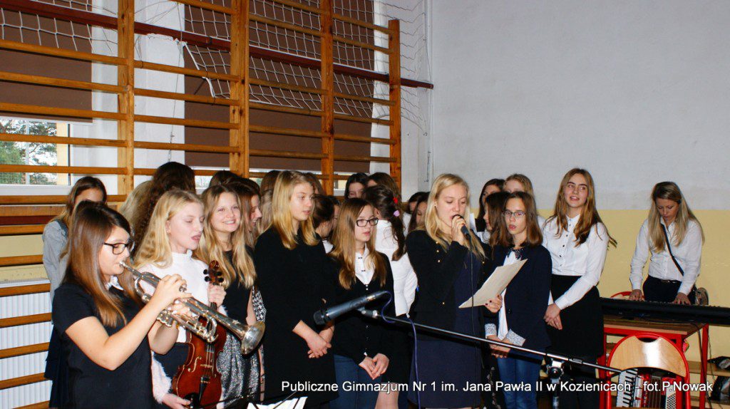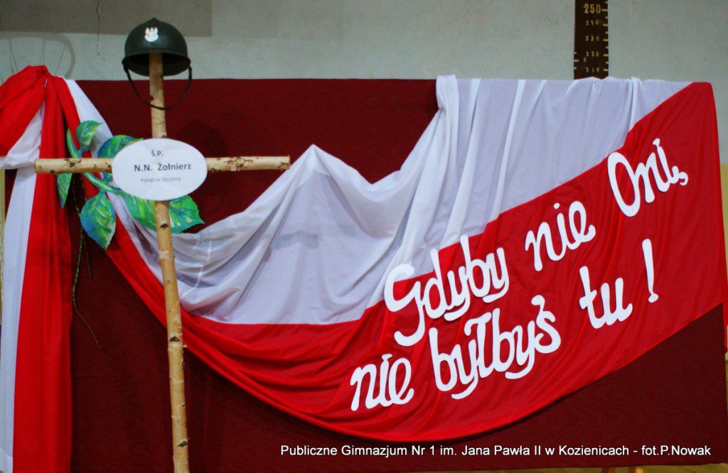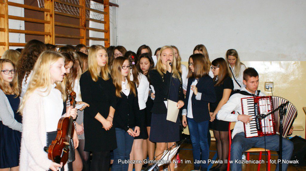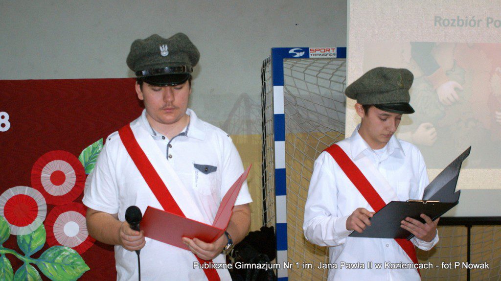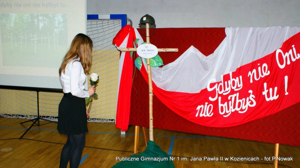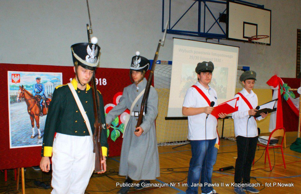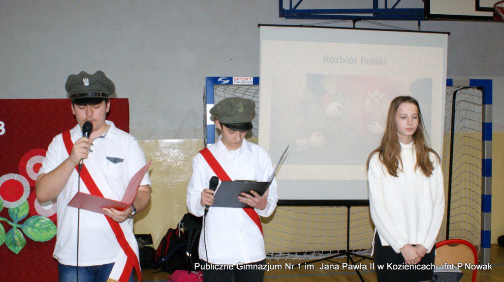 W przeddzień Narodowego Święta Niepodległości w naszej szkole odbyła się uroczysta akademia. Uczniowie pod kierunkiem nauczyciela historii pana Grzegorza Kocyka przybliżyli nam dzieje Polski od rozbiorów do radosnego Dnia Niepodległości i objęcia władzy przez Józefa Piłsudskiego. Była to wzruszająca lekcja historii i patriotyzmu a motywem przewodnim było hasło: „Gdyby nie Oni nie byłbyś tu……” . Przy pełnym zaangażowaniu uczniów, poprzez profesjonalnie wyrecytowane wiersze, doskonałą oprawę muzyczną, oddany został hołd tym wszystkim, którzy walczyli o odzyskanie niepodległości na przestrzeni dziejów. Na zakończenie głos zabrał dyrektor szkoły pan Tomasz Trela, który min. apelował o demonstrowanie swojego patriotyzmu poprzez wywieszenie w naszych domach biało czerwonych-flag w tak ważnym dla każdego Polaka dniu. Nad częścią muzyczną czuwała pani Beata Tadla Rodakowska, scenografię przygotowała pani Dorota Kogut, a opiekę nad sprzętem nagłaśniającym sprawował pan Przemysław Nowak oraz młoda sekcja techniczna w składzie : Adam Gorzkowski i Jakub Letkiewicz.