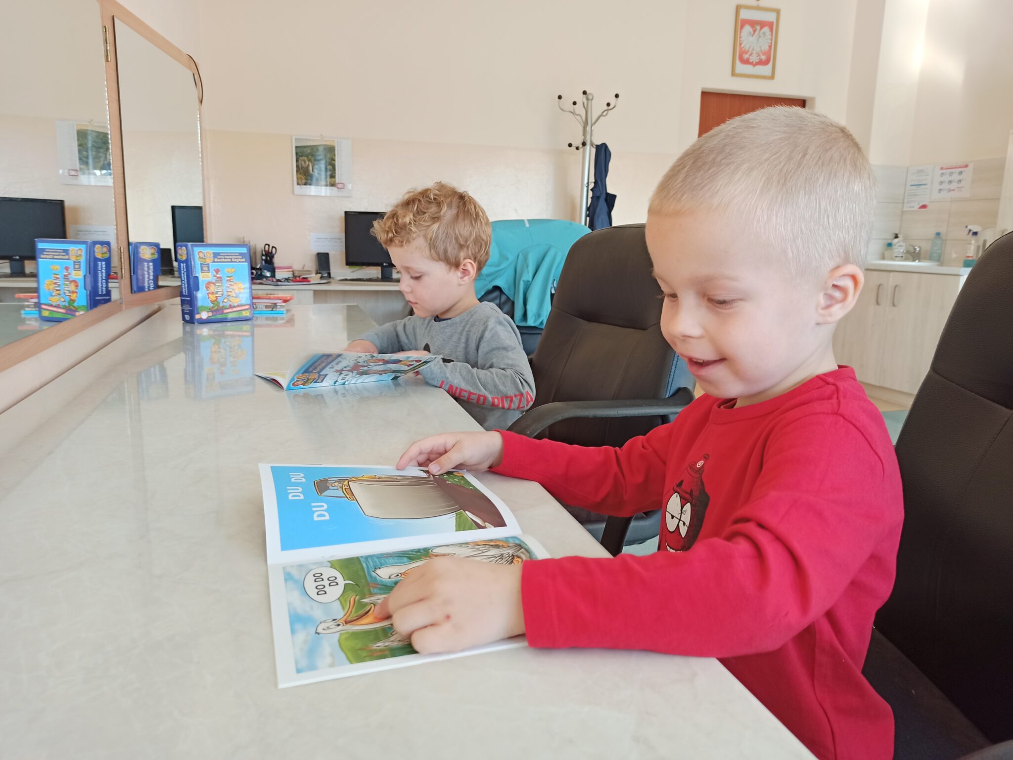 Z tej okazji grupy przedszkolne oraz wszystkie klasy naszej szkoły słuchały wybranych przez przez siebie książek. Uczniowie i przedszkolaki pod opieką nauczycieli mogli wybierać w bogatej ofercie nowych tytułów, które trafiły w tym roku szkolnym do biblioteki. Ponad pięćset książek zaspokoiło apetyty nawet najbardziej wymagających czytelników. Nie obyło się, oczywiście, bez braw i pochwał. Na zakończenie uczniowie uzupełniali wypowiedź: Czytam, ponieważ…. Najbardziej podobała nam się wypowiedź: „Czytam, bo lubię”.
