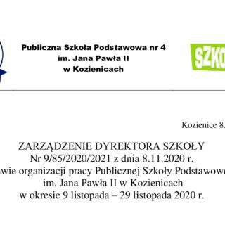 Zarządzenie Dyrektora Szkoły w sprawie organizacji pracy w okresie 9 listopada – 29 listopada