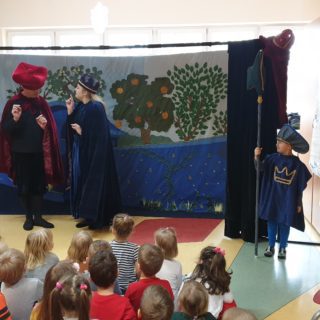W dniu 16 stycznia 2020r. nasze przedszkolaki zostały zaproszone do teatru. Na scenie . Pan Seweryn Mastyna i Pani Justyna Siedlecka w mistrzowski sposób zaprezentowali przedstawienie pt. „Złota jabłoń”. Było dużo dobrej zabawy, dzieci...