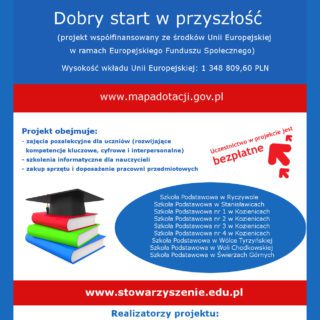 „Dobry start w przyszłość” Projekt jest współfinansowany przez Unię Europejską ze środków Europejskiego Funduszu Społecznego w ramach Regionalnego Programu Operacyjnego Województwa Mazowieckiego na lata 2014-2020, Oś Priorytetowa X Edukacja dla rozwoju regionu Działanie 10.1. Edukacja...