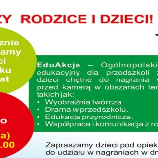 Zapraszamy dzieci pod opieką rodziców do udziału w nagraniach: „Drama jako metoda skutecznego wspomagania dzieci w przedszkolu”.