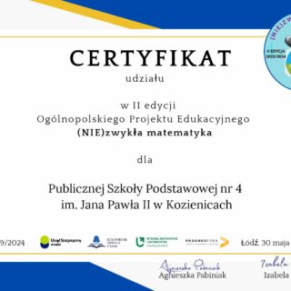 28 maja 2024 w Publicznej Szkoły Podstawowej nr 4 w Kozienicach odbyła się trzecia edycja Wewnątrzszkolnego Konkursu z Matematyki „ Jaś i Małgosia” w dwóch kategoriach: dla uczniów klas IV i dla uczniów klas...