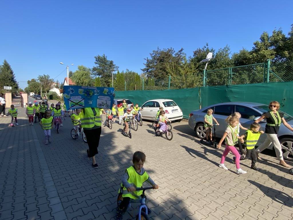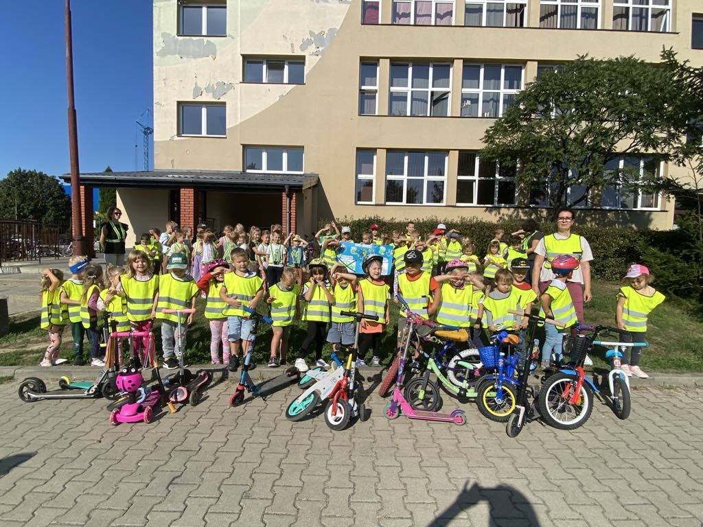 W dniach 16 – 20 września 2024 r. oddziały przedszkolne włączyły się w kampanię pod nazwą Europejski Tydzień Mobilności. Zrealizowano szereg działań edukacyjnych oraz promocyjnych propagujących zrównoważone i ekologiczne formy mobilności, takie jak jazda na rowerze i hulajnodze, chodzenie pieszo, a także transport publiczny. Przedszkolaki wspólnie z nauczycielami poszukiwały pomysłów na bezpieczne i ekologiczne przemieszczanie się.