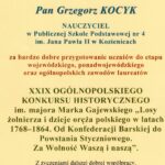 20 maja 2024 r. w Mazowieckim Samorządowym Centrum Doskonalenia Nauczycieli w Warszawie miało miejsce oficjalne podsumowanie Ogólnopolskiego Konkursu Historycznego „Losy żołnierza i dzieje oręża polskiego” . Konkurs ten jest tej samej rangi co konkursy i olimpiady kuratoryjne ze względu na stopień trudności. Naszą szkoł