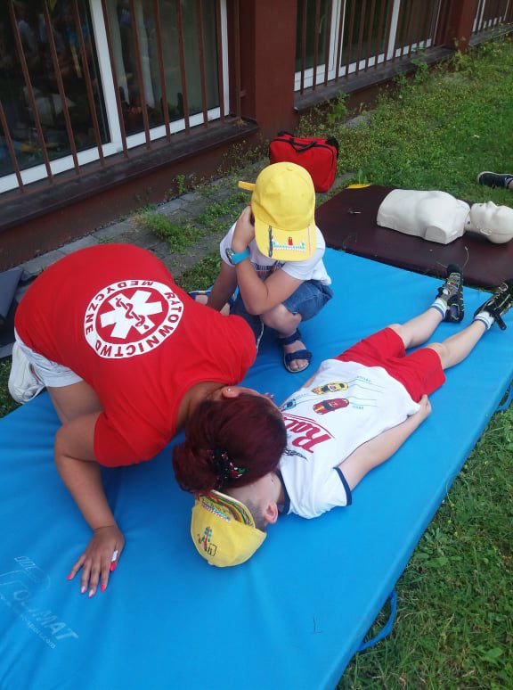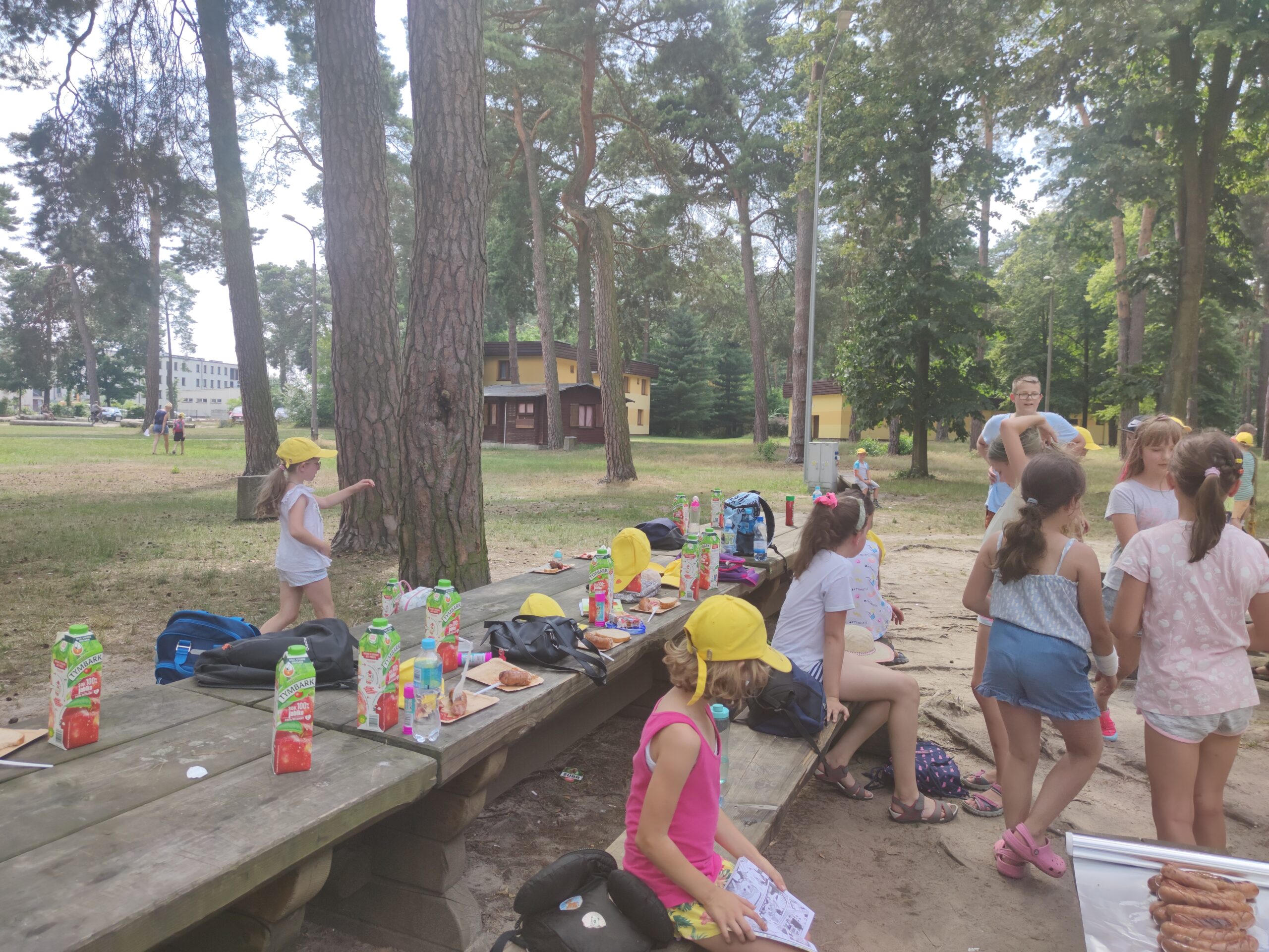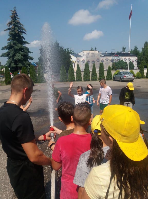Półkolonie 2021 w PSP4 już za nami. Ciekawy program, dobra opieka medyczna, serce i zaangażowanie opiekunek grup sprawiły , że półkolonia minęła nam bardzo szybko i niepostrzeżenie. To wypowiedzi uczestników półkolonii. W programie było dwie wycieczki edukacyjne. Jedna do Radomia do „Hula Parku” oraz druga do Dęblina do Muzeum Sił Powietrznych. Dużą atrakcją dla dzieci okazało się wejście do największego helikoptera oraz do samolotu prezydenckiego. Również skorzystaliśmy z zaproszenia kozienickiego kina, gdzie dzieci w pierwszym tygodniu obejrzały seans bajki „Piotruś Królik 2 na gigancie”, a w drugim film pt. „Raya i ostatni smok”. Dla ochłody często korzystaliśmy z atrakcji basenowych krytej pływalni Delfin. Dużym zainteresowaniem cieszyła się wycieczka do Mediateki na zorganizowane zajęcia Escape Room. Podczas półkolonii dużo czasu spędzaliśmy na świeżym powietrzu oraz skorzystaliśmy z placu zabaw na Ogródku Jordanowskim. Odwiedziliśmy również Ochotniczą Straż Pożarną w Kozienicach. W ostatni dzień półkolonii zaraz po zajęciach plastyczno-technicznych obejrzeliśmy pokaz medyczny. Na koniec pokazu zaczęły się zajęcia praktyczne i dzieci samodzielnie opatrywały ”rany”. W tym dniu uczestnicy półkolonii otrzymali również dyplomy i drobne upominki. Wspólne ognisko nad kozienickim jeziorem, gry i zabawy sportowe zakończyły udział w półkolonii 2021 w PSP4 Kozienice. Do zobaczenia za rok.