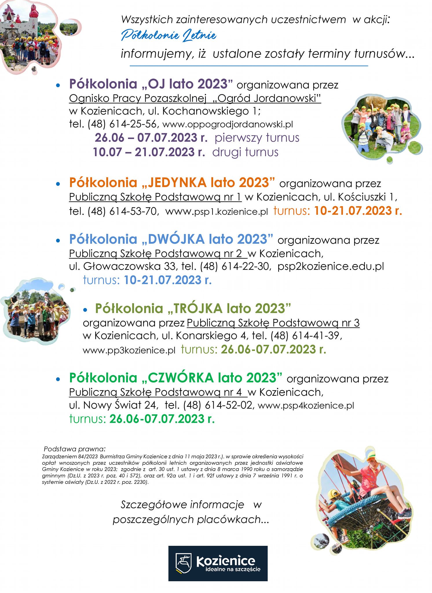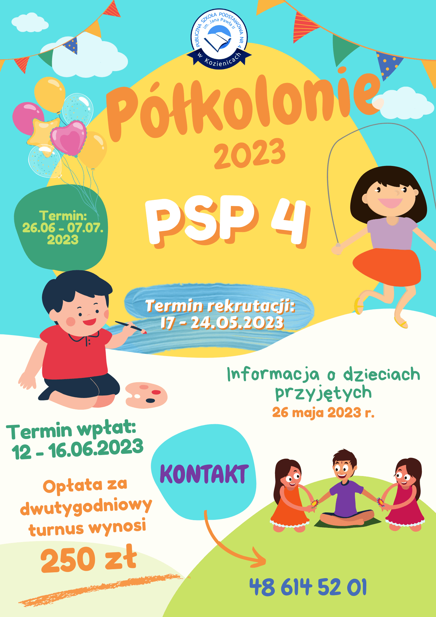 Półkolonie 2023 przez admin · 16 maja 2023 Do pobrania: Karta kwalifikacyjna uczestnika półkolonii -> pobierz Regulamin półkolonii -> pobierz