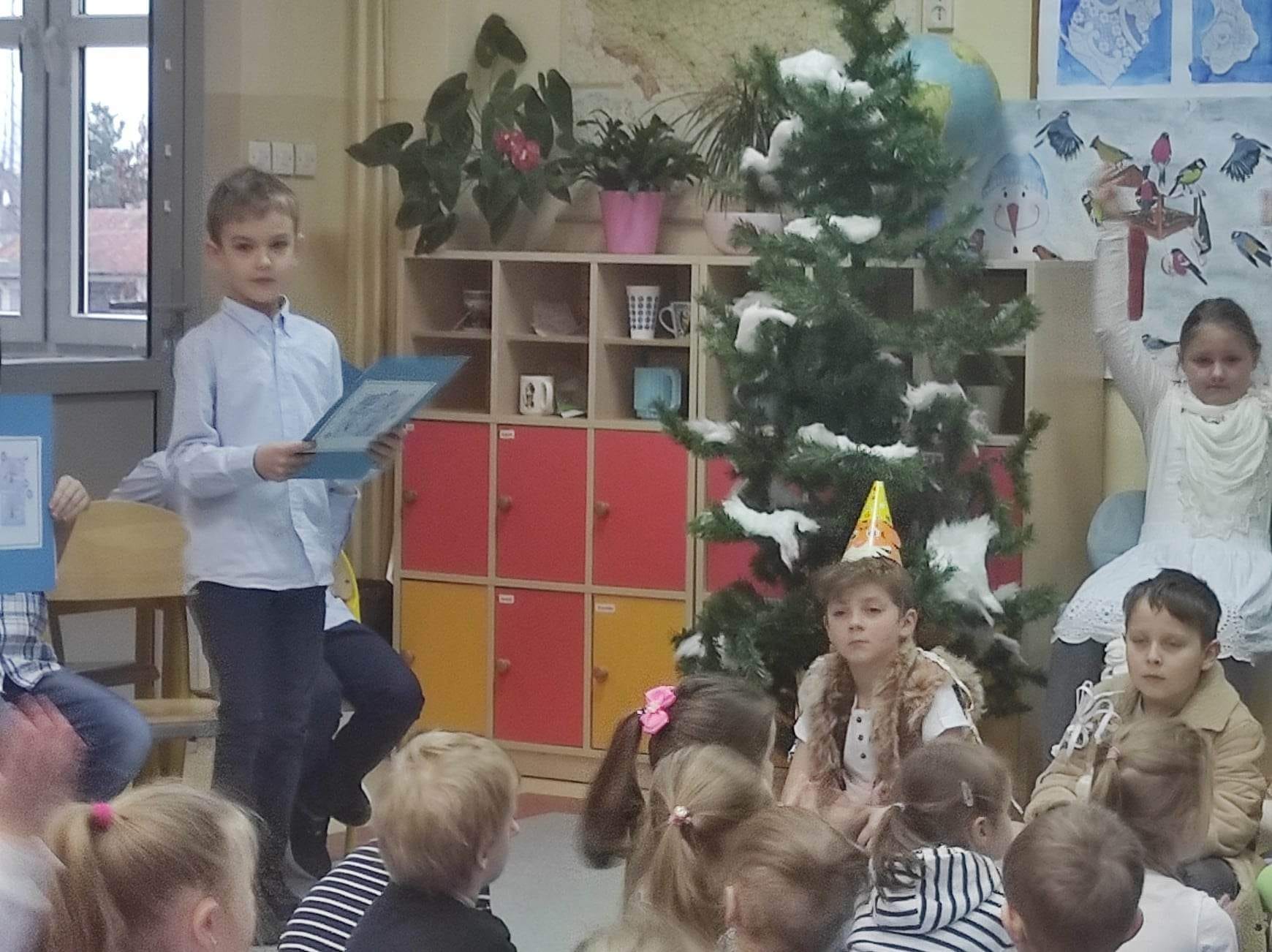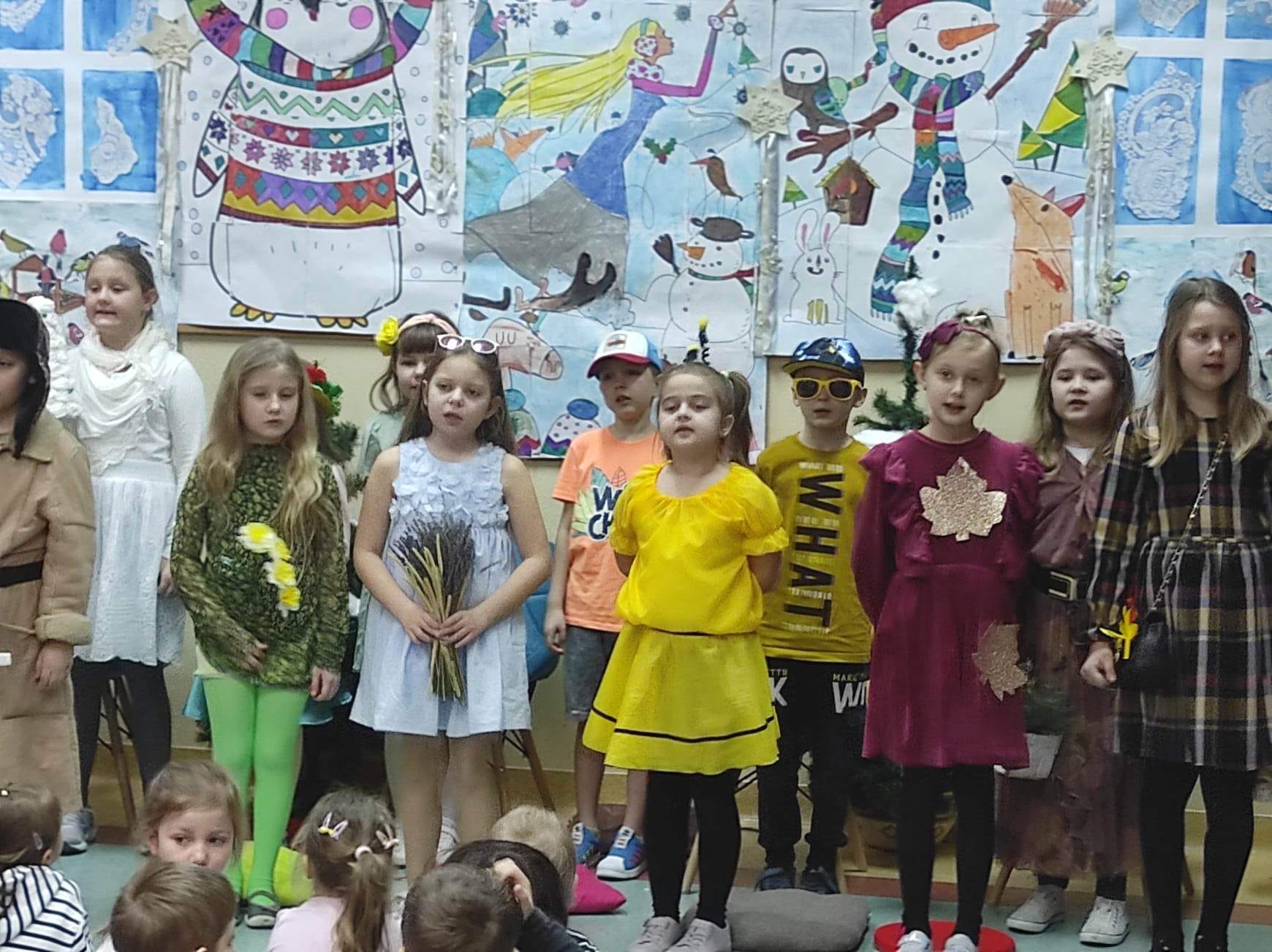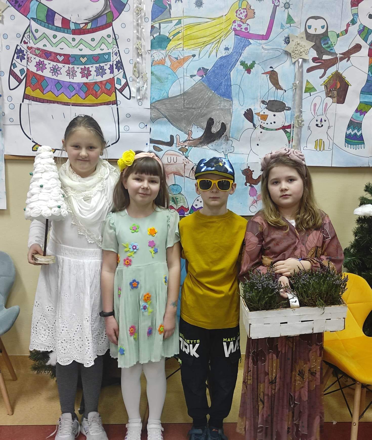 W dniu 26 stycznia uczniowie klasy 2a, przygotowani przez wychowawczynię wystąpili przed koleżankami i kolegami z oddziałów przedszkolnych z montażem słowno – muzycznym ,, Pory roku i miesiące”. Drugoklasiści poprzez stroje, dekorację, teksty oraz piosenki przywołali pory roku i miesiące. Publiczność wzięła aktywny udział, odpowiadając na zagadki i pytania związane z przedstawieniem. Dzięki nim utrwaliła charakterystyczne symbole i zwiastuny poszczególnych pór roku i miesięcy. Zdolności aktorskie starszych koleżanek i kolegów spodobały się gościom, którzy nagrodzili występ gromkimi brawami. Przedszkolaki po przedstawieniu wyszły pełne wrażeń, z uśmiechem na twarzy.