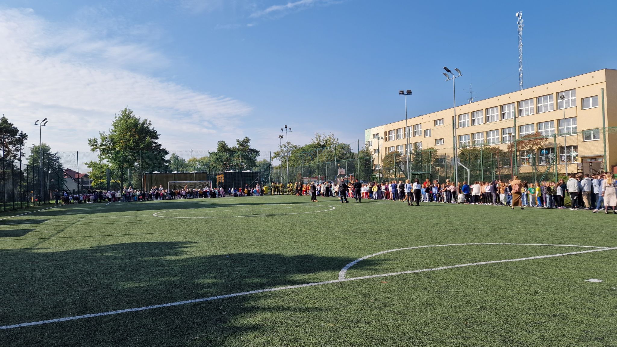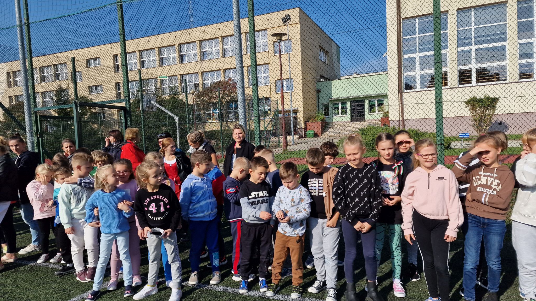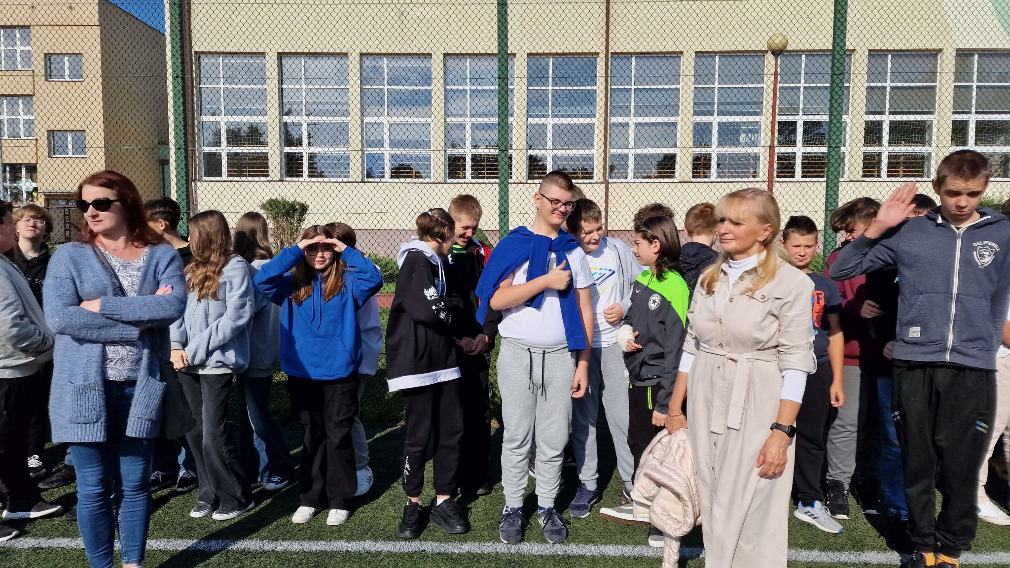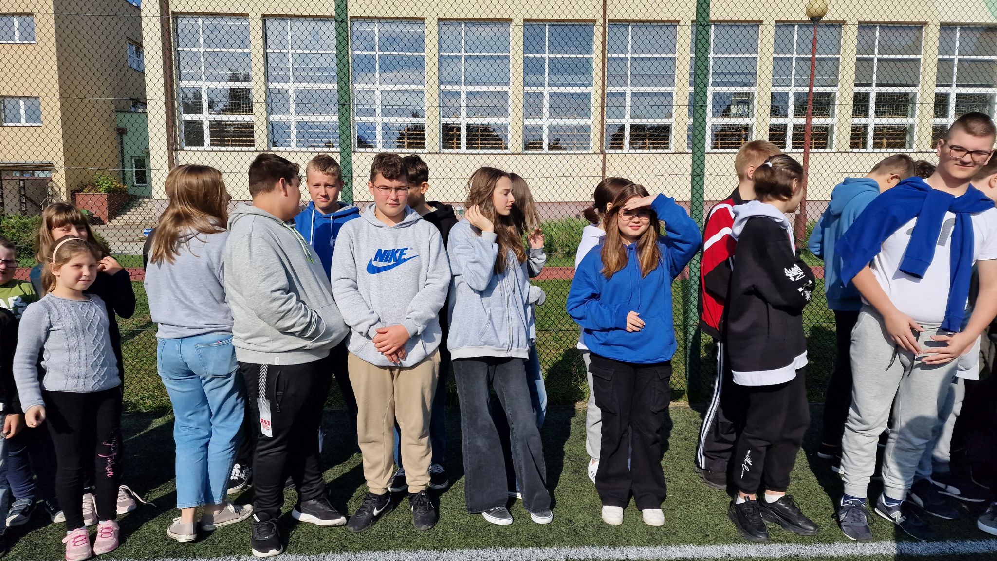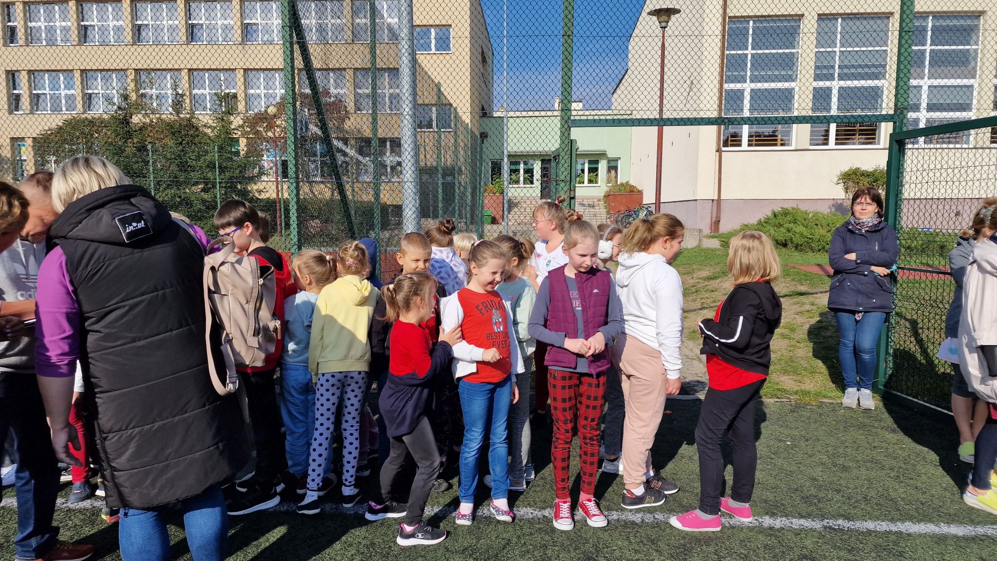 Uczniowie i nauczyciele, zachowując środki bezpieczeństwa, szybko i sprawnie opuścili budynek szkoły. Wszyscy w spokoju i bez paniki wykonali zadanie próbnego alarmu.