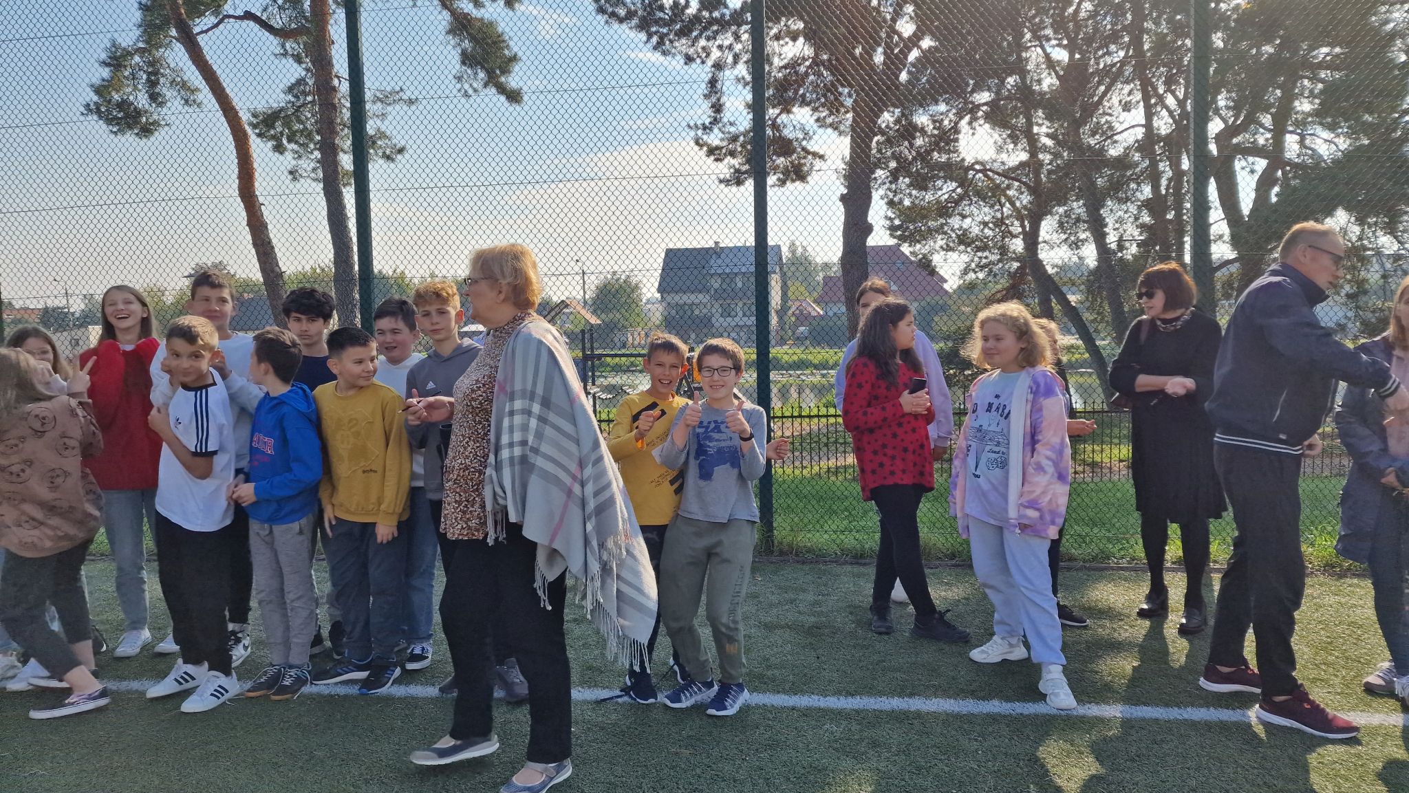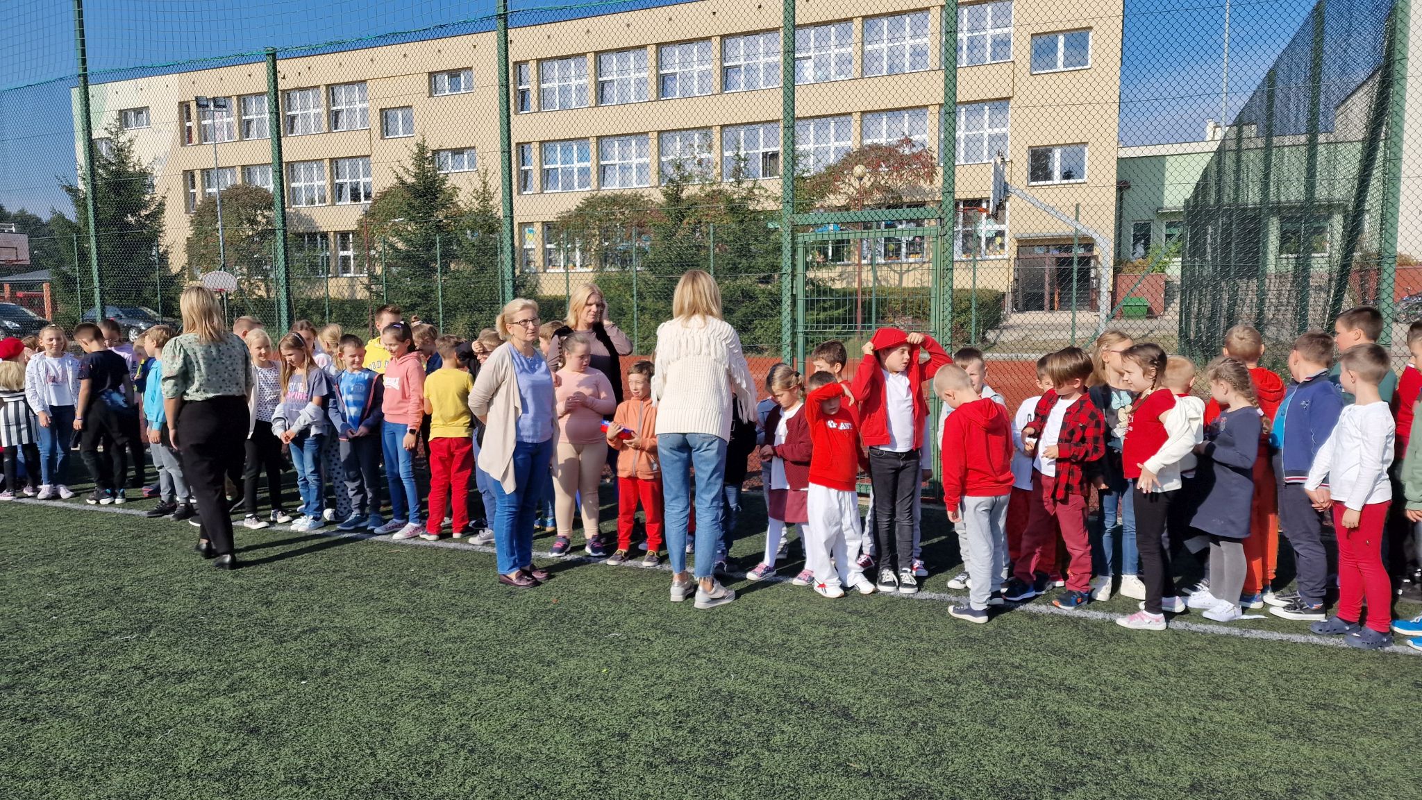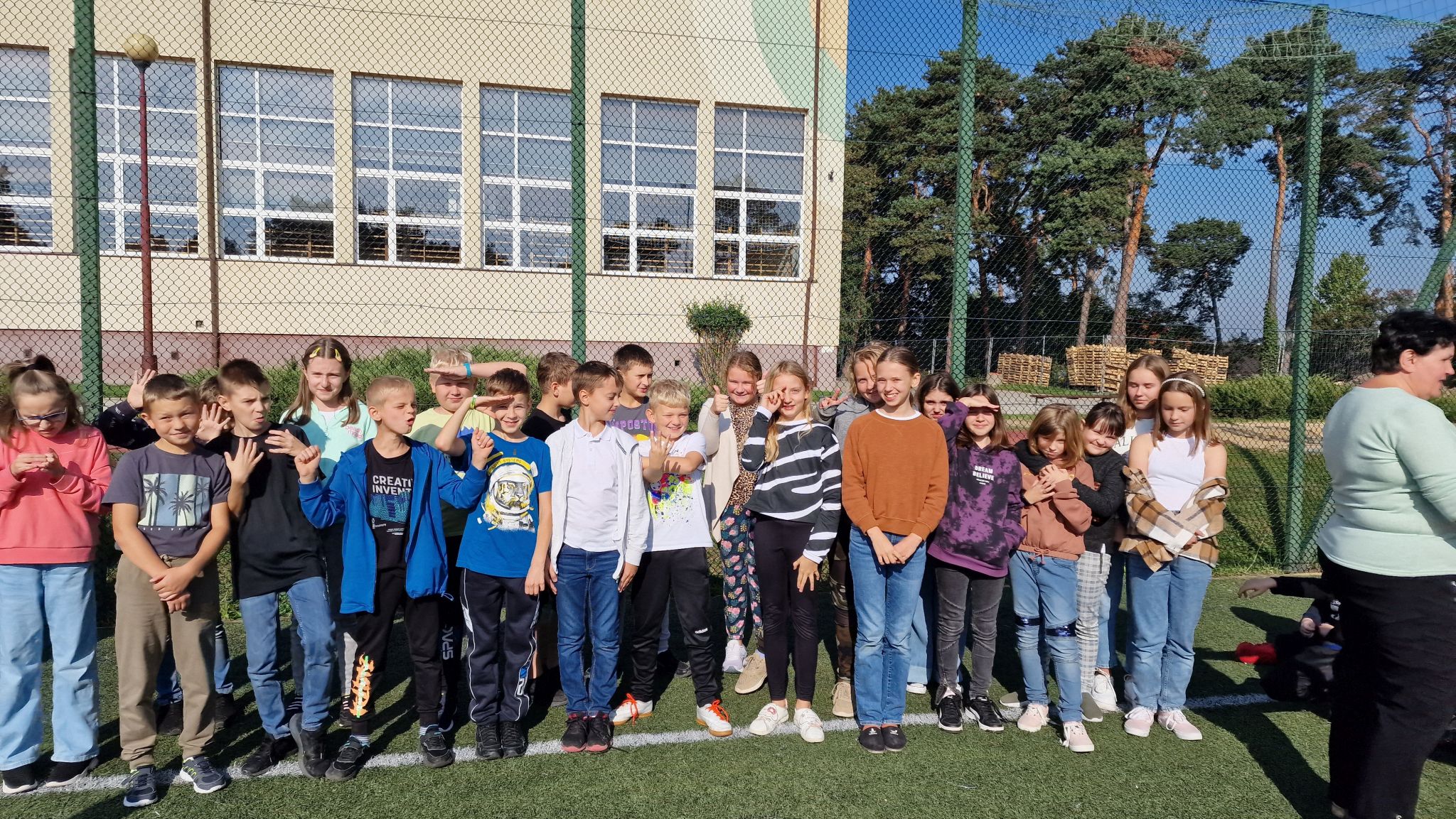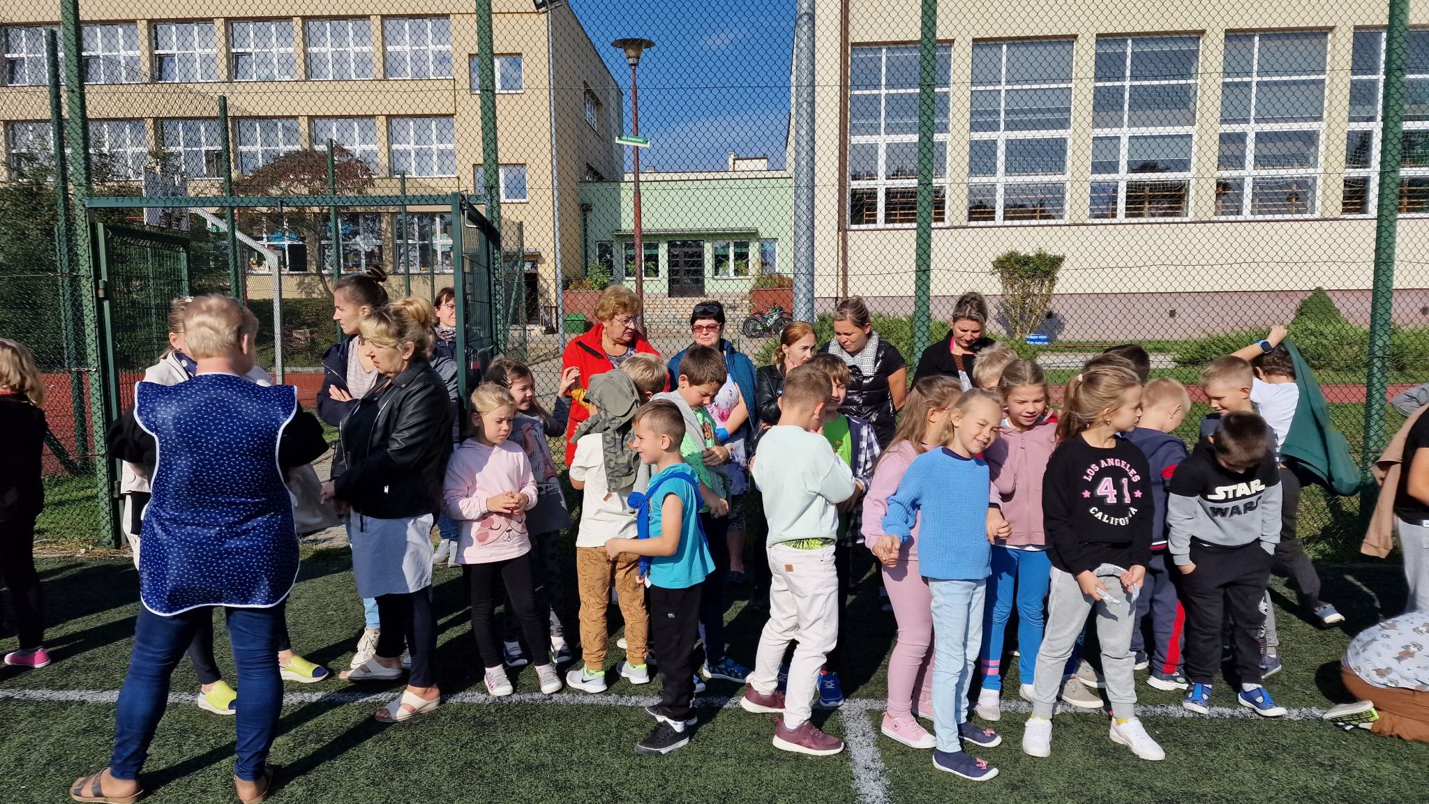 Uczniowie i nauczyciele, zachowując środki bezpieczeństwa, szybko i sprawnie opuścili budynek szkoły. Wszyscy w spokoju i bez paniki wykonali zadanie próbnego alarmu.