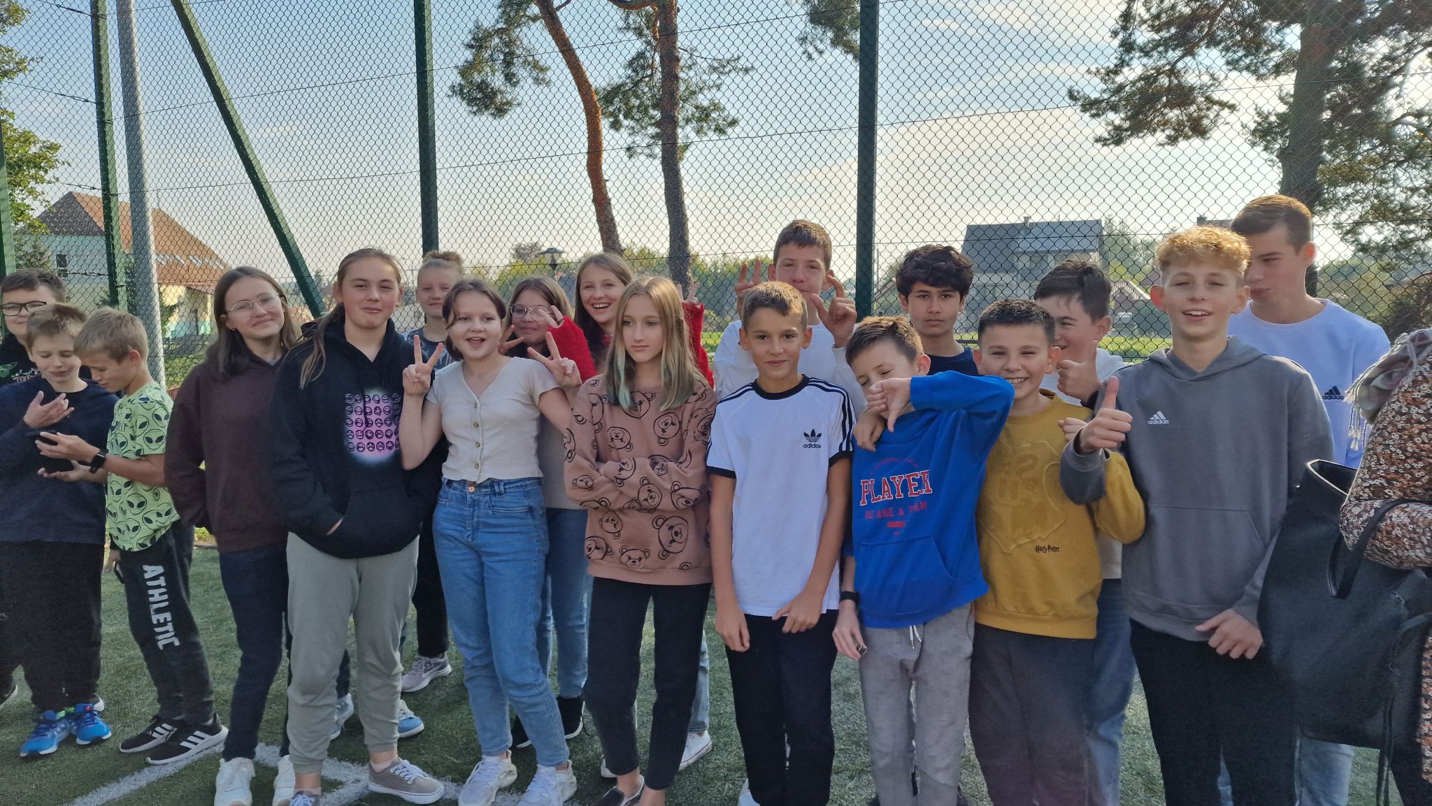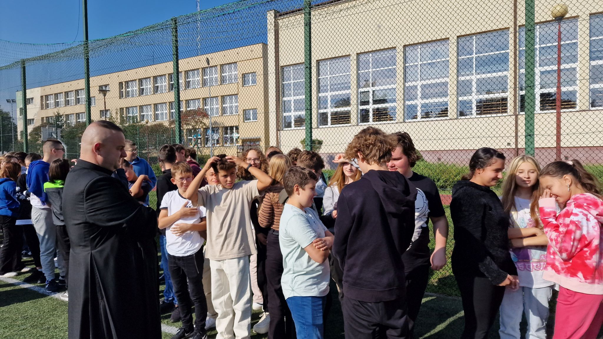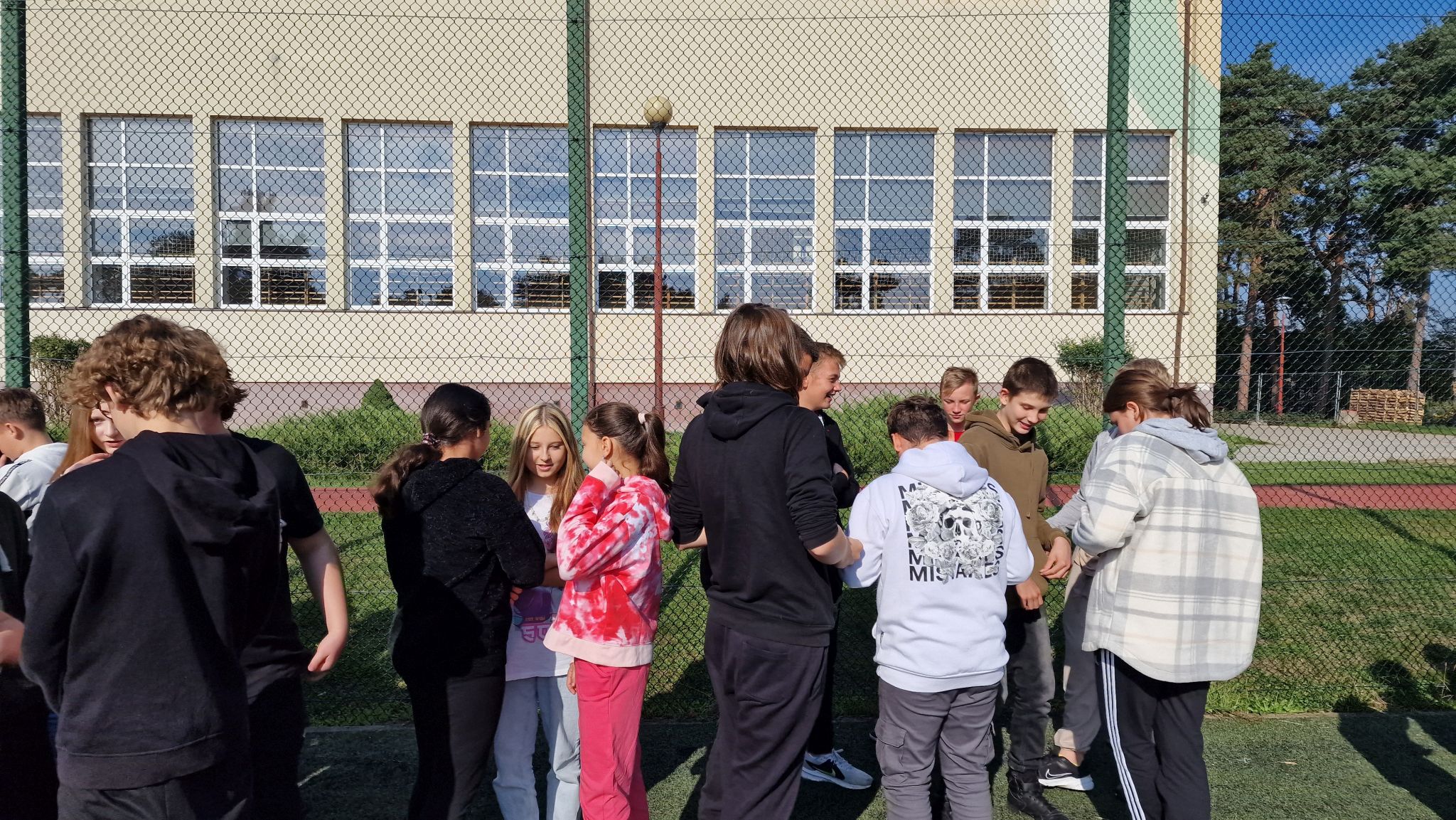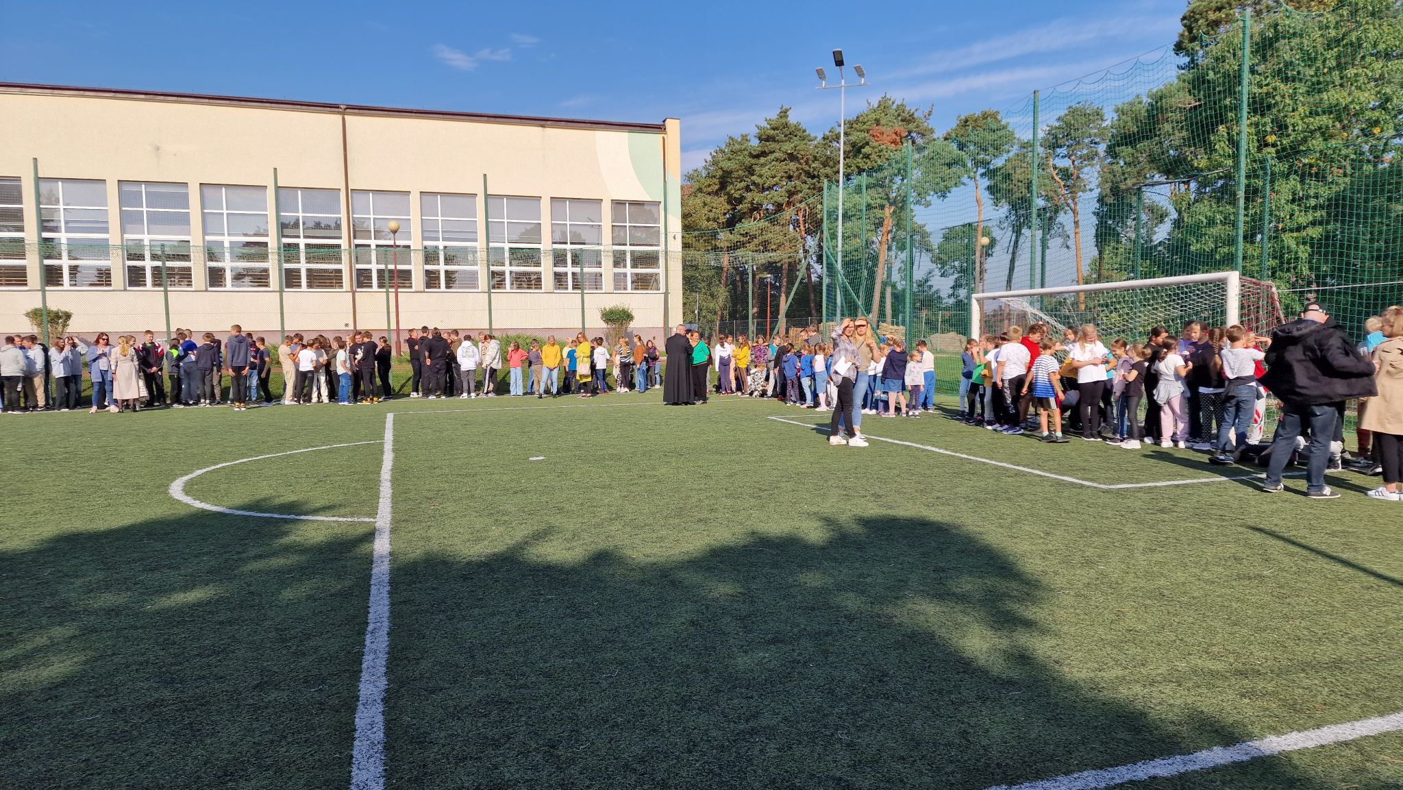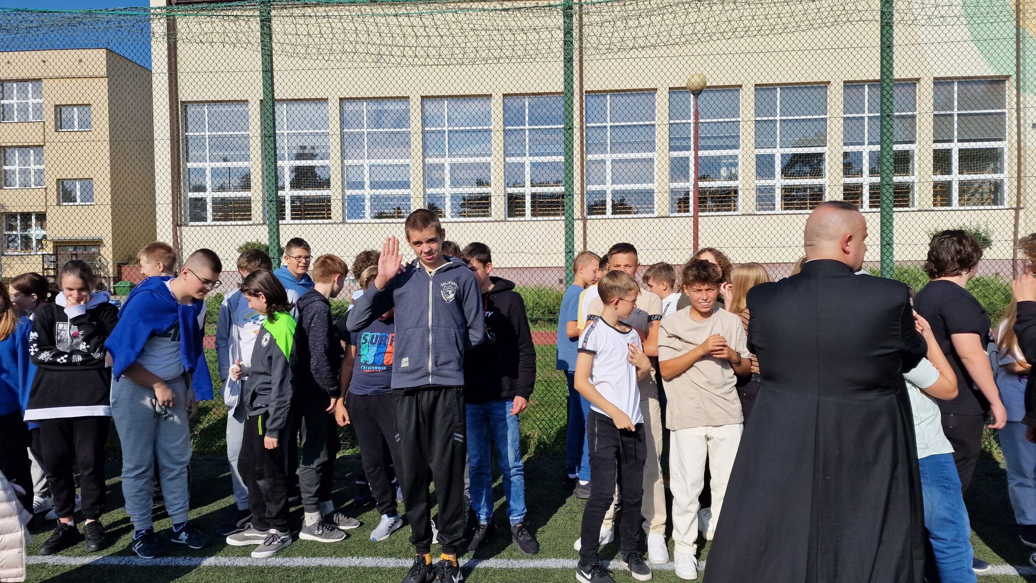 Uczniowie i nauczyciele, zachowując środki bezpieczeństwa, szybko i sprawnie opuścili budynek szkoły. Wszyscy w spokoju i bez paniki wykonali zadanie próbnego alarmu.