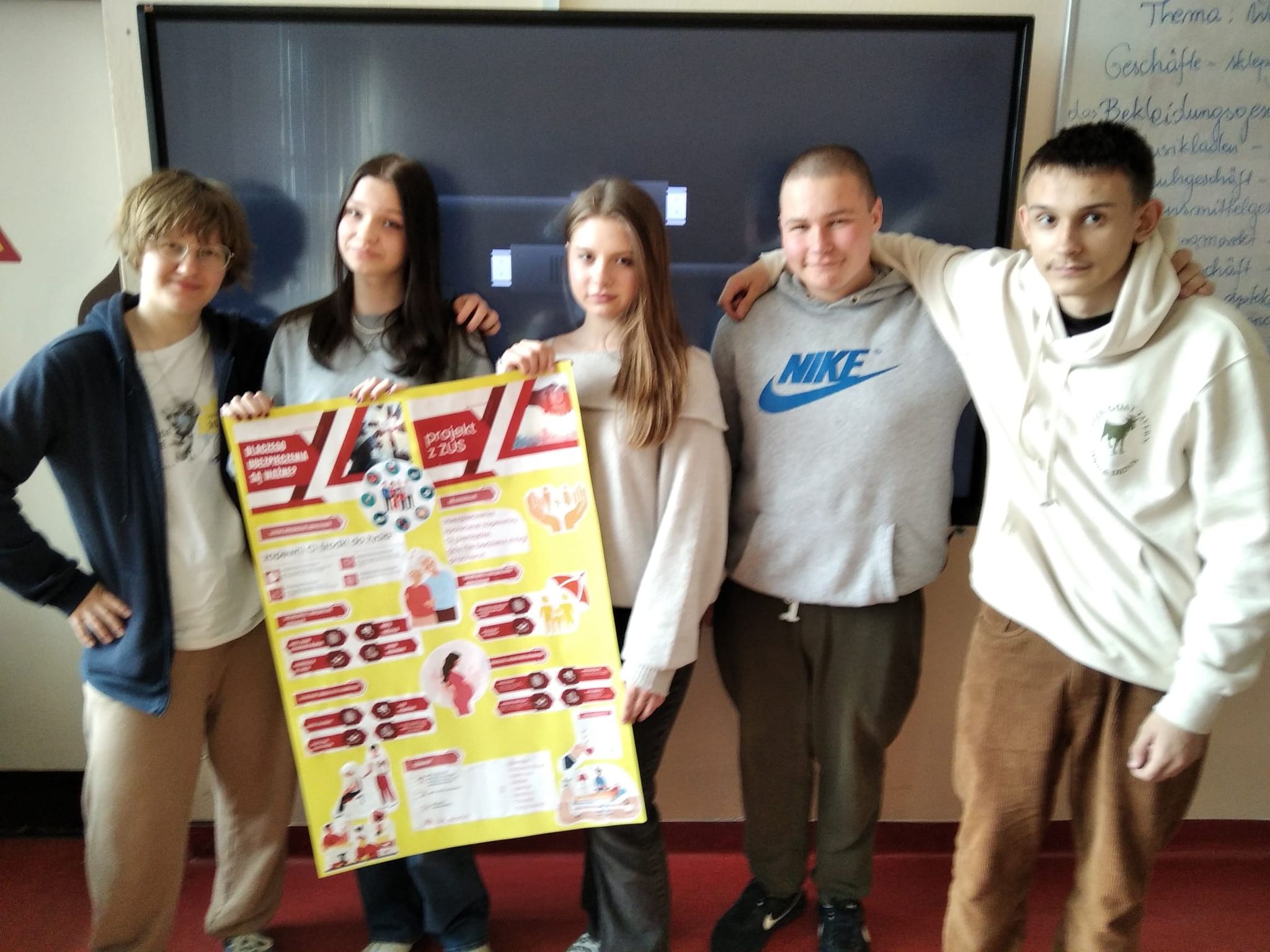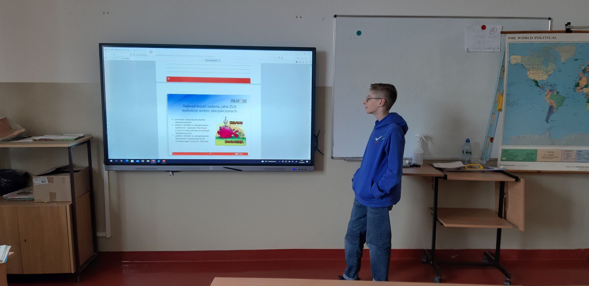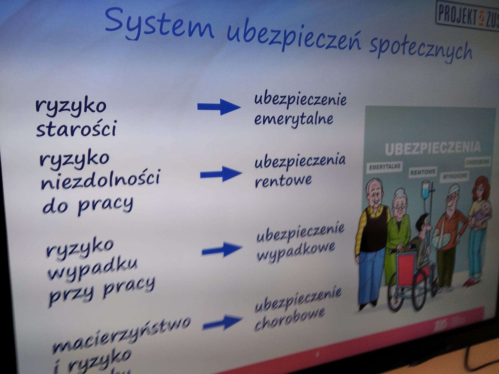 Wychodząc naprzeciw oczekiwaniom współczesnego świata, który oczekuje od młodego człowieka postawy aktywnego obywatela, panie B. Woźniak i A. Smarz zdecydowały się na realizację projektu, którego celem było upowszechnienie wiedzy o ubezpieczeniach społecznych. „Projekt z ZUS” przeprowadzony został przez koordynatorki w klasach VIlla, VIIIb i Vb.
