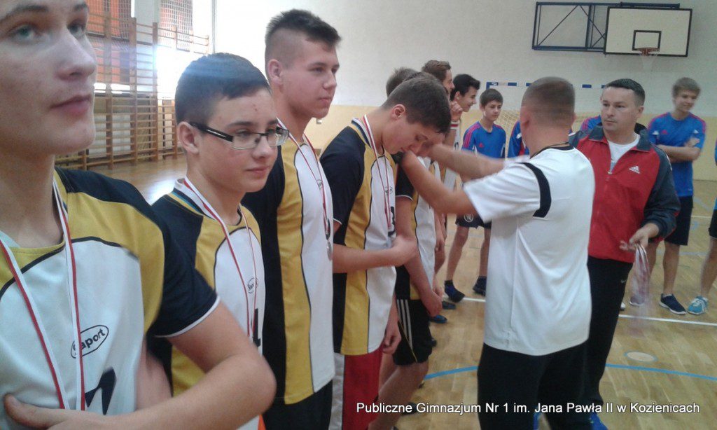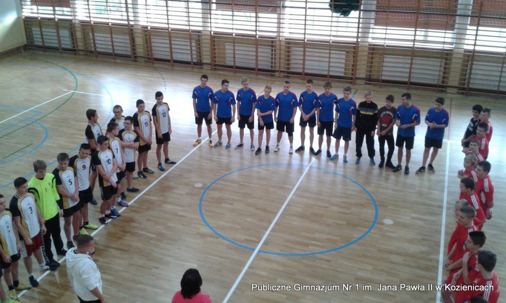 Zgodnie z kalendarzem imprez sportowych Miasta i Gminy Kozienice w dniu 31.10.2015r. w Publicznym Gimnazjum Nr 1 im. Jana Pawła II w Kozienicach o godz. 9.00 odbyły się na szczeblu gminy. W zawodach uczestniczyły drużyny z PG im. bp. Jana Chrapka i PG Nr 2 im. Zygmunta Starego w Kozienicach oraz Świerżach Górnych oraz Publicznego Gimnazjum Nr 1 im. Jana Pawła II w Kozienicach.