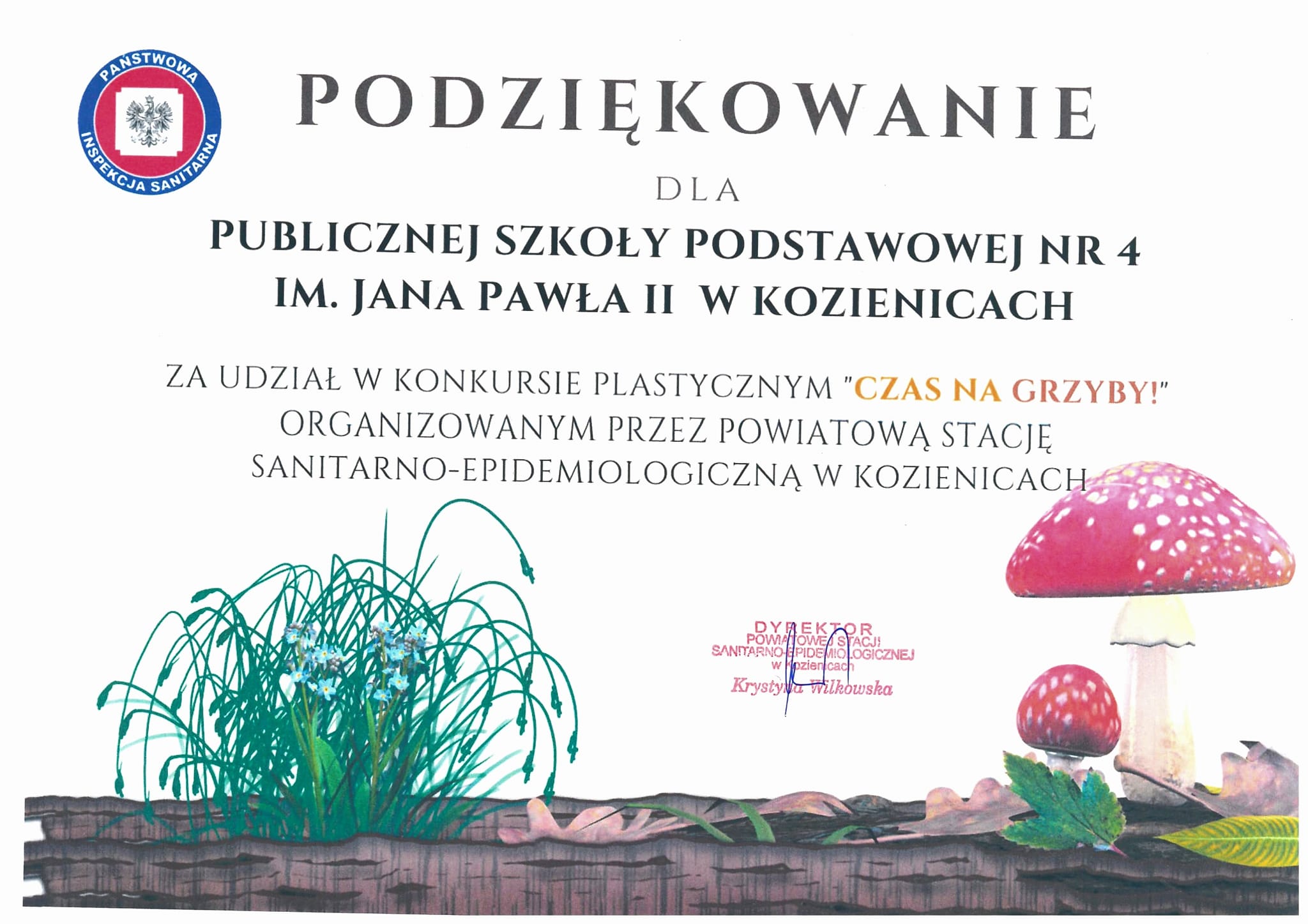 W dniu 5 grudnia 2022r na teranie Powiatowej Stacji Sanitarno – Epidemiologicznej w Kozienicach odbyło się rozstrzygniecie konkursu plastycznego „ Czas na grzyby”. Konkurs przeznaczony był dla uczniów klas I – III. Celem konkursu było rozpowszechnienie i pogłębienie wiedzy na temat lasu, grzybów, zatruć grzybami, uświadomienie zagrożeń zdrowia i życia wynikających ze zbierania i spożywania nieznanych grzybów oraz podkreślenie roli grzybów w przyrodzie.