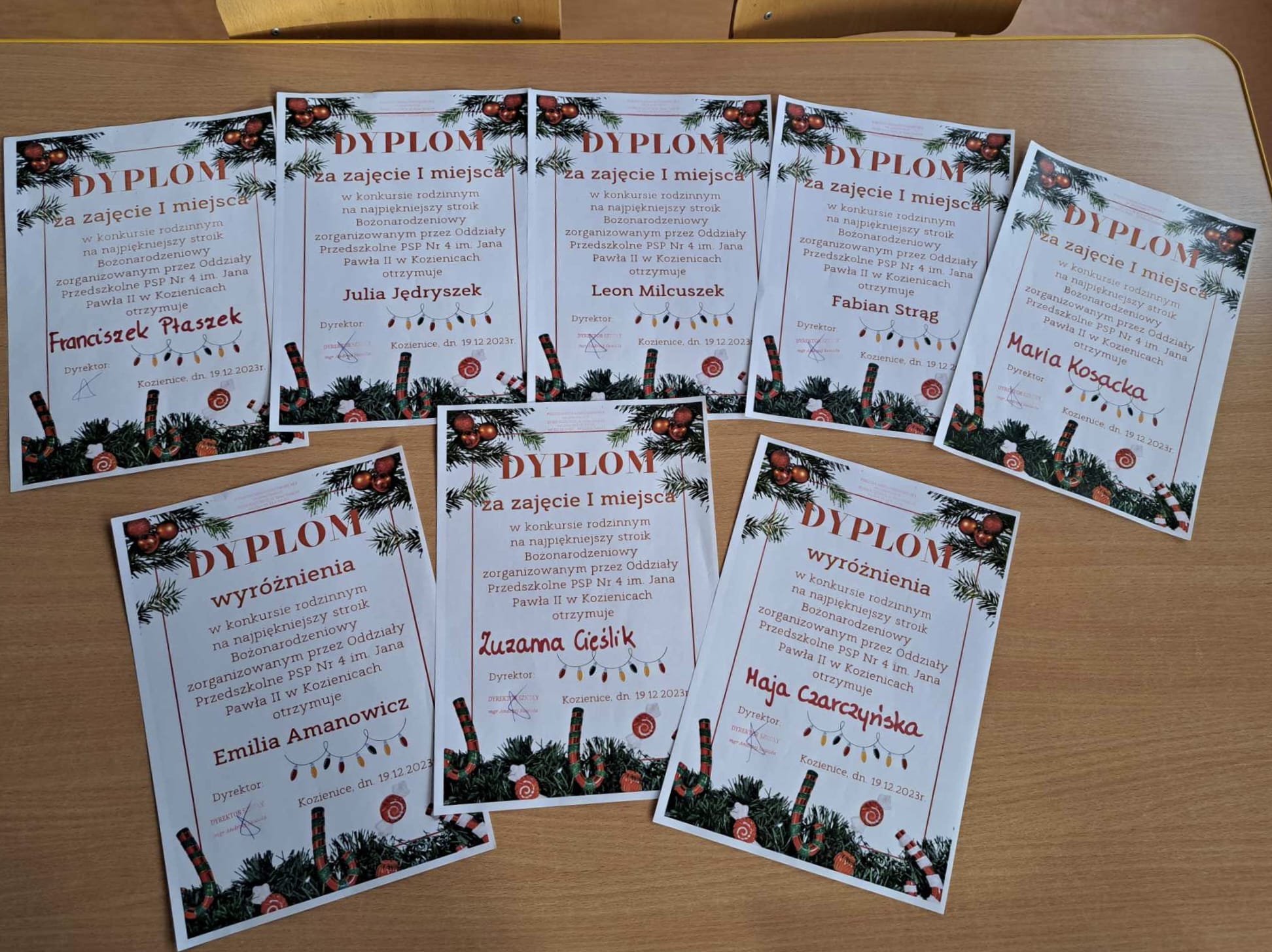 W dniu 19 grudnia w oddziałach przedszkolnych odbyło się rozstrzygnięcie rodzinnego konkursu na najpiękniejszy stroik bożonarodzeniowy. Przedszkolaki wraz z rodzicami stanęli na wysokości zadania i wpłynęło mnóstwo stroików konkursowych. Prace wykonane były z dużą dbałością o szczegóły,