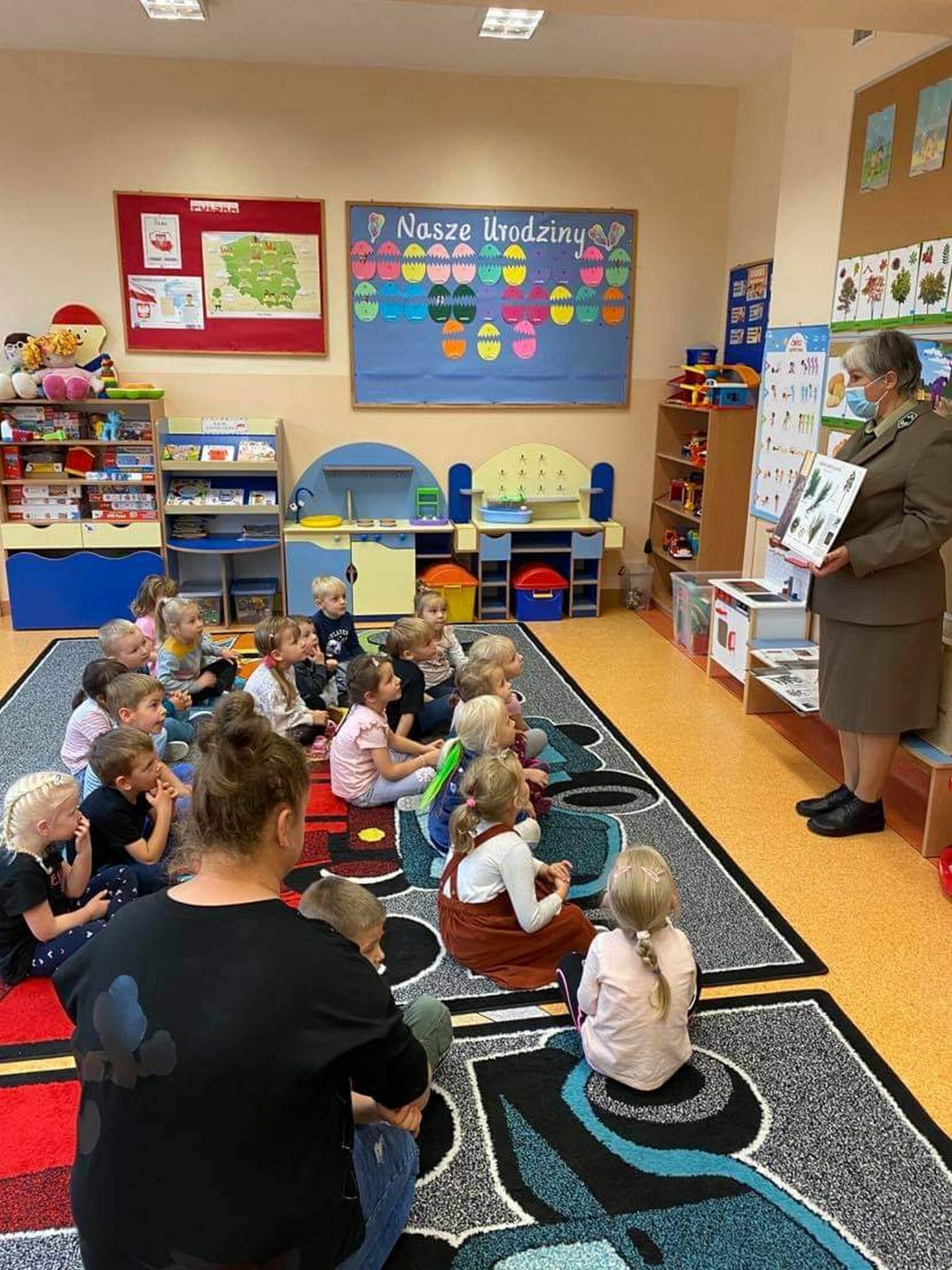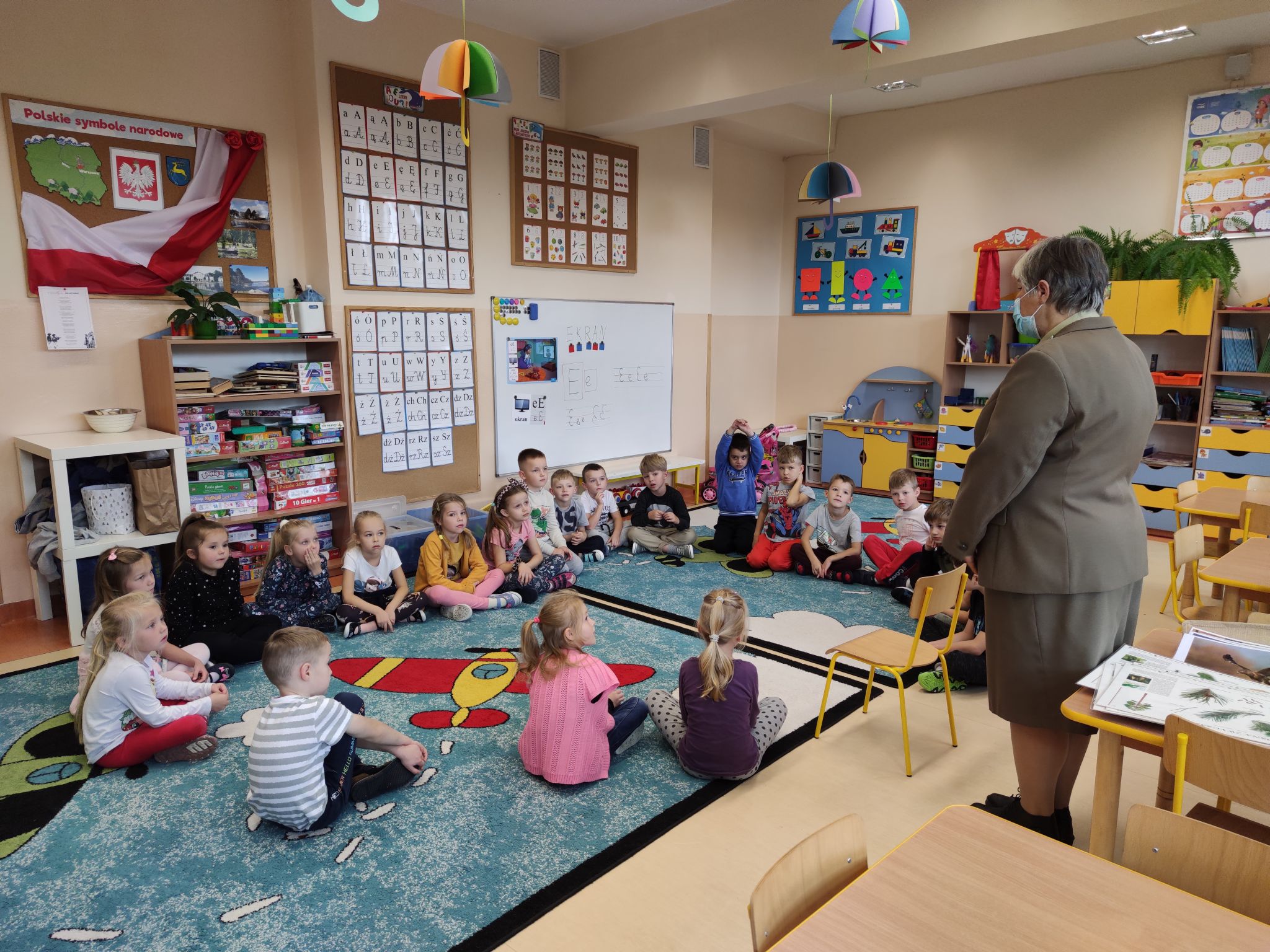 Od kilku lat w dniu 10 października w Polsce obchodzony jest Dzień Drzewa, organizowany przez stowarzyszenia ekologiczne i nadleśnictwa. Z tej okazji 12.10.2021 roku na zaproszenie dzieci oddziałów przedszkolnych przybył do przedszkola niezwykły gość Pani Leśniczy Lidia Zaczyńska z Nadleśnictwa Kozienice. Dzieci oczekiwały jej wizyty z niecierpliwością od samego rana. Z okazji obchodzonego Dnia Drzewa w salach powstały piękne dekoracje oraz prace plastyczne.