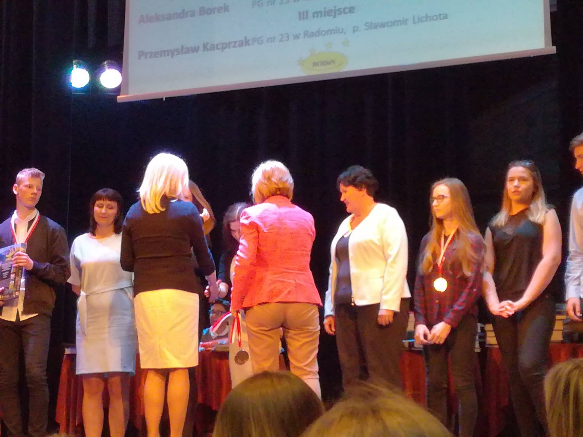 Uczeń klasy 3b Jakub Kęska zdobył tytuł laureata Radomskich Zawodów Fizycznych i tytuł finalisty Radomskich Zawodów Matematycznych. Opiekunką Kuby z fizyki była pani wicedyrektor Urszula Szerszeń . Matematyczne problemy Kuba rozwiązywał pod czujnym okiem pani Grażyny Śmietanki. Gratulujemy Kubie a paniom życzymy dalszych sukcesów zawodowych.