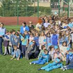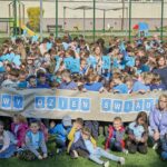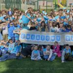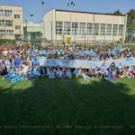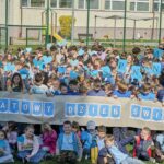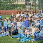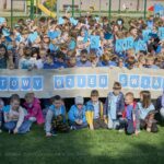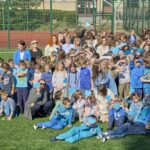 . Cała społeczność szkolna, ubrana na niebiesko