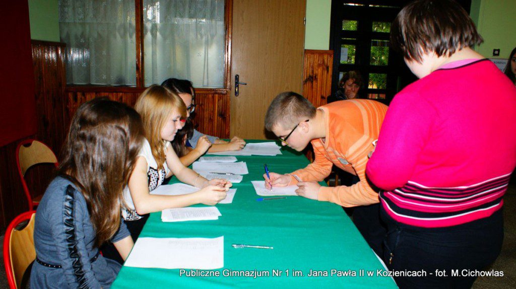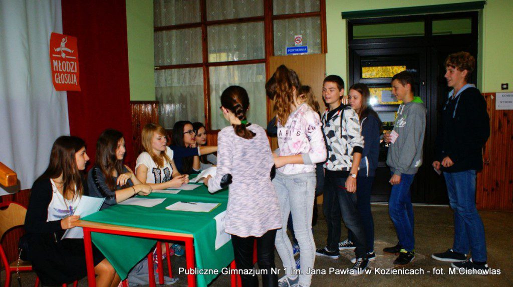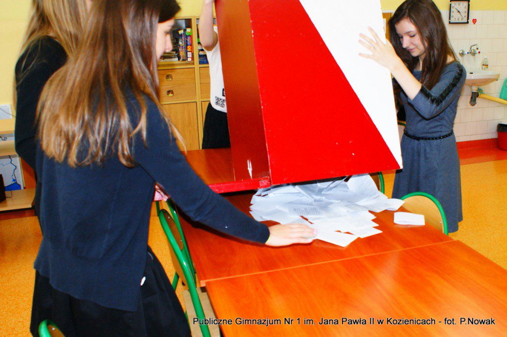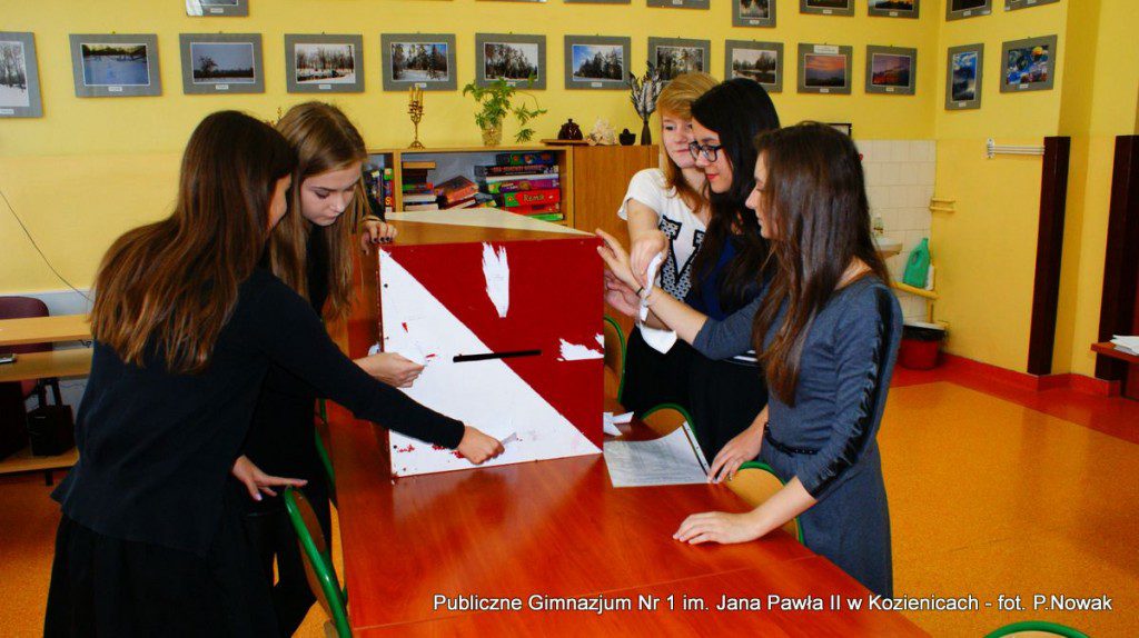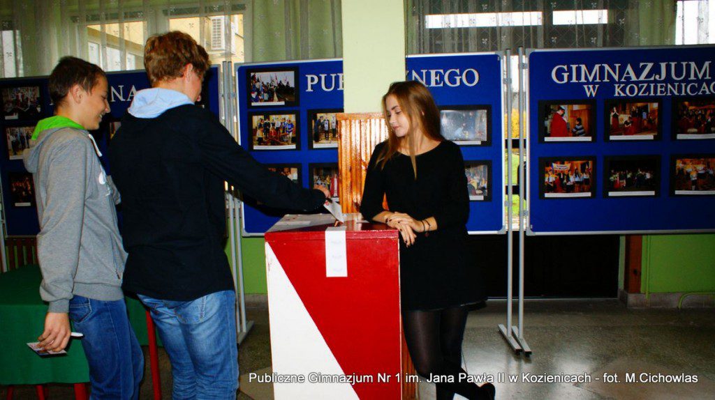Dnia 23.10.2015 roku w naszej szkole odbyła się symulacja wyborów parlamentarnych. Do głosowania uprawnionych było 378 osób, a przystąpiło 109, 4 głosy były nieważne. Przed wyborami przygotowałyśmy informacje o poszczególnych partiach, jak również wykorzystałyśmy materiały z CEO i zaprezentowałyśmy je na tablicy informacyjnej. Uczniom została wyświetlona prezentacja multimedialna, której celem było uświadomienie na czym polegają demokratyczne wybory. Aby wziąć udział w głosowaniu, osoby uprawnione musiały pokazać dokument ze zdjęciem. Gdy zainteresowani dokonali wyboru, komisja udała się, aby podliczyć głosy. W naszej szkole wybory wygrał Komitet Wyborczy Prawo i Sprawiedliwość. Wielu zwolenników miał również Komitet Wyborczy „Kukiz’15” oraz Komitet Wyborczy KORWiN. Dzięki takiej symulacji młodzież mogła nauczyć się jak przebiegają demokratyczne wybory, jak również wyrazić swoje zdanie. Cieszymy się, że mogłyśmy brać udział w takiej akcji i zachęcamy wszystkich do głosowania.