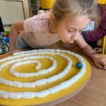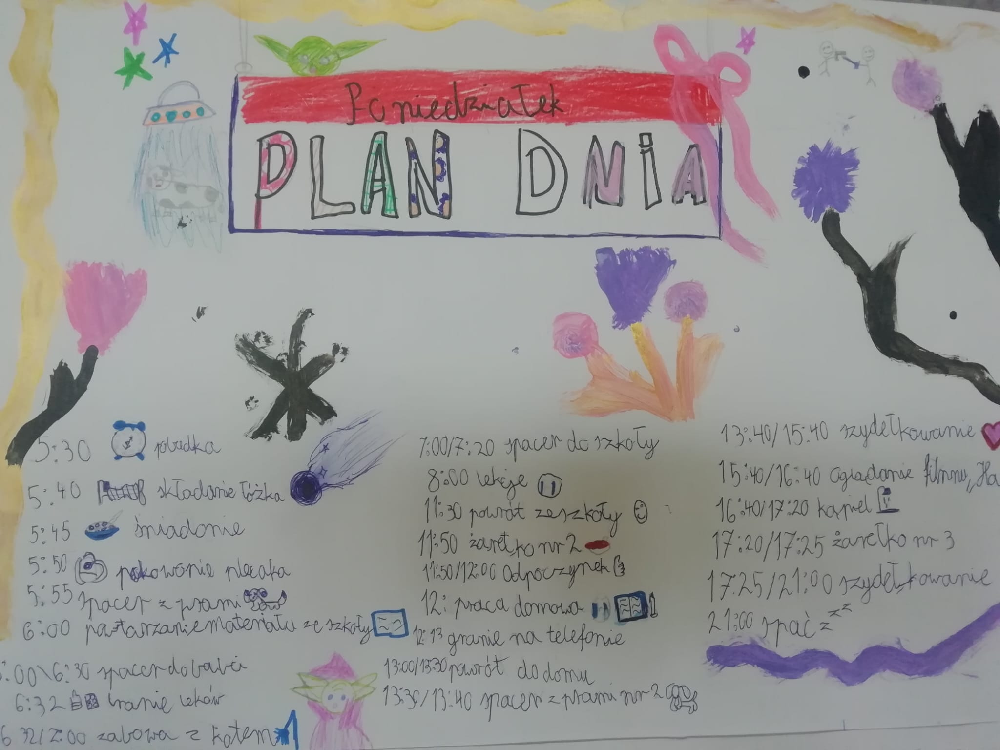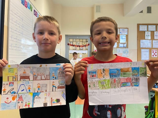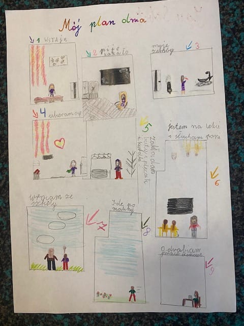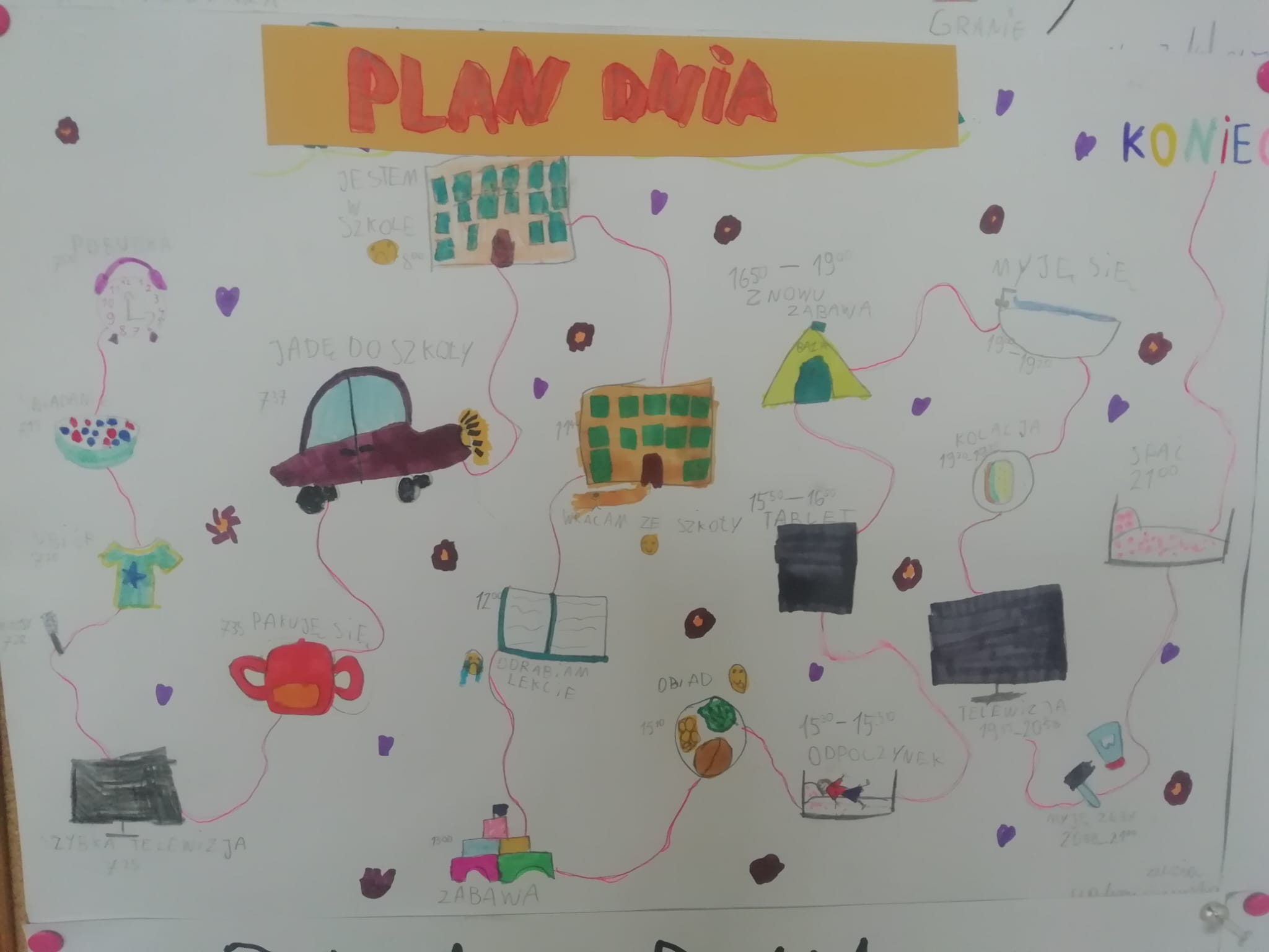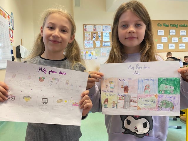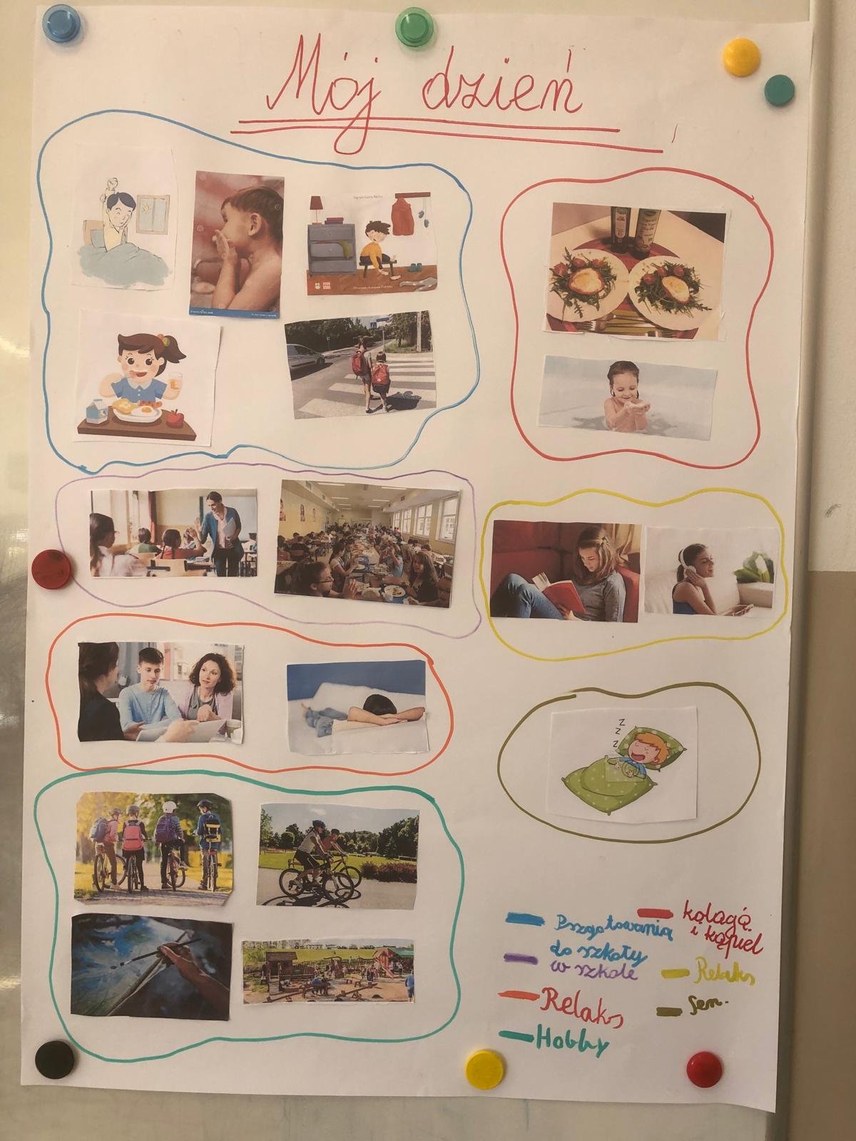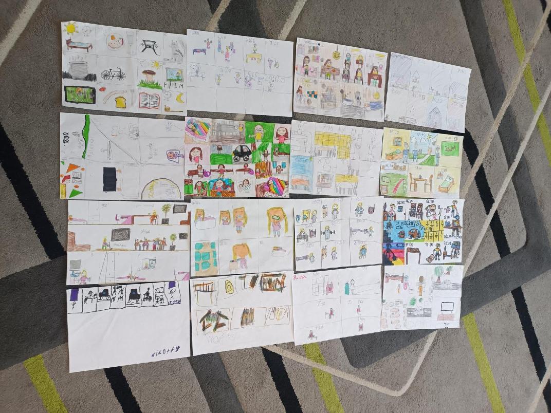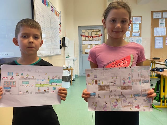 Uczniowie klas II–III uczestniczyli w warsztatach przygotowanych przez wychowawczynie. Podczas zajęć tworzyli własne gry planszowe, w których każde pole symbolizowało element planu dnia. Dzięki temu, wykorzystując swoją kreatywność, dzieci wymyślały, co dzieje się na poszczególnych etapach ich codzienności.