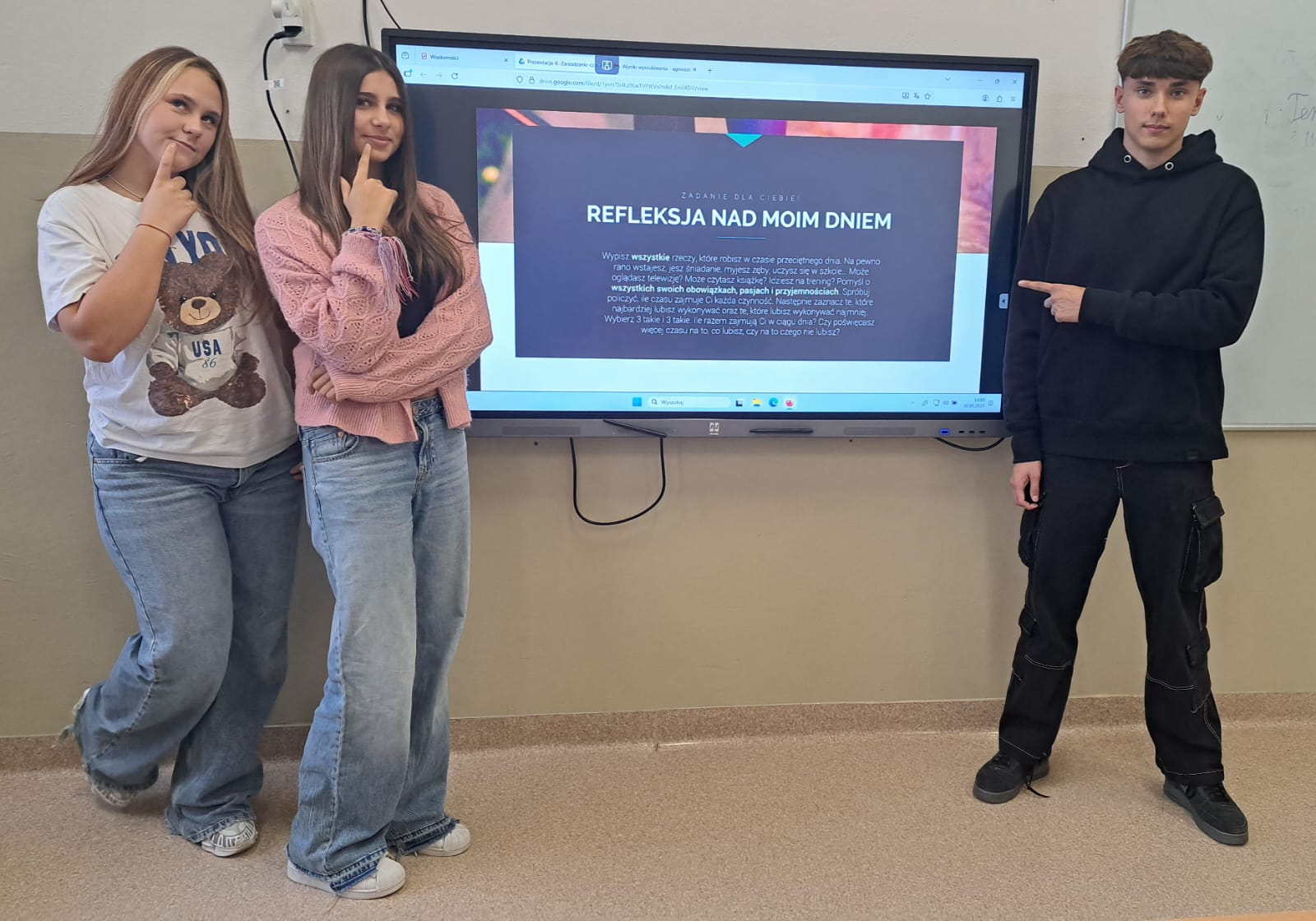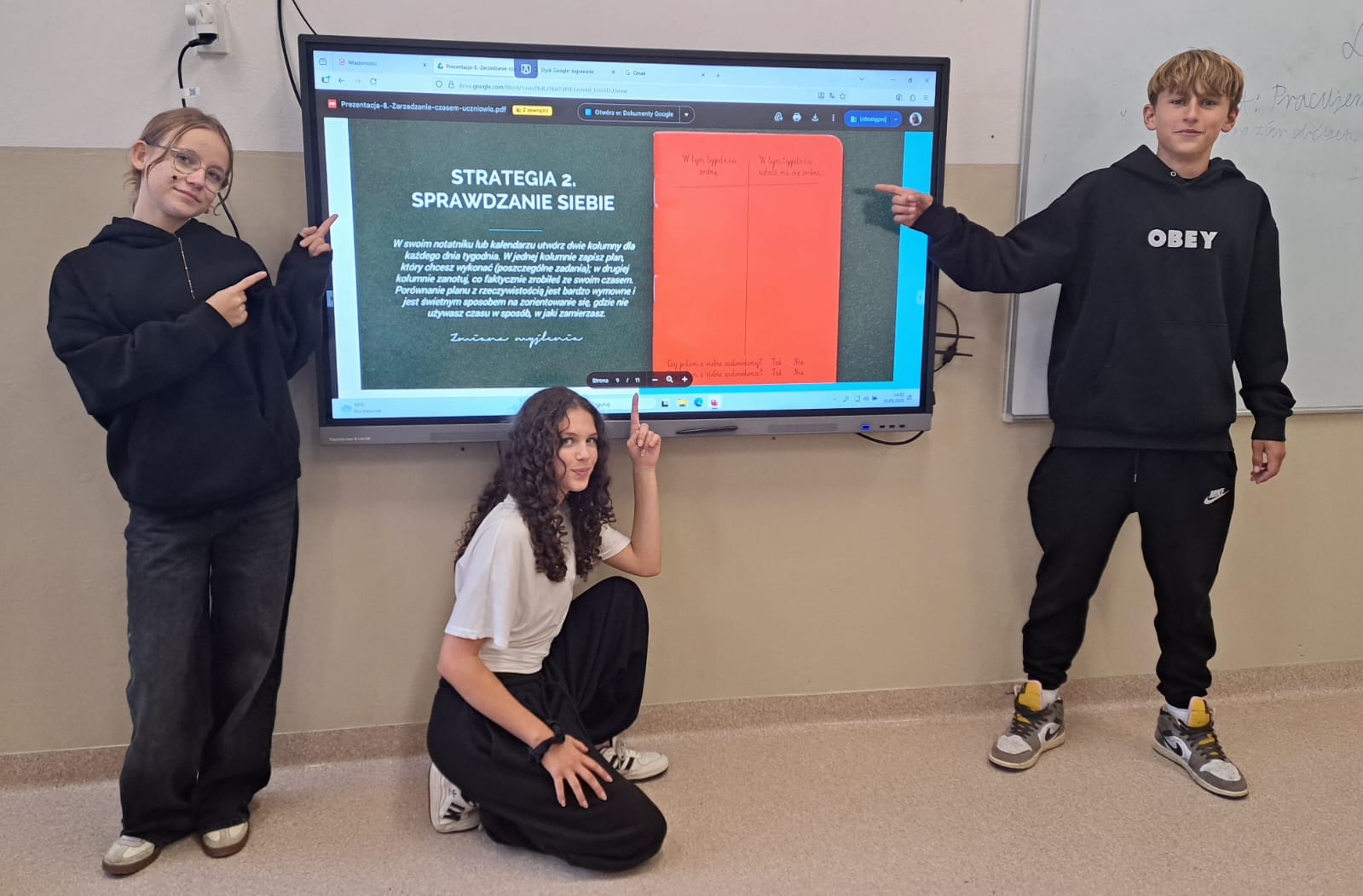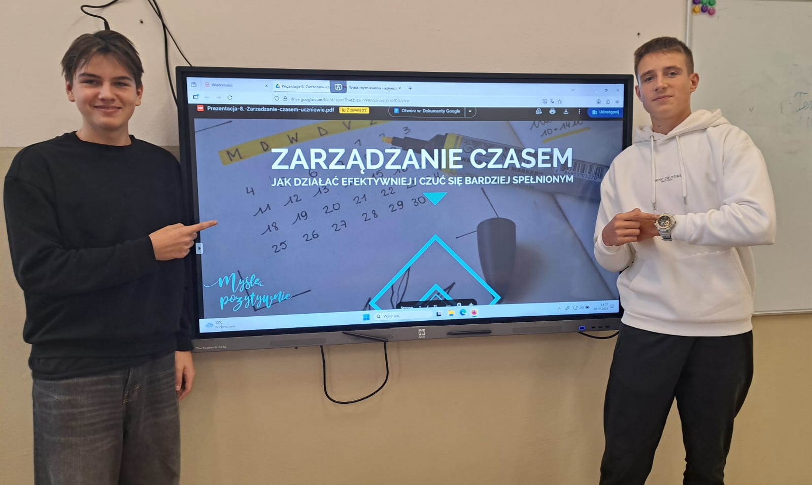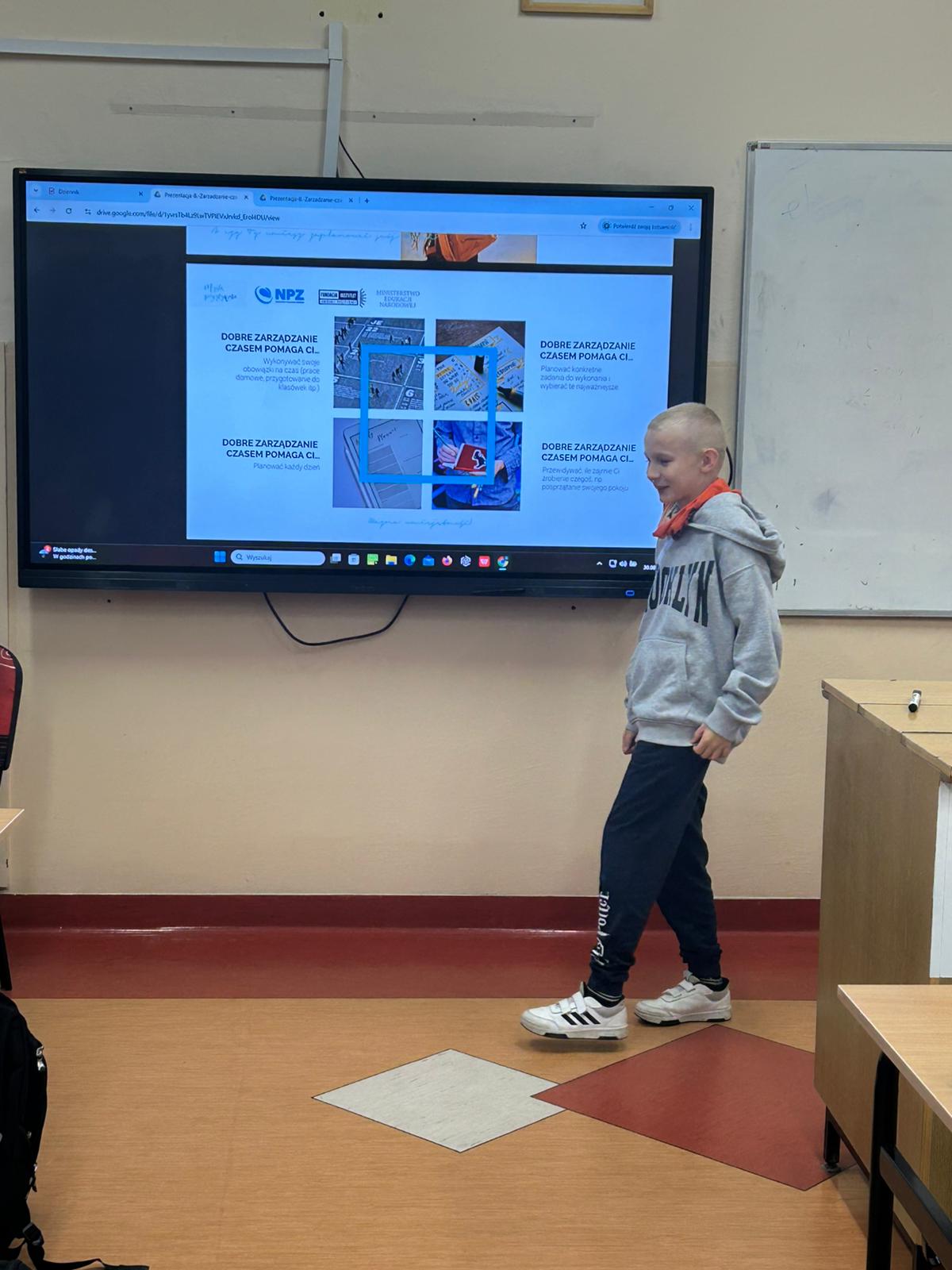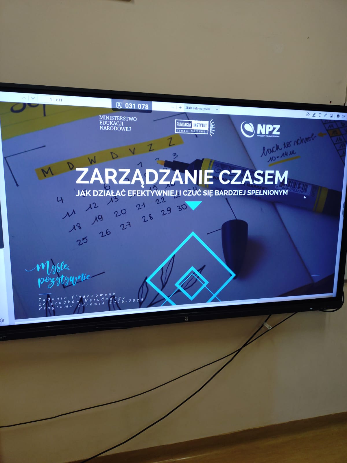 W klasach IV–VIII wychowawcy przeprowadzili pogadanki w oparciu o prezentację pt. „Zarządzanie czasem. Jak działać efektywniej i czuć się bardziej spełnionym”. Uczniowie rozwijali umiejętności koncentracji i samoregulacji, uczyli się planowania czasu oraz równoważenia obowiązków szkolnych z odpoczynkiem. Zastanawiali się także, jak radzić sobie ze stresem poprzez właściwe gospodarowanie czasem i jak świadomie dbać o zdrowie psychiczne.