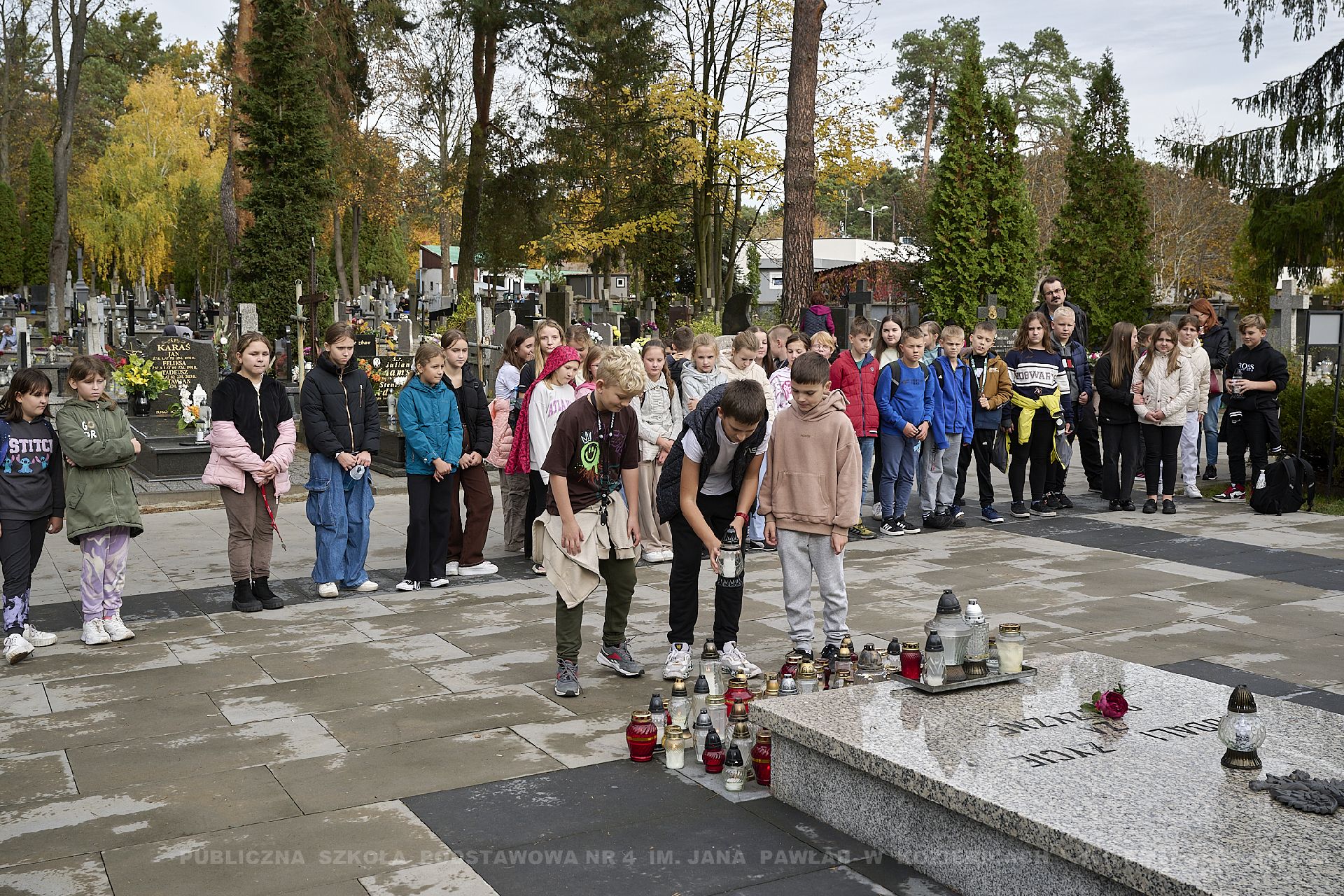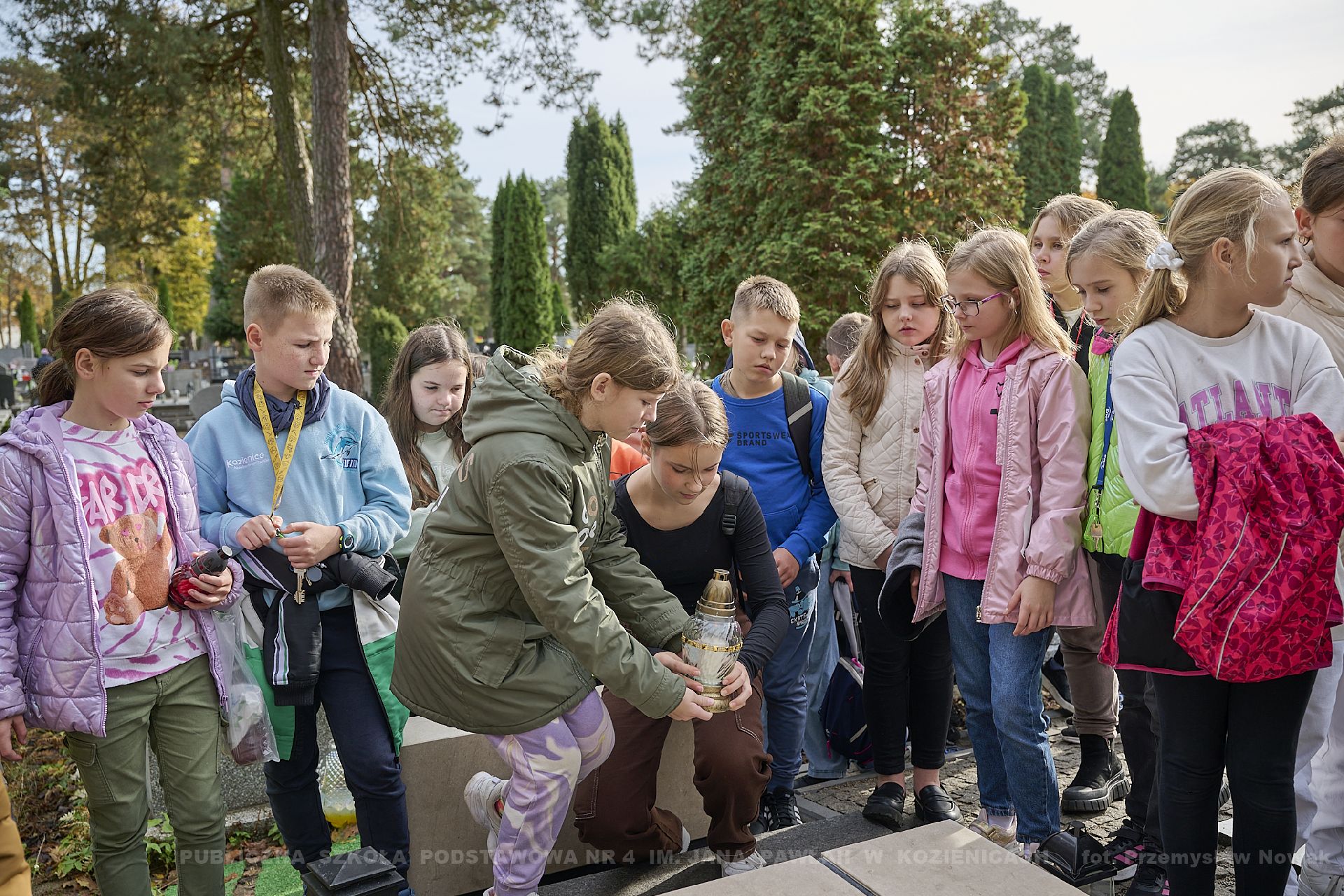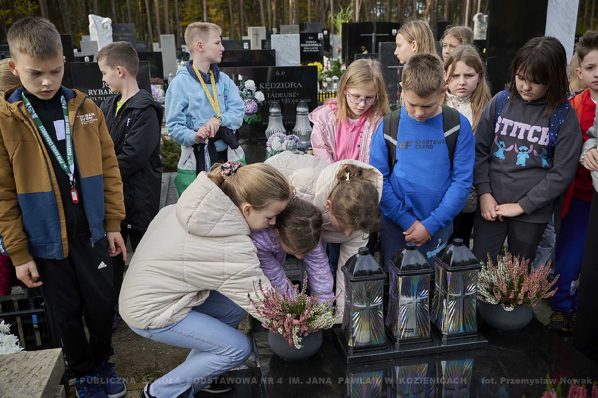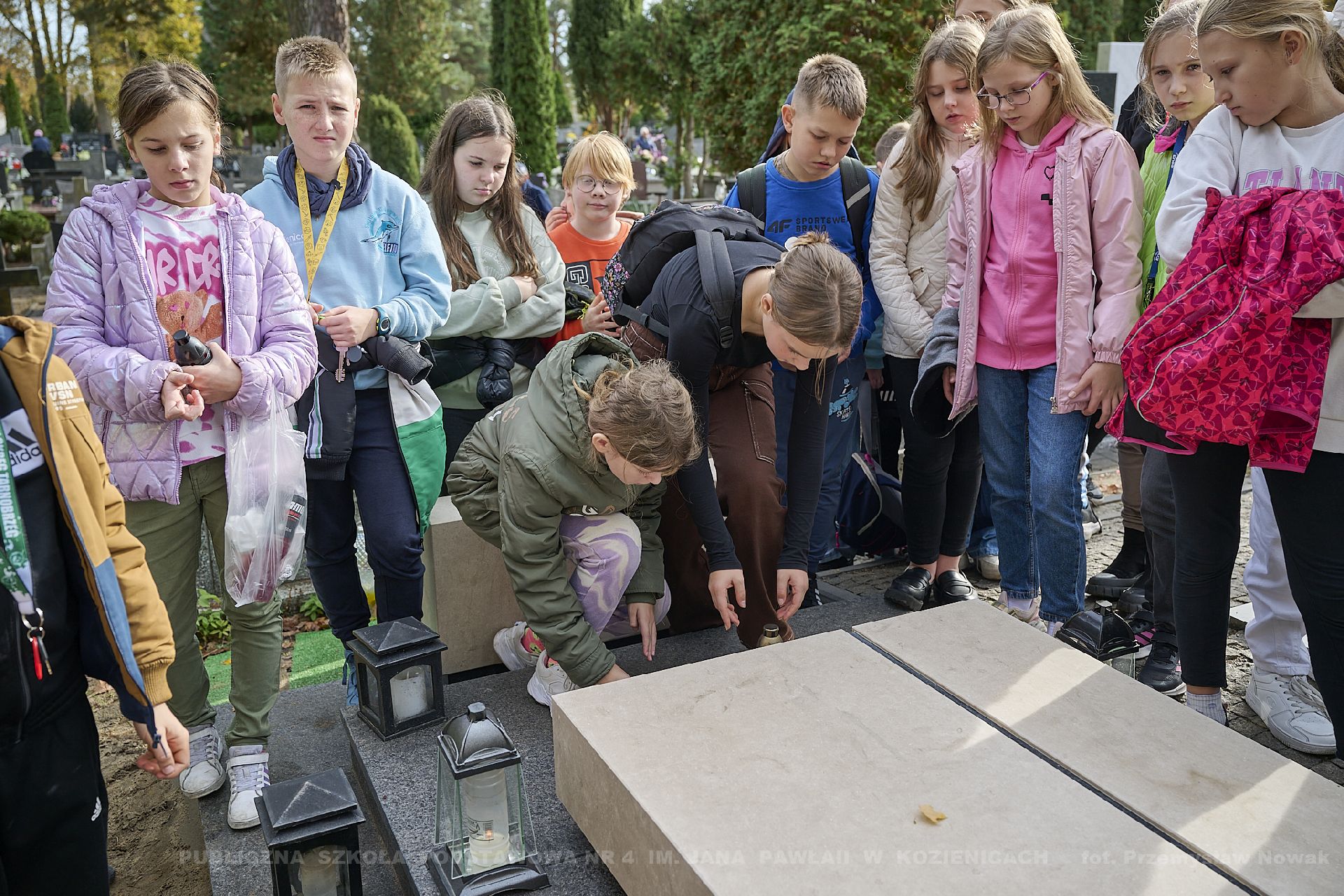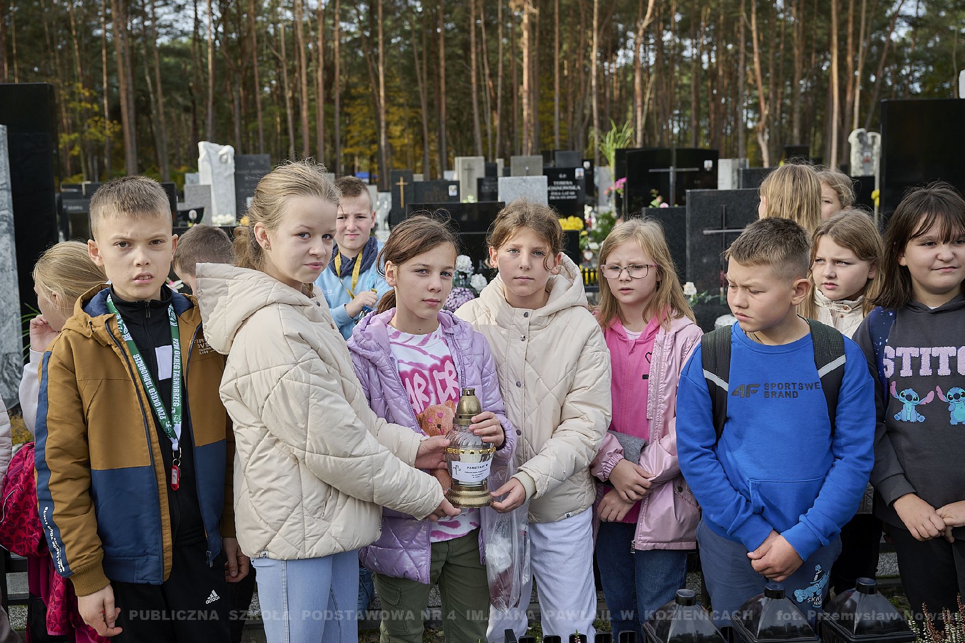 „Szkoła Pamięta” to akcja, które celem jest zwrócenie uwagi młodego pokolenia na potrzebę pielęgnowania pamięci o polskich bohaterach związanych z historią naszego kraju. W ramach tego przedsięwzięcia uczniowie naszej szkoły z klasy czwartej i piątej, odwiedzili miejsca pamięci, zapalili znicze i wysłuchali krótkiej prelekcji na temat żołnierzy, którzy spoczywają na naszym kozienickim cmentarzu. Tradycją stało się już to, że okazujemy pamięć pracownikom naszej szkoły, których znaliśmy i ceniliśmy, a których nie ma już z nami. Bo „nie umiera ten, kto trwa w pamięci żywych”. Opiekunami i realizatorami przedsięwzięcia byli: Pani Katarzyna Król, Pan Przemysław Nowak i Pan Grzegorz Kocyk.