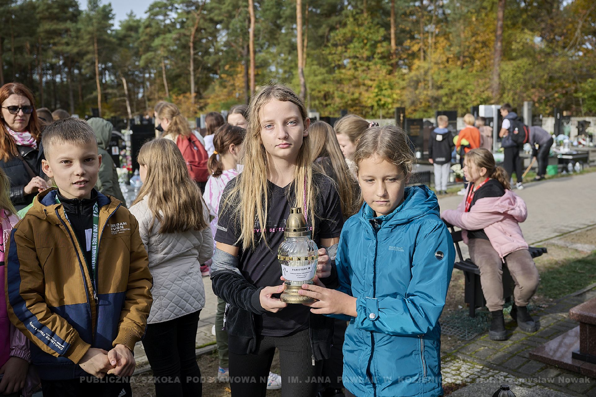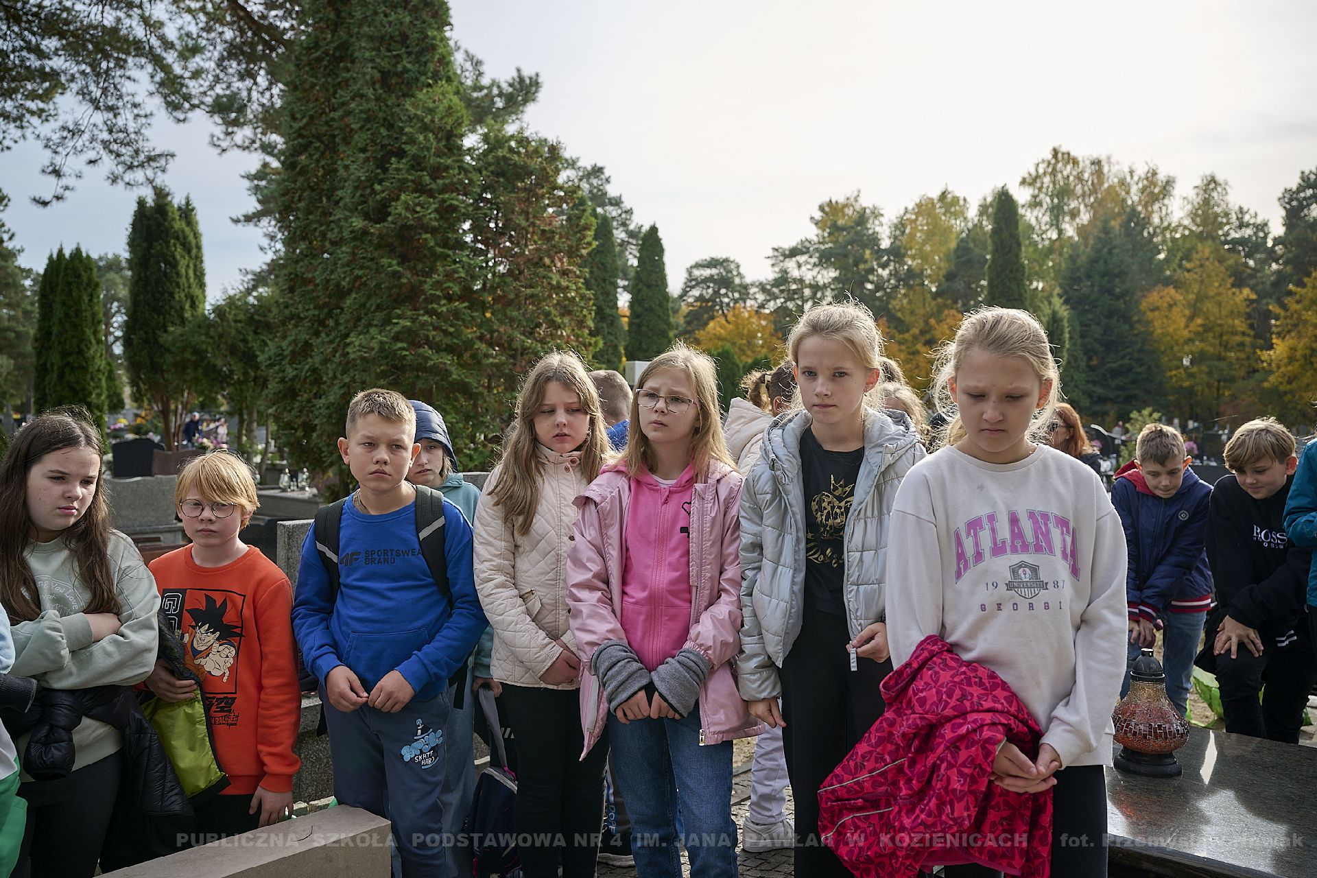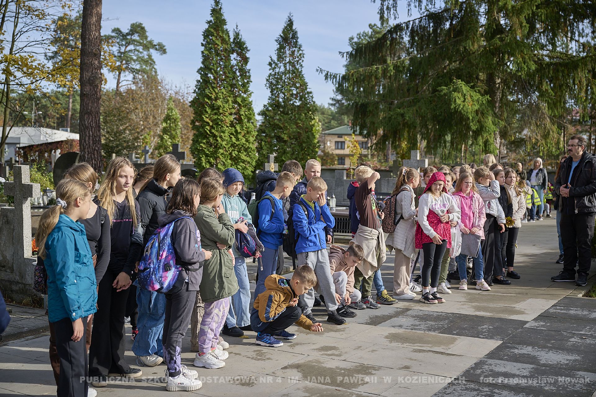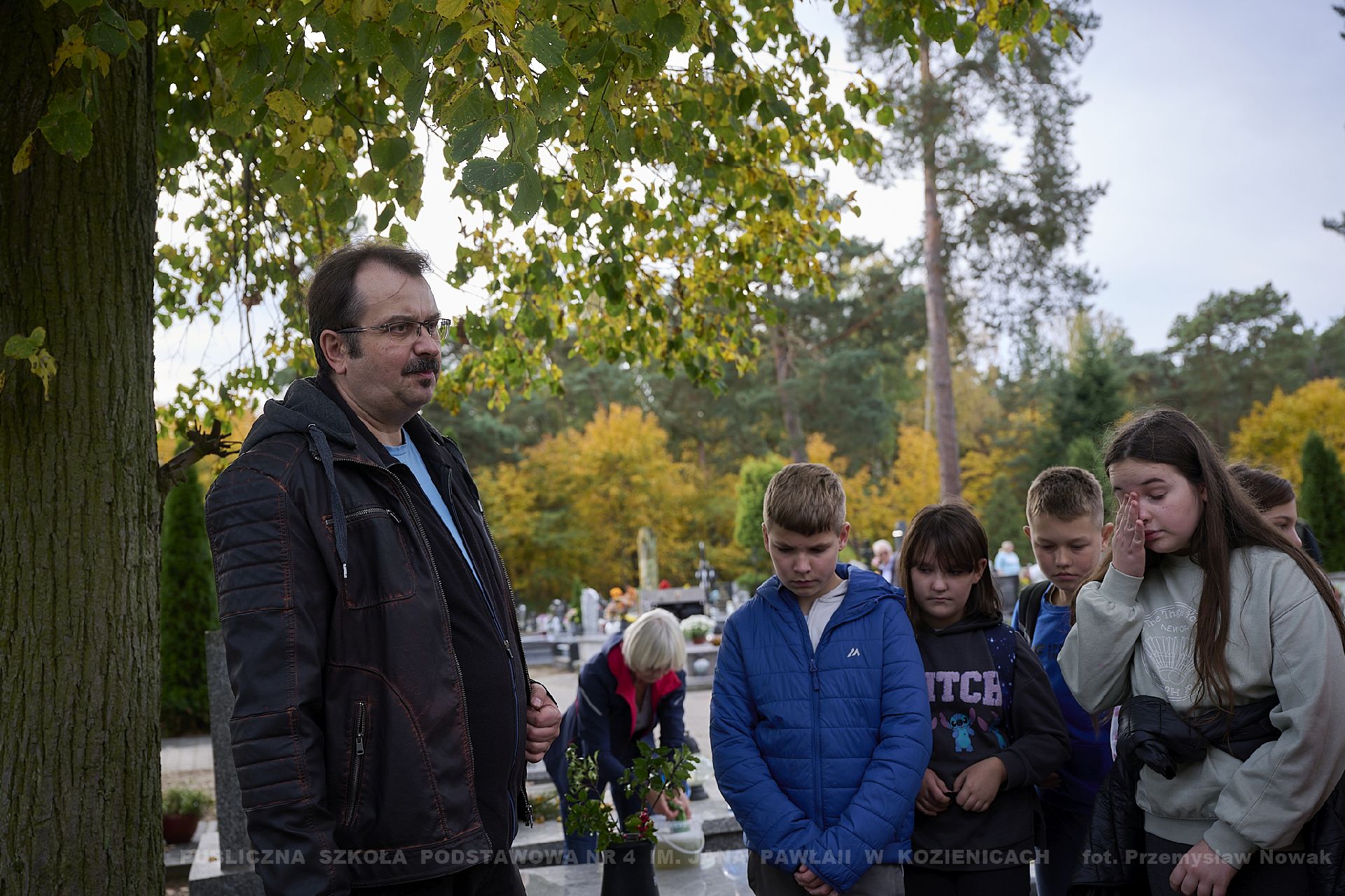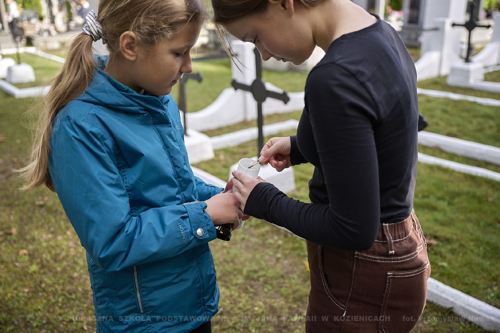 „Szkoła Pamięta” to akcja, które celem jest zwrócenie uwagi młodego pokolenia na potrzebę pielęgnowania pamięci o polskich bohaterach związanych z historią naszego kraju. W ramach tego przedsięwzięcia uczniowie naszej szkoły z klasy czwartej i piątej, odwiedzili miejsca pamięci, zapalili znicze i wysłuchali krótkiej prelekcji na temat żołnierzy, którzy spoczywają na naszym kozienickim cmentarzu. Tradycją stało się już to, że okazujemy pamięć pracownikom naszej szkoły, których znaliśmy i ceniliśmy, a których nie ma już z nami. Bo „nie umiera ten, kto trwa w pamięci żywych”. Opiekunami i realizatorami przedsięwzięcia byli: Pani Katarzyna Król, Pan Przemysław Nowak i Pan Grzegorz Kocyk.
