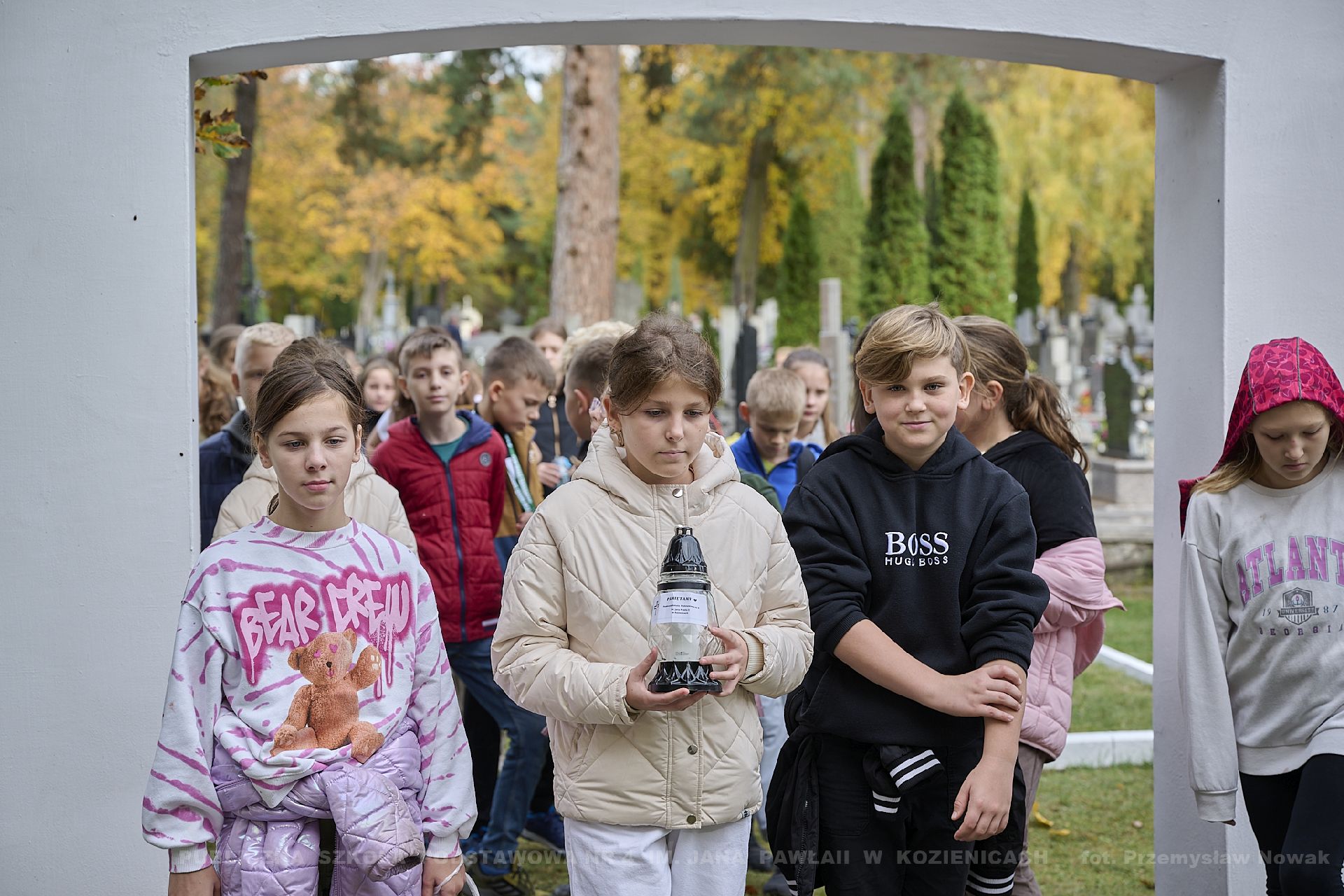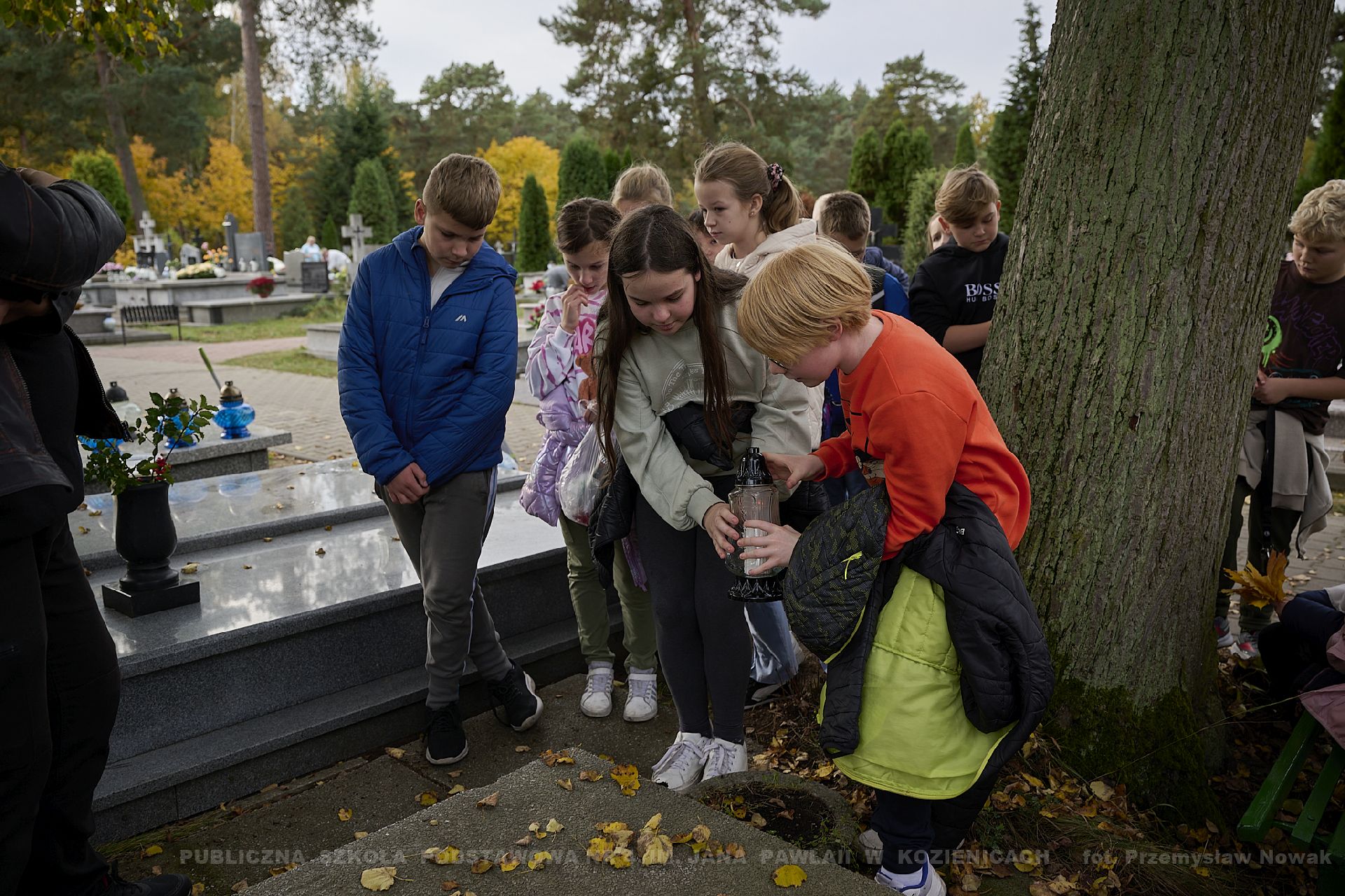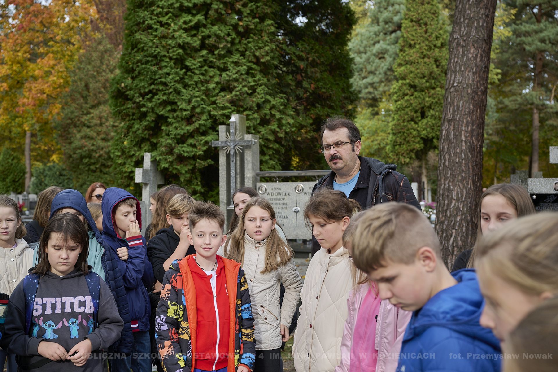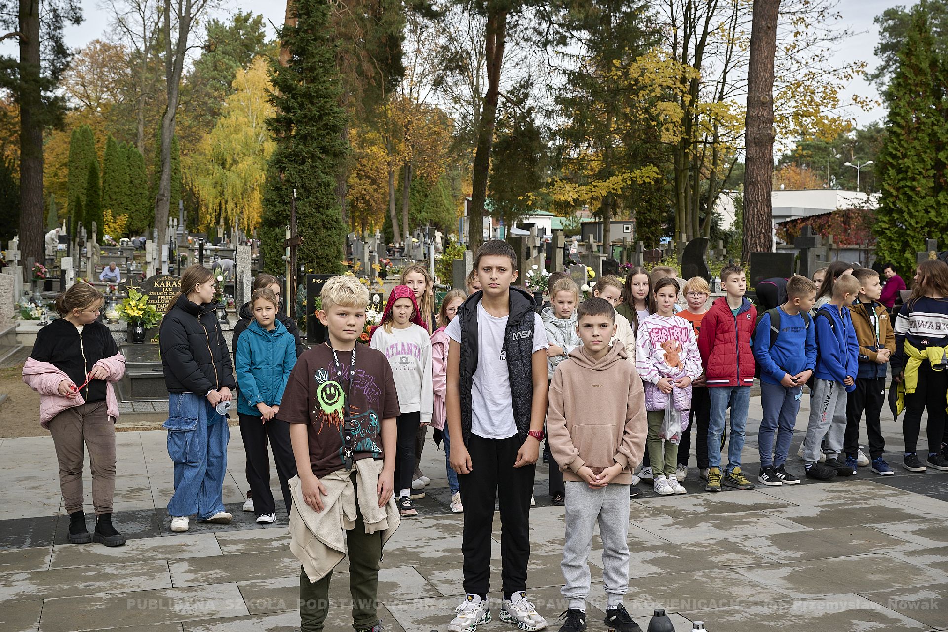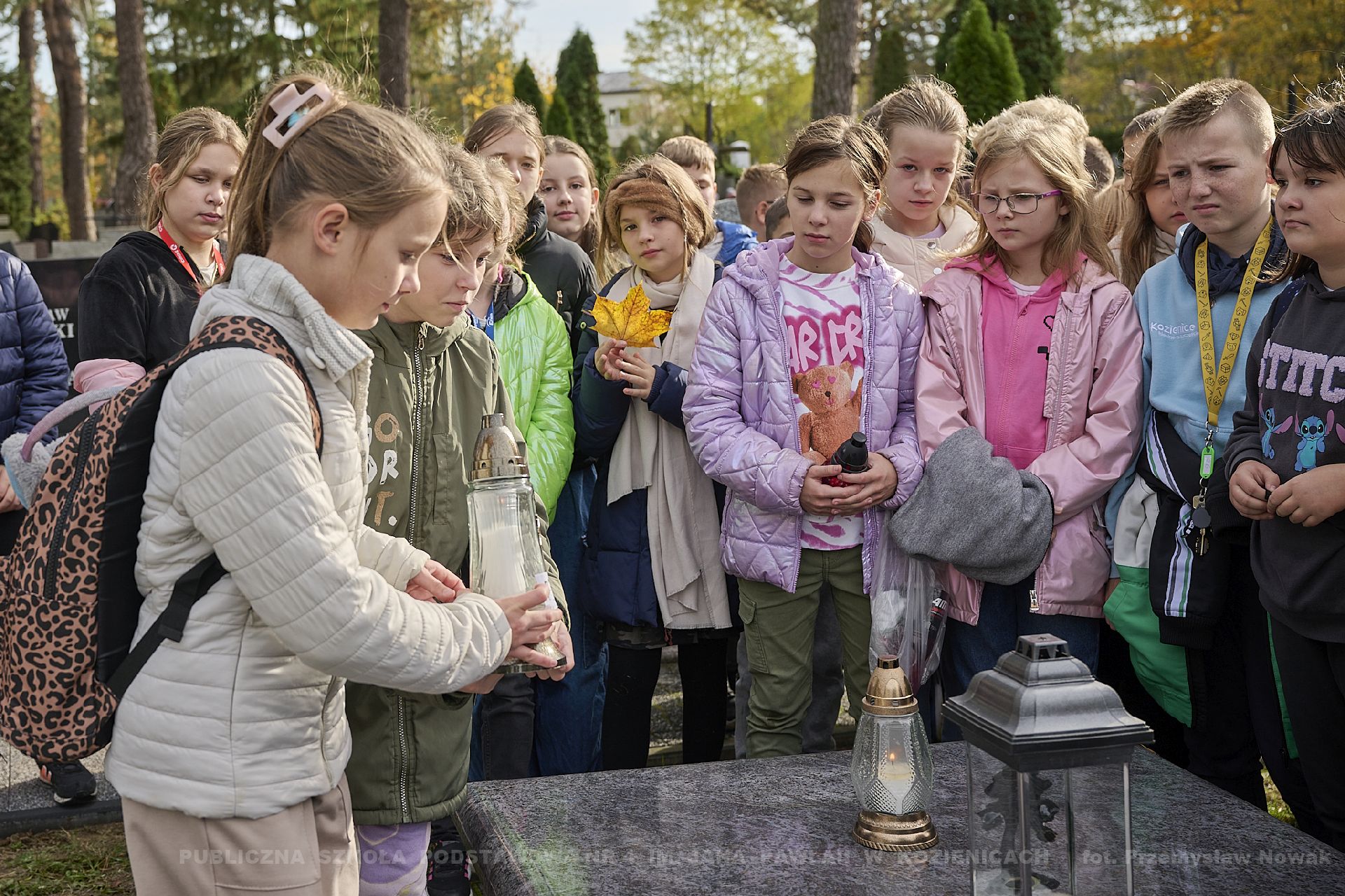 „Szkoła Pamięta” to akcja, które celem jest zwrócenie uwagi młodego pokolenia na potrzebę pielęgnowania pamięci o polskich bohaterach związanych z historią naszego kraju. W ramach tego przedsięwzięcia uczniowie naszej szkoły z klasy czwartej i piątej, odwiedzili miejsca pamięci, zapalili znicze i wysłuchali krótkiej prelekcji na temat żołnierzy, którzy spoczywają na naszym kozienickim cmentarzu. Tradycją stało się już to, że okazujemy pamięć pracownikom naszej szkoły, których znaliśmy i ceniliśmy, a których nie ma już z nami. Bo „nie umiera ten, kto trwa w pamięci żywych”. Opiekunami i realizatorami przedsięwzięcia byli: Pani Katarzyna Król, Pan Przemysław Nowak i Pan Grzegorz Kocyk.