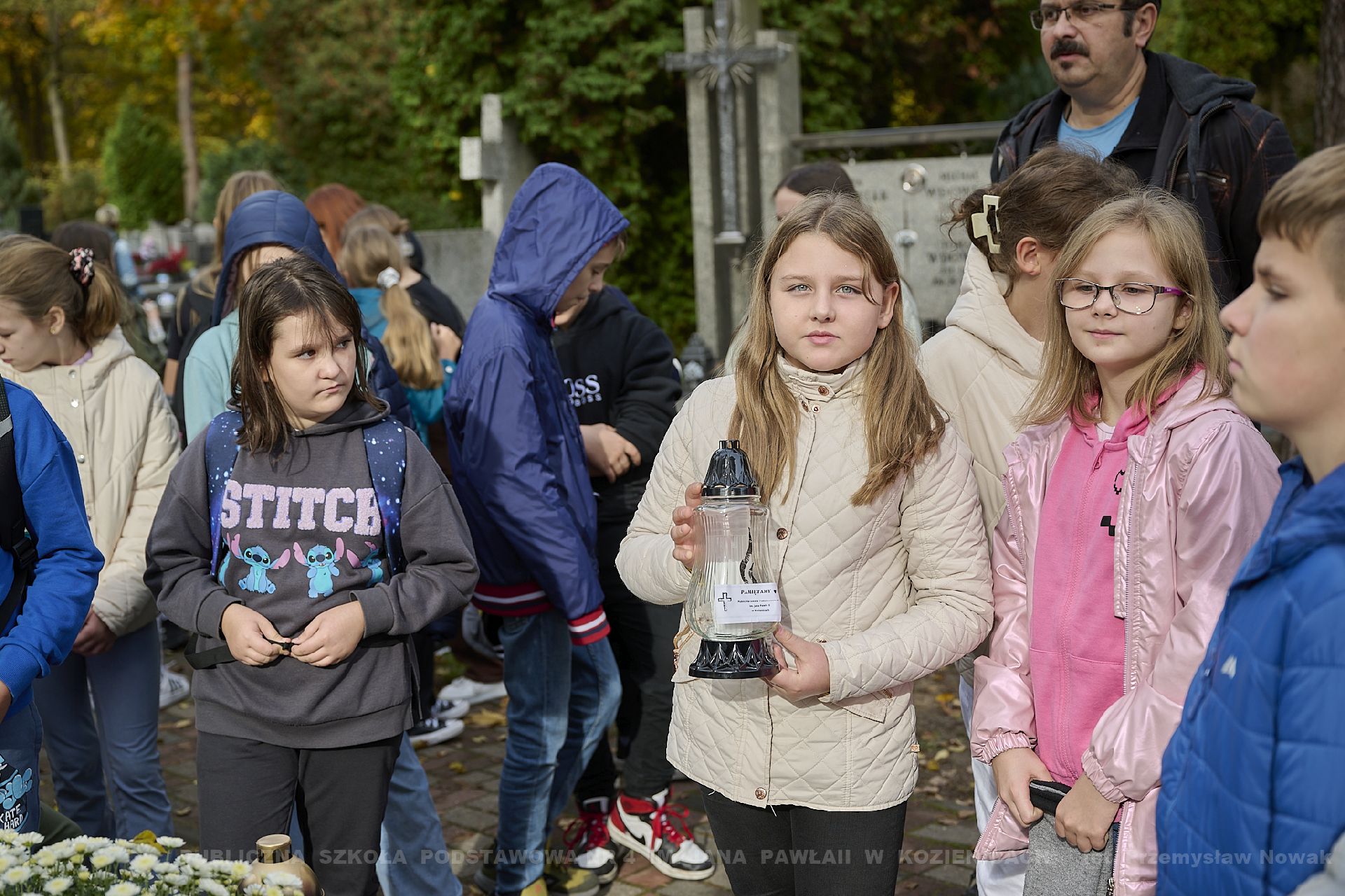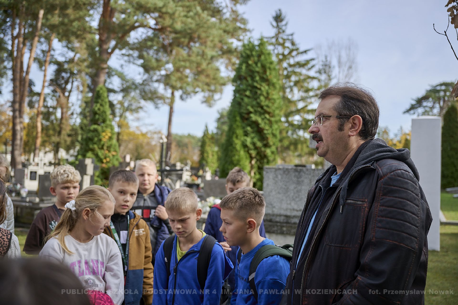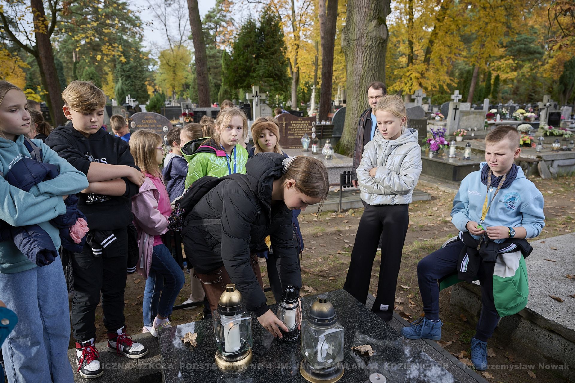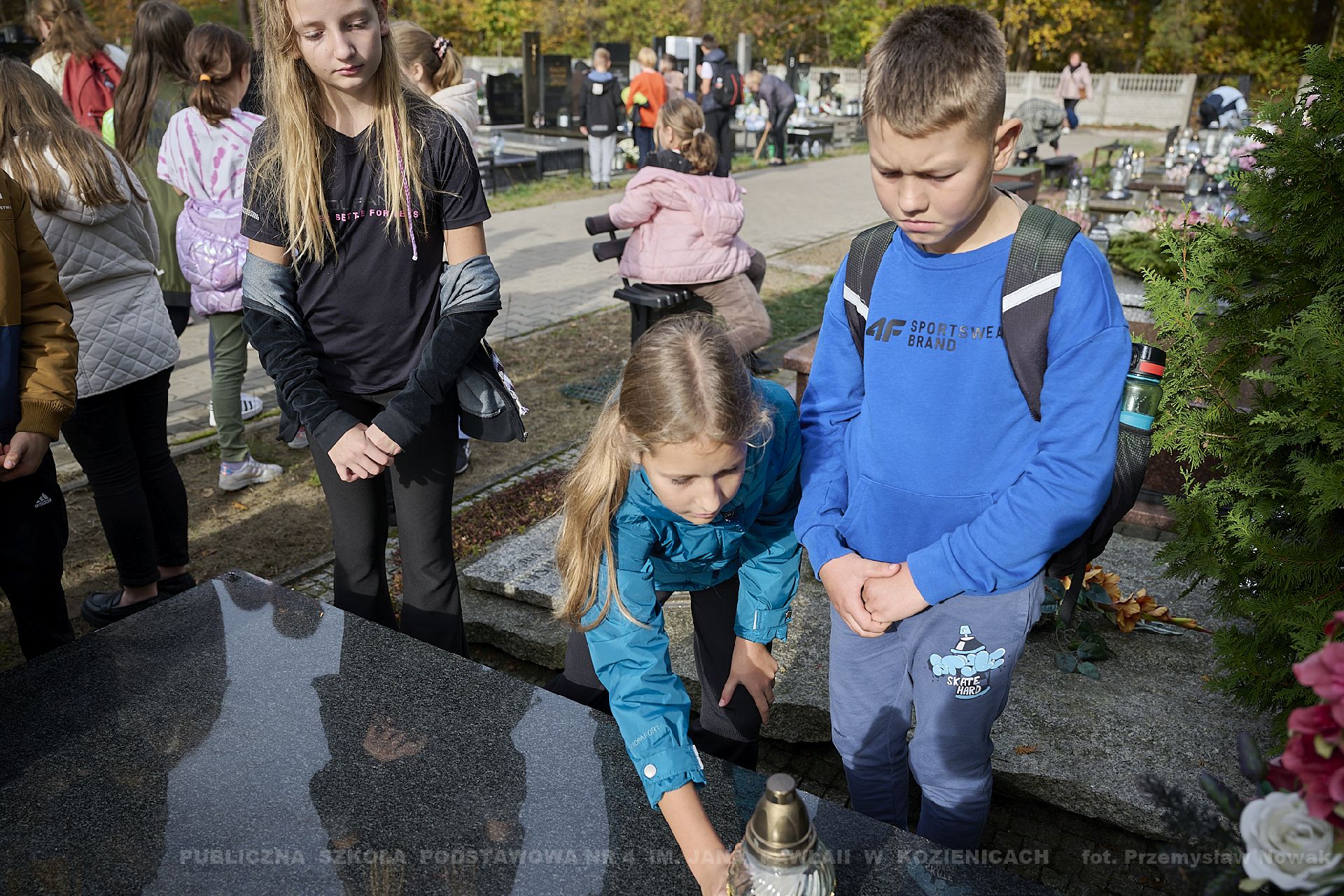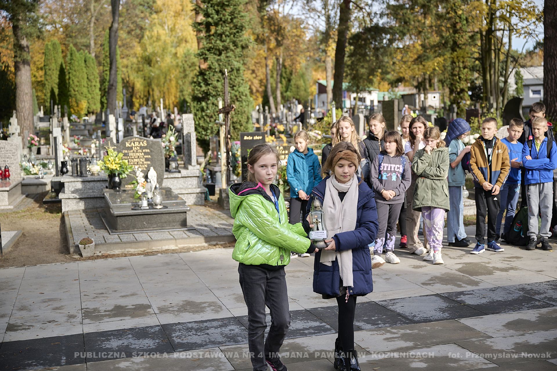 „Szkoła Pamięta” to akcja, które celem jest zwrócenie uwagi młodego pokolenia na potrzebę pielęgnowania pamięci o polskich bohaterach związanych z historią naszego kraju. W ramach tego przedsięwzięcia uczniowie naszej szkoły z klasy czwartej i piątej, odwiedzili miejsca pamięci, zapalili znicze i wysłuchali krótkiej prelekcji na temat żołnierzy, którzy spoczywają na naszym kozienickim cmentarzu. Tradycją stało się już to, że okazujemy pamięć pracownikom naszej szkoły, których znaliśmy i ceniliśmy, a których nie ma już z nami. Bo „nie umiera ten, kto trwa w pamięci żywych”. Opiekunami i realizatorami przedsięwzięcia byli: Pani Katarzyna Król, Pan Przemysław Nowak i Pan Grzegorz Kocyk.