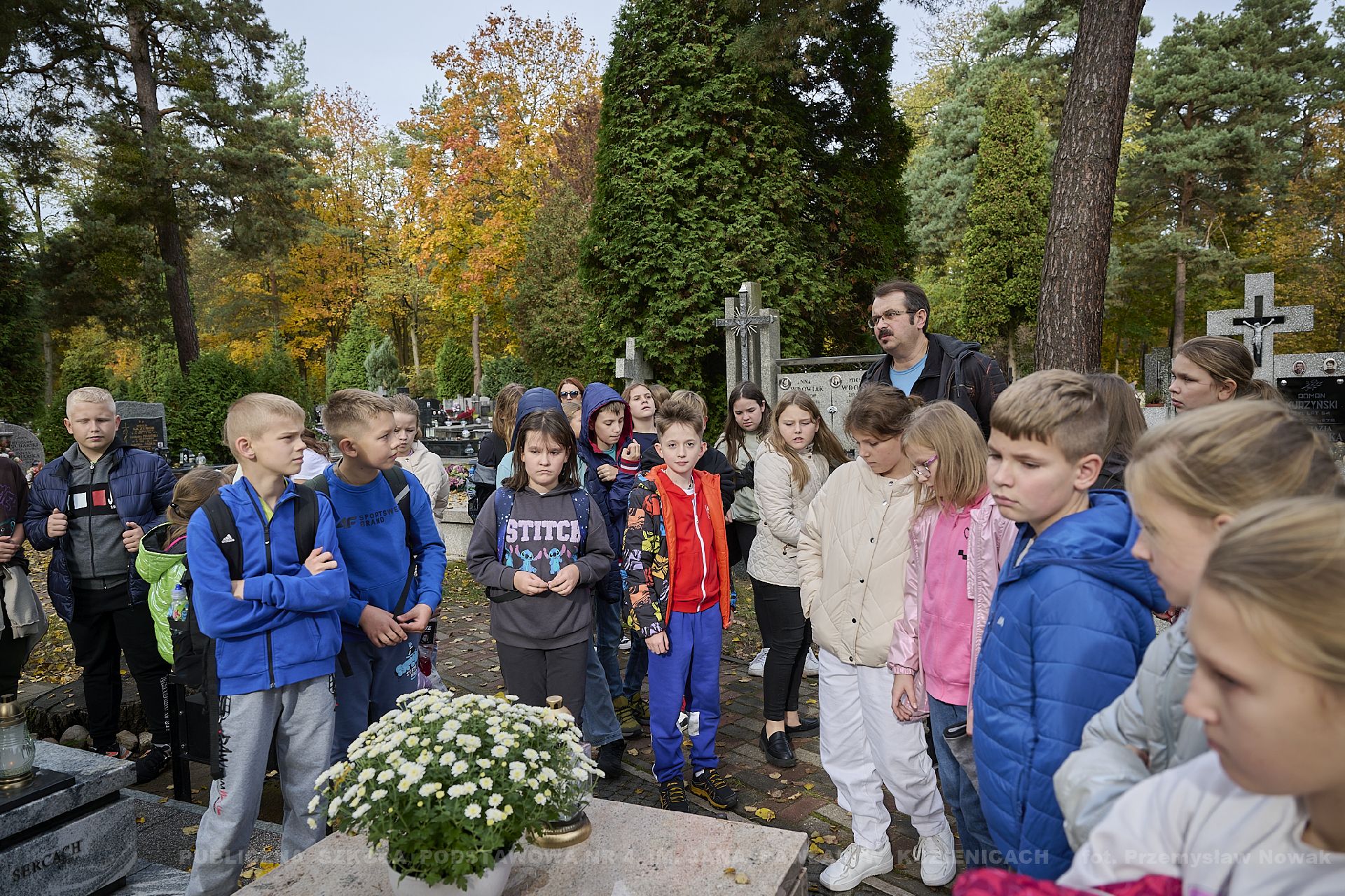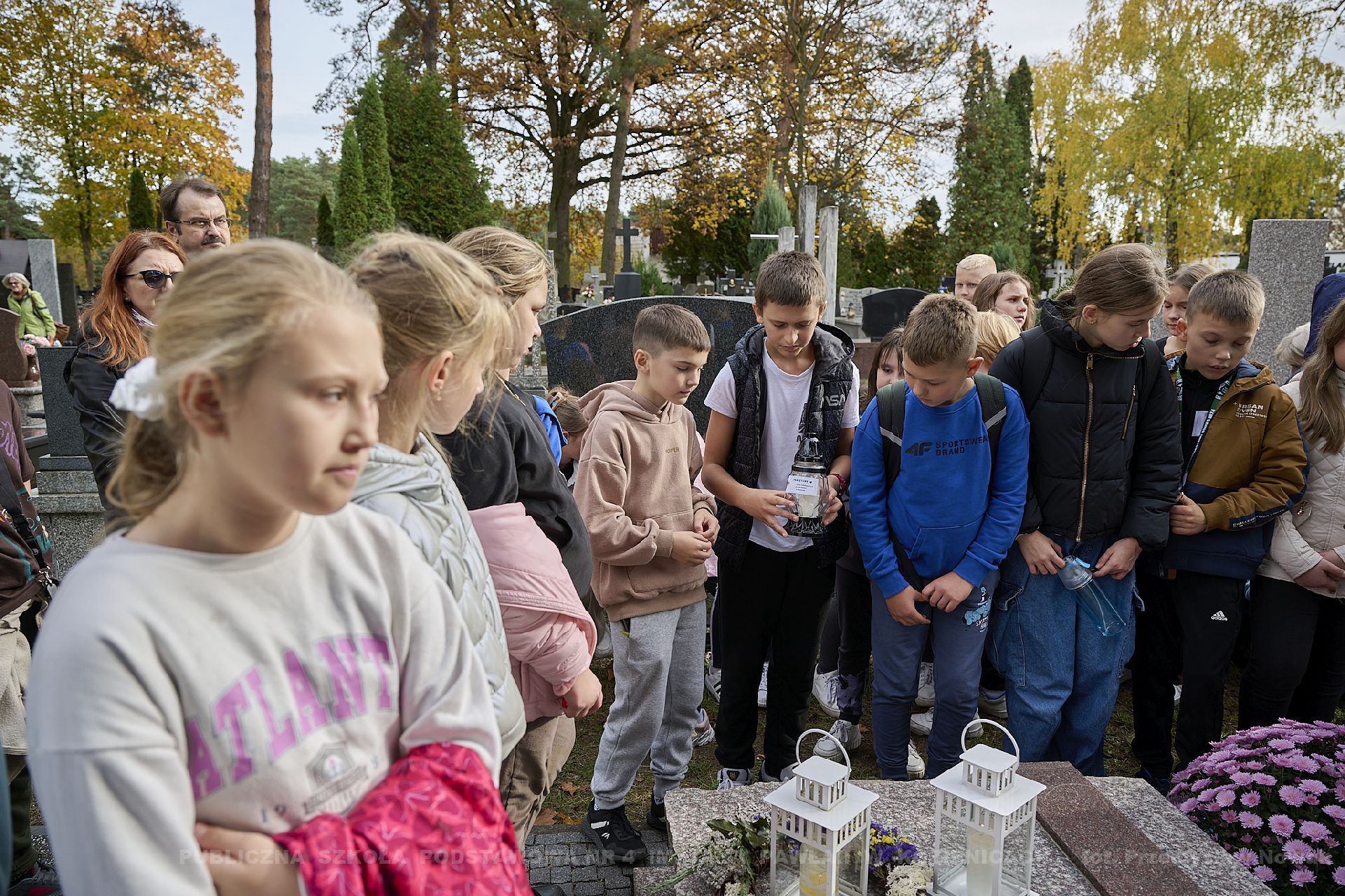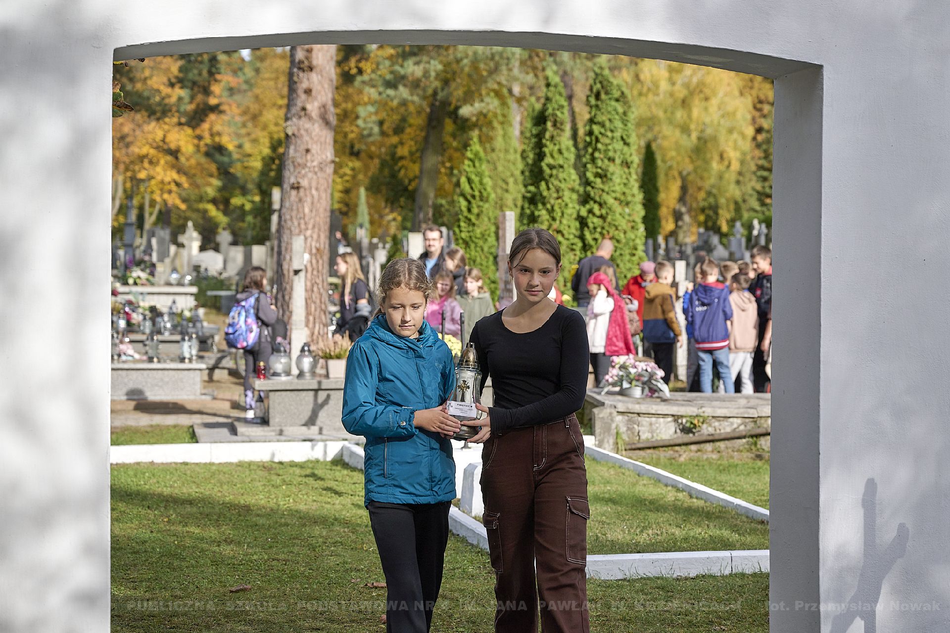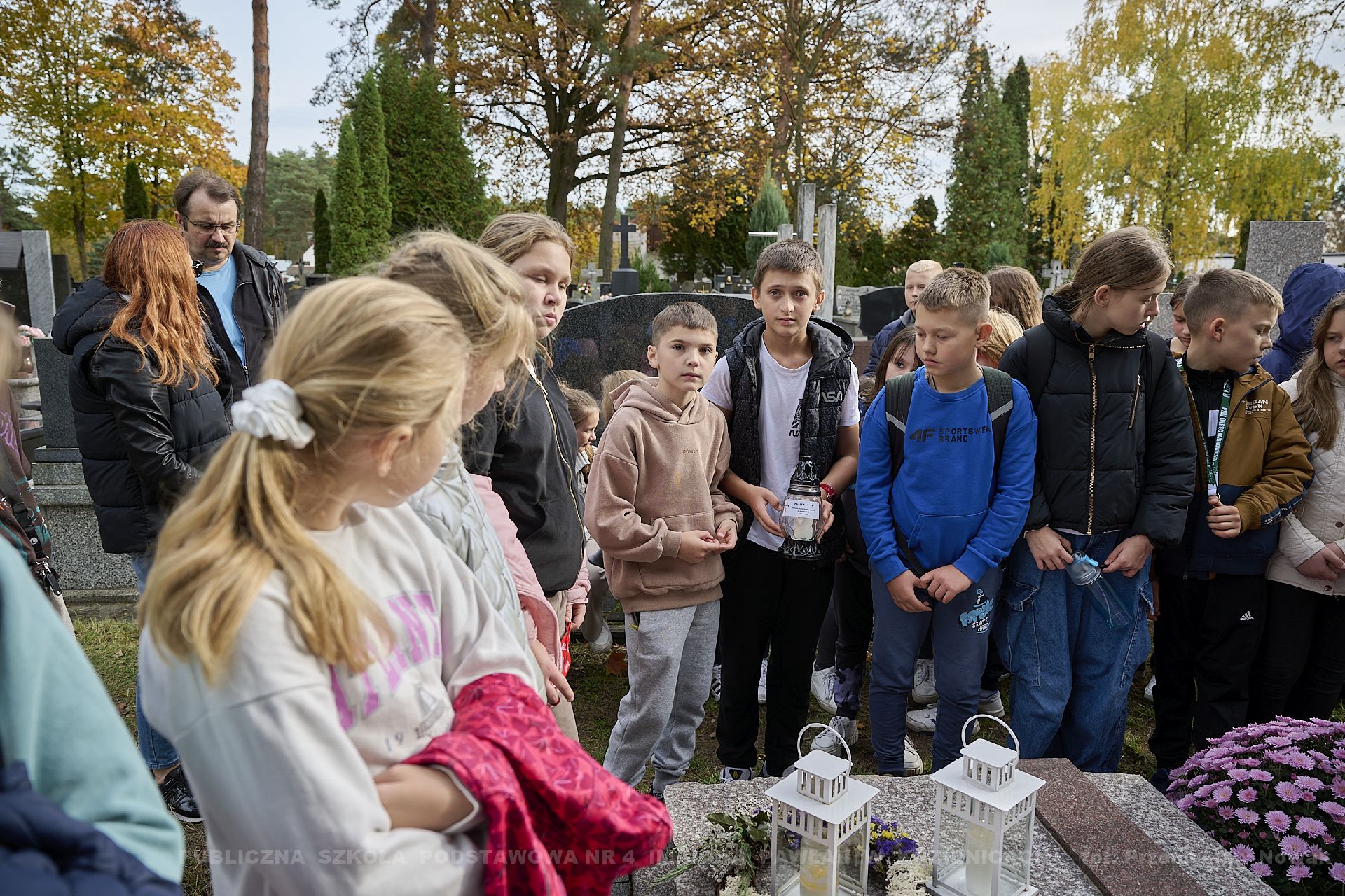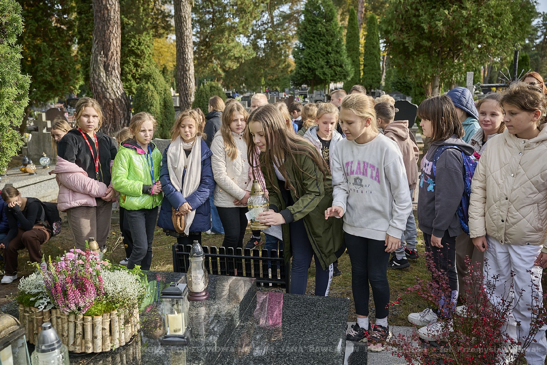 „Szkoła Pamięta” to akcja, które celem jest zwrócenie uwagi młodego pokolenia na potrzebę pielęgnowania pamięci o polskich bohaterach związanych z historią naszego kraju. W ramach tego przedsięwzięcia uczniowie naszej szkoły z klasy czwartej i piątej, odwiedzili miejsca pamięci, zapalili znicze i wysłuchali krótkiej prelekcji na temat żołnierzy, którzy spoczywają na naszym kozienickim cmentarzu. Tradycją stało się już to, że okazujemy pamięć pracownikom naszej szkoły, których znaliśmy i ceniliśmy, a których nie ma już z nami. Bo „nie umiera ten, kto trwa w pamięci żywych”. Opiekunami i realizatorami przedsięwzięcia byli: Pani Katarzyna Król, Pan Przemysław Nowak i Pan Grzegorz Kocyk.