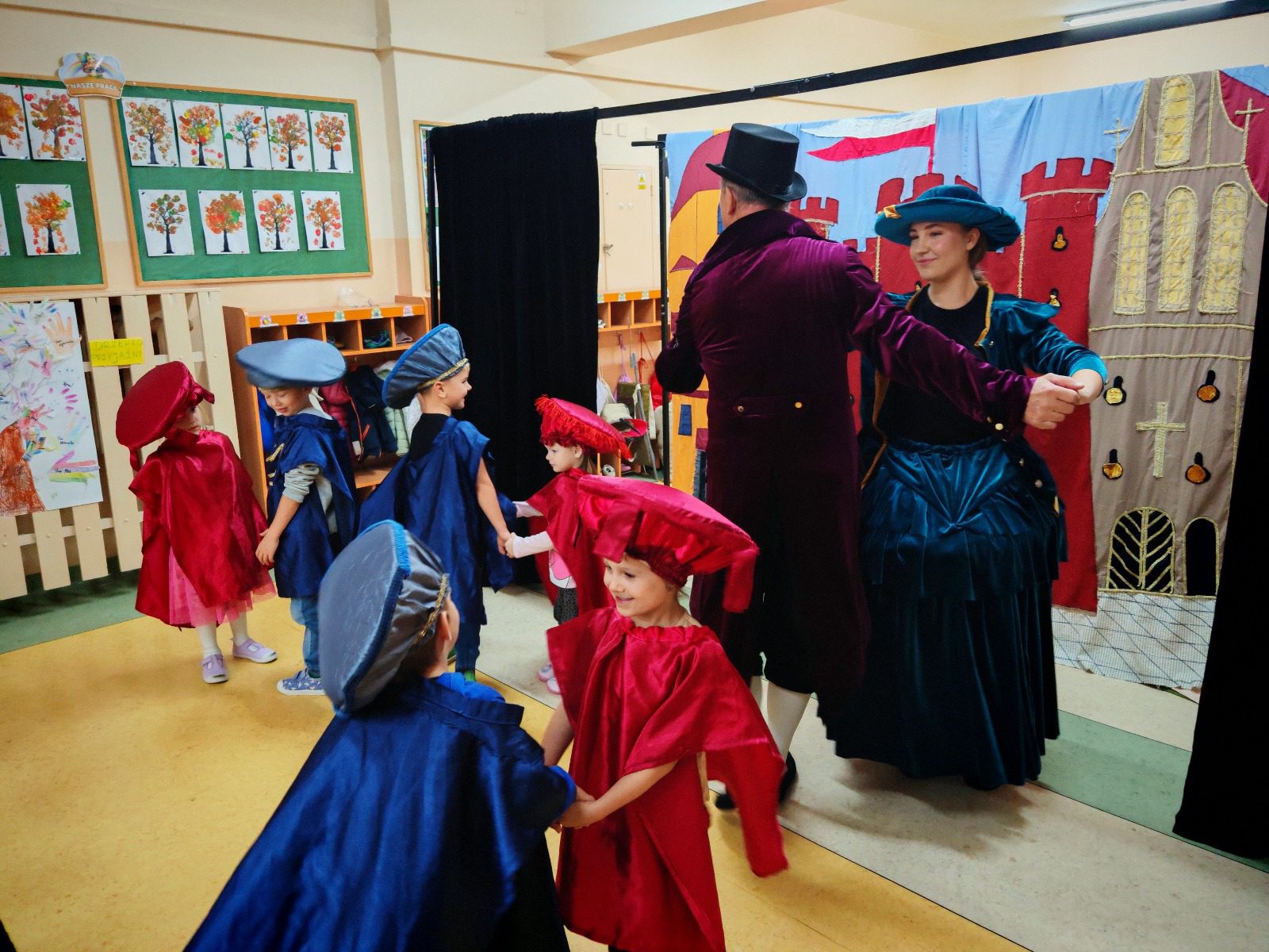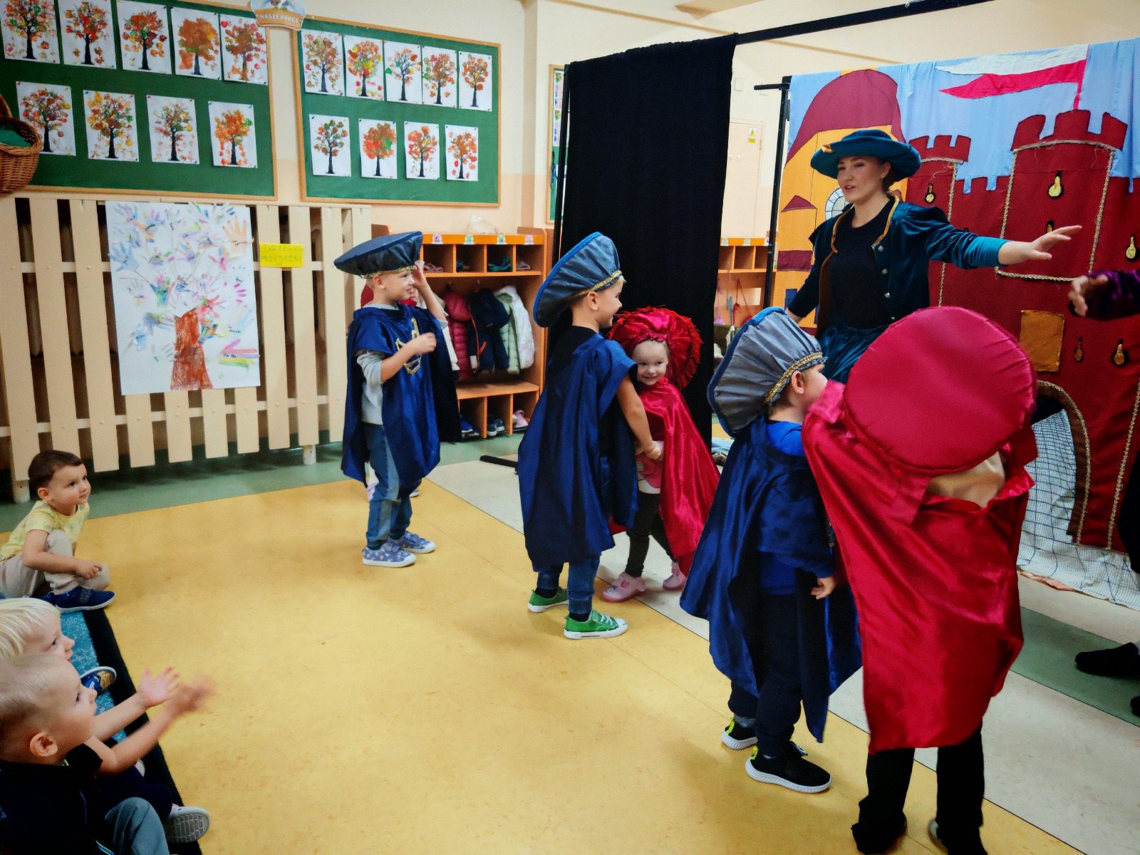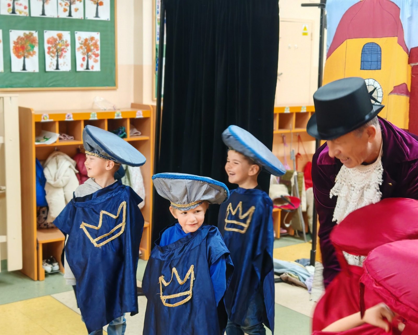 9 października nasze przedszkolaki miały okazję obejrzeć wyjątkowy spektakl pt. „Niesforne księżniczki” w wykonaniu niezawodnego teatru Spichlerz z Lublina. Przedstawienie pełne było humoru, kolorowych postaci i ważnych wartości. To wesoła opowieść o tym, że nie każda księżniczka musi być idealna – czasem warto być sobą, nawet jeśli oznacza to trochę… niesforności. Teatrzyk dostarczył nie tylko mnóstwo śmiechu, ale też okazji do rozmów z dziećmi o emocjach, przyjaźni i akceptacji. Dziękujemy artystom za piękne przedstawienie, a dzieciom za zaangażowanie i radość, jaką wniosły na widownię!