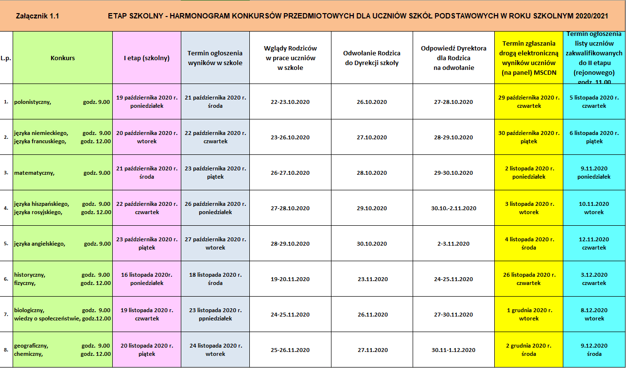 Uaktualniony harmonogram konkursów przedmiotowych na rok 2020/2021