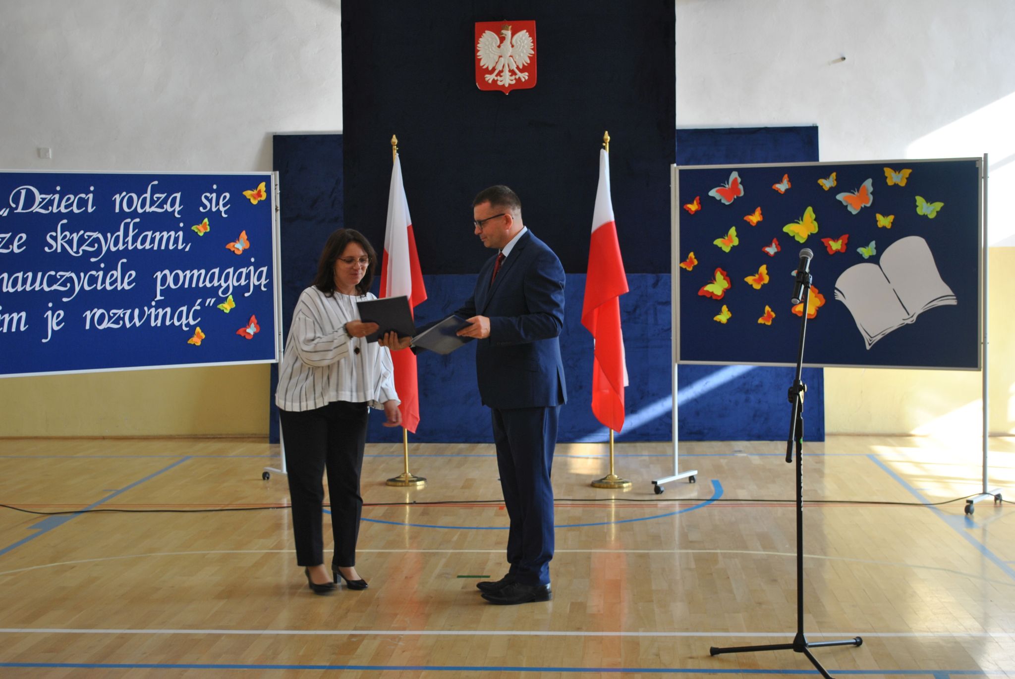 Dnia 14.10.2022 r. w Publicznej Szkole Podstawowej nr 4 w Kozienicach odbyła się akademia z okazji Dnia Edukacji Narodowej przygotowana przez Oddziały Przedszkolne. Po uroczystym wprowadzeniu sztandaru szkoły i odśpiewaniu hymnu głos zabrał Pan Dyrektor Andrzej Suwała, przywitał wszystkich nauczycieli, pracowników obsługi, przedstawicieli rodziców oraz przedszkolaków. Podczas wystąpienia Pan Dyrektor złożył podziękowania za pracę na rzecz nauczania i wychowania młodego pokolenia wszystkim pracownikom Oddziałów Przedszkolnych i wręczył kilku osobom Nagrody Dyrektora za szczególne osiągnięcia.