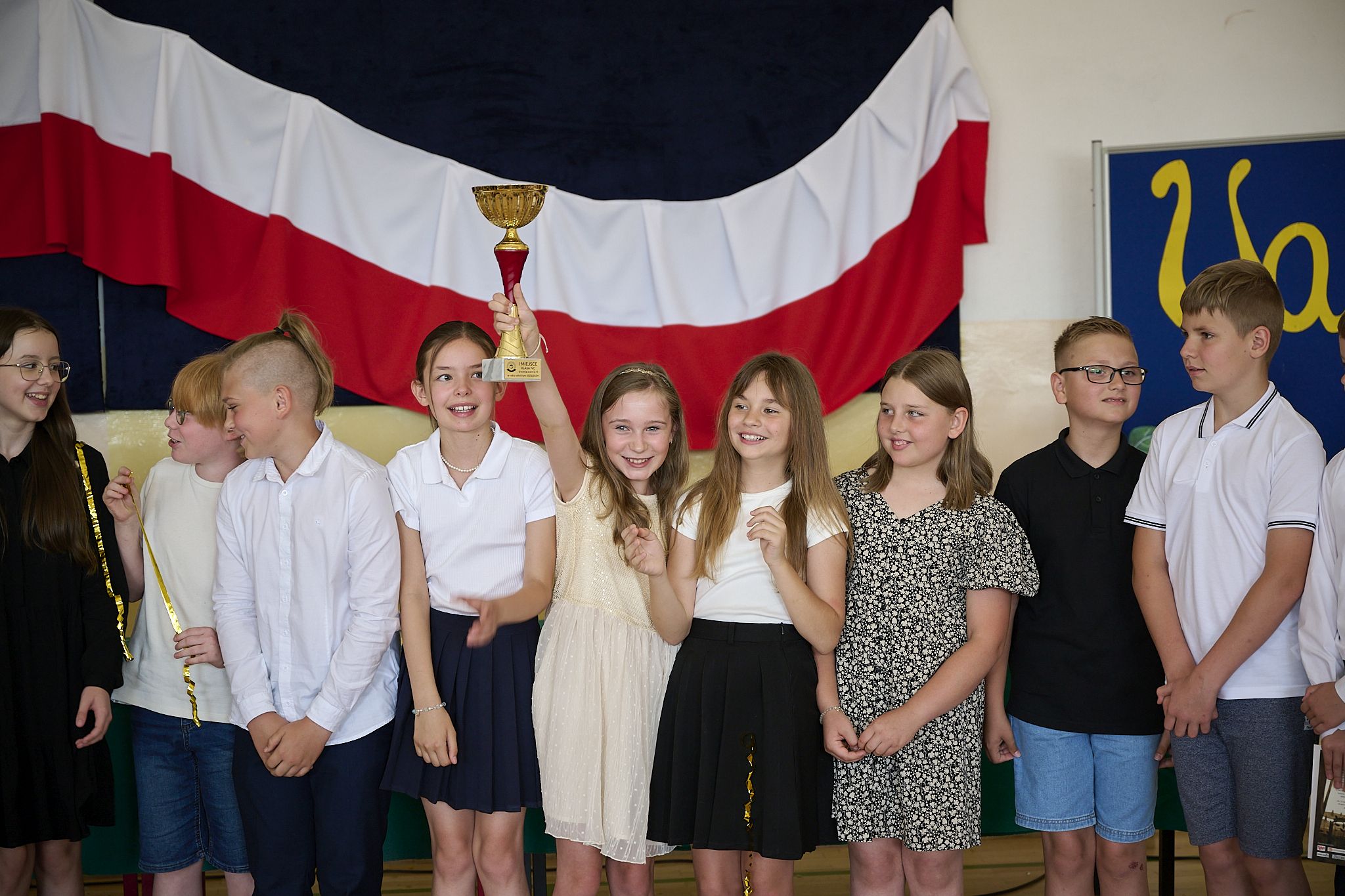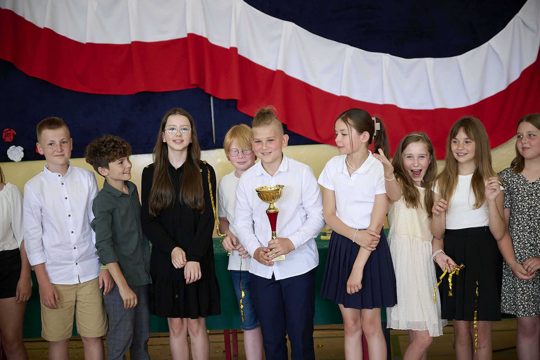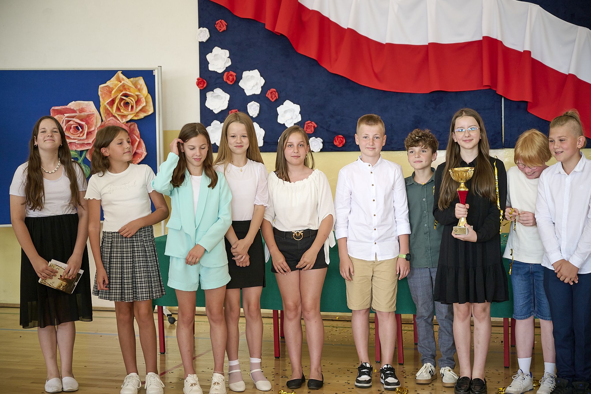 Dnia 21 czerwca 2024 r. odbyło się uroczyste zakończenie roku szkolnego 2023/2024. Po odśpiewaniu hymnu państwowego dyrektor szkoły pan Andrzej Suwała podziękował uczniom i nauczycielom za sumienną pracę, pogratulował wysokich osiągnięć i życzył wszystkim udanych wakacji. Następnie wychowawcy wręczyli nagrody uczniom wyróżniającym się w nauce i zachowaniu. Miło nam poinformować, że klasa 4c zdobyła puchar za osiągnięcie najwyższej średniej w szkole z wynikiem 5.11, wychowawcą klasy jest Katarzyna Król. Po rozdaniu świadectw wszyscy udali się na zasłużony wypoczynek.