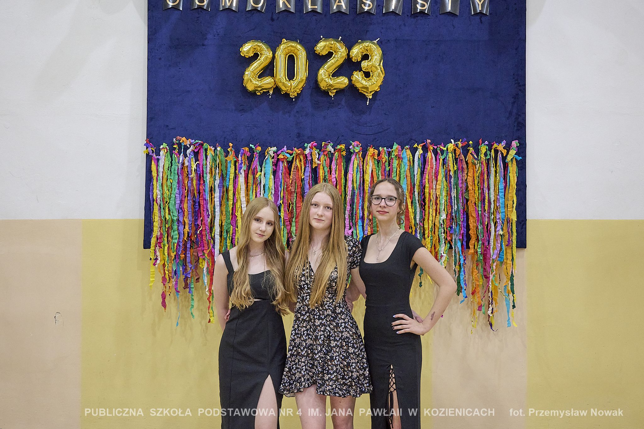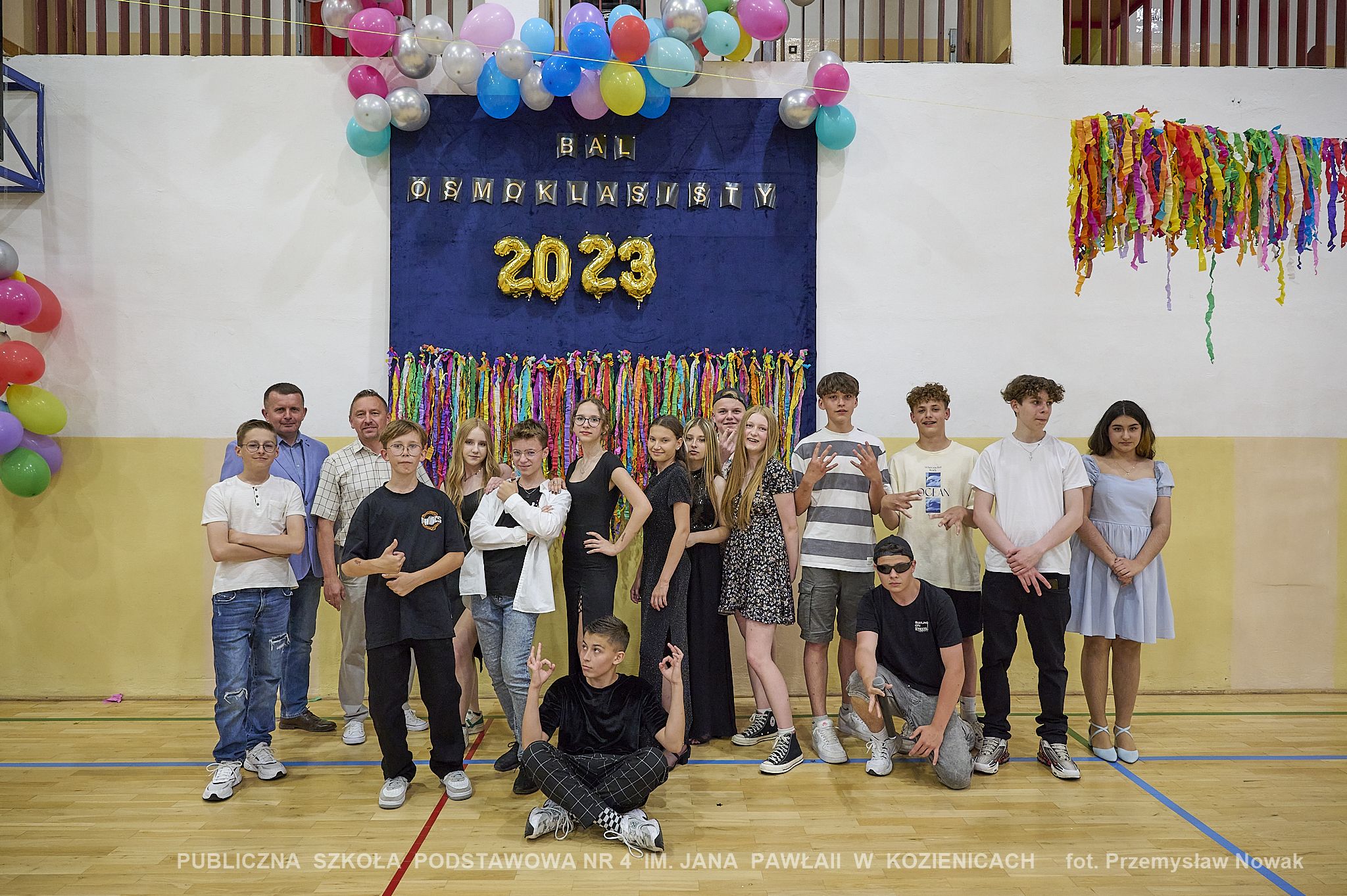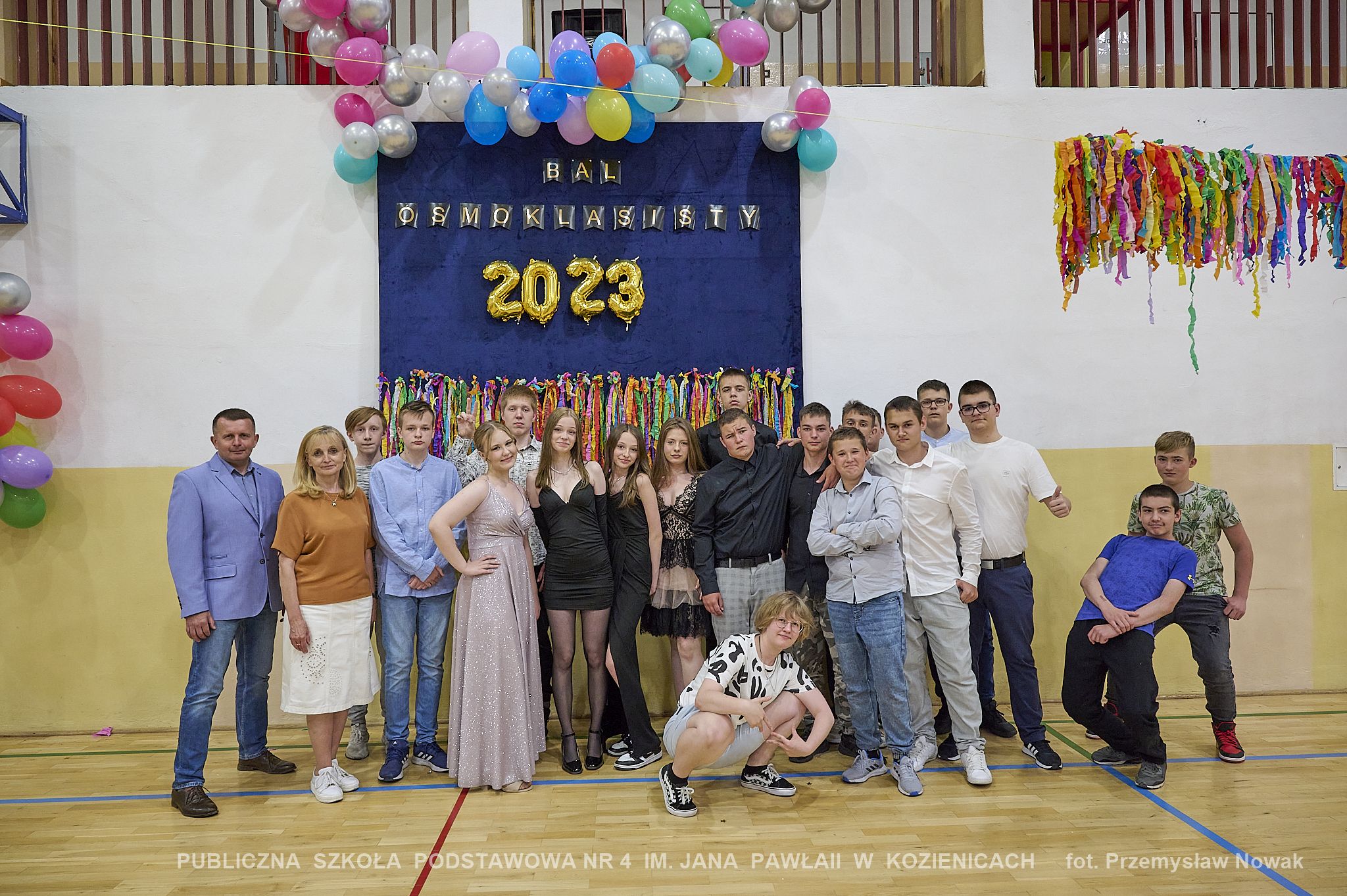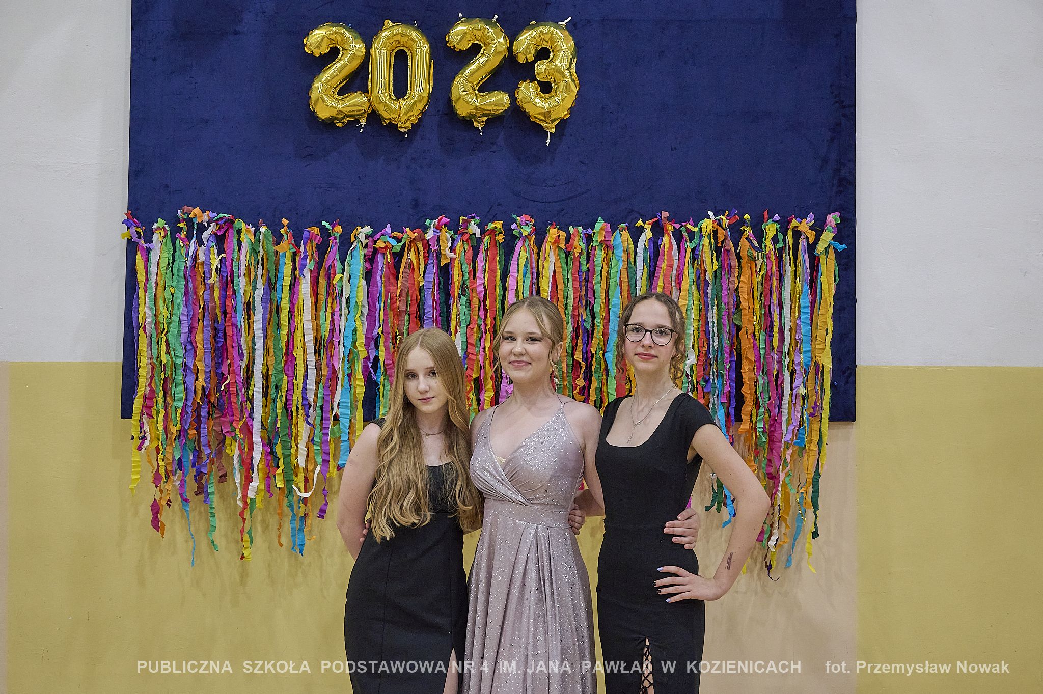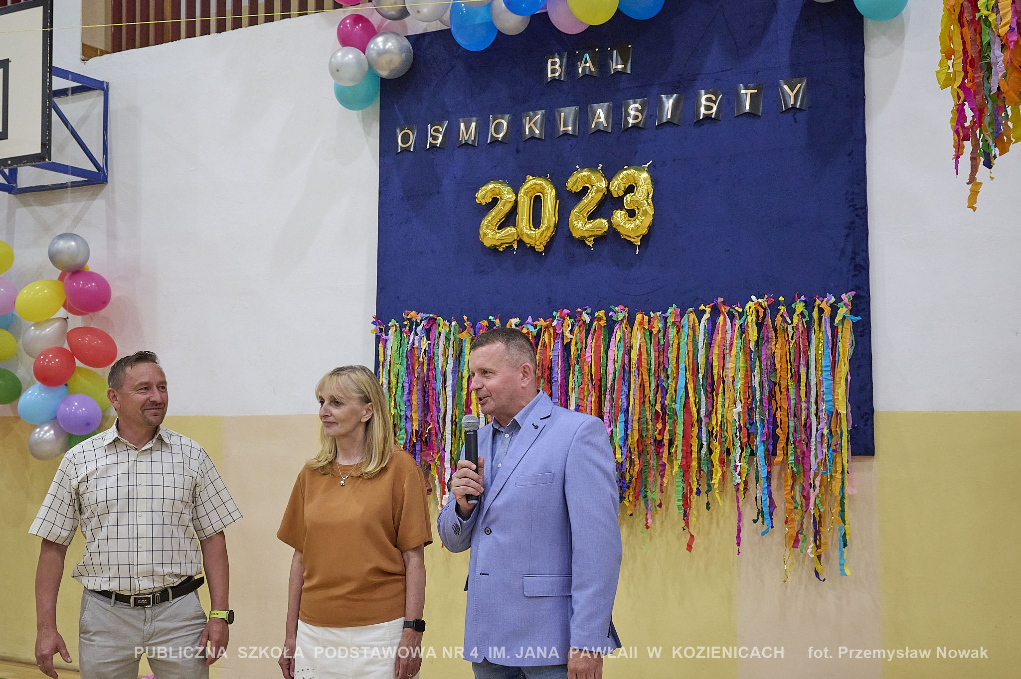 Dyrektor szkoły Andrzej Suwała wraz z wychowawcami klasy 8a Krzysztofem Cabanem i klasy 8b Bożeną Jagiełło wspólnie rozpoczęli bal ósmoklasistów.