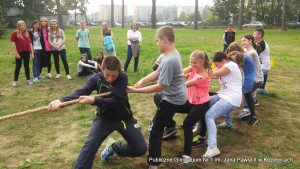Dnia 24 września 2015 roku odbył się V integracyjny rajd uczniów klas pierwszych Publicznego Gimnazjum Nr 1 im. Jana Pawła II w Kozienicach. W rajdzie wzięło udział 119 uczniów. Celem imprezy była integracja środowiska uczniowskiego poprzez wspólną zabawę. Wszyscy uczniowie wraz z wychowawcami spotkali się na terenie Miejskiego Ośrodka Sportu i Rekreacji w Kozienicach o godz. 9.00 .Na początek uczniowie sprawdzili swoją wiedzę na temat historii Kozienic. Po wspólnej rozgrzewce przy muzyce rozpoczęli drużynowe zmagania w konkurencjach sportowych na wesoło. Poszczególne zadania były nagradzane punktami. Po ich podliczeniu klasyfikacja wypadła następująco: