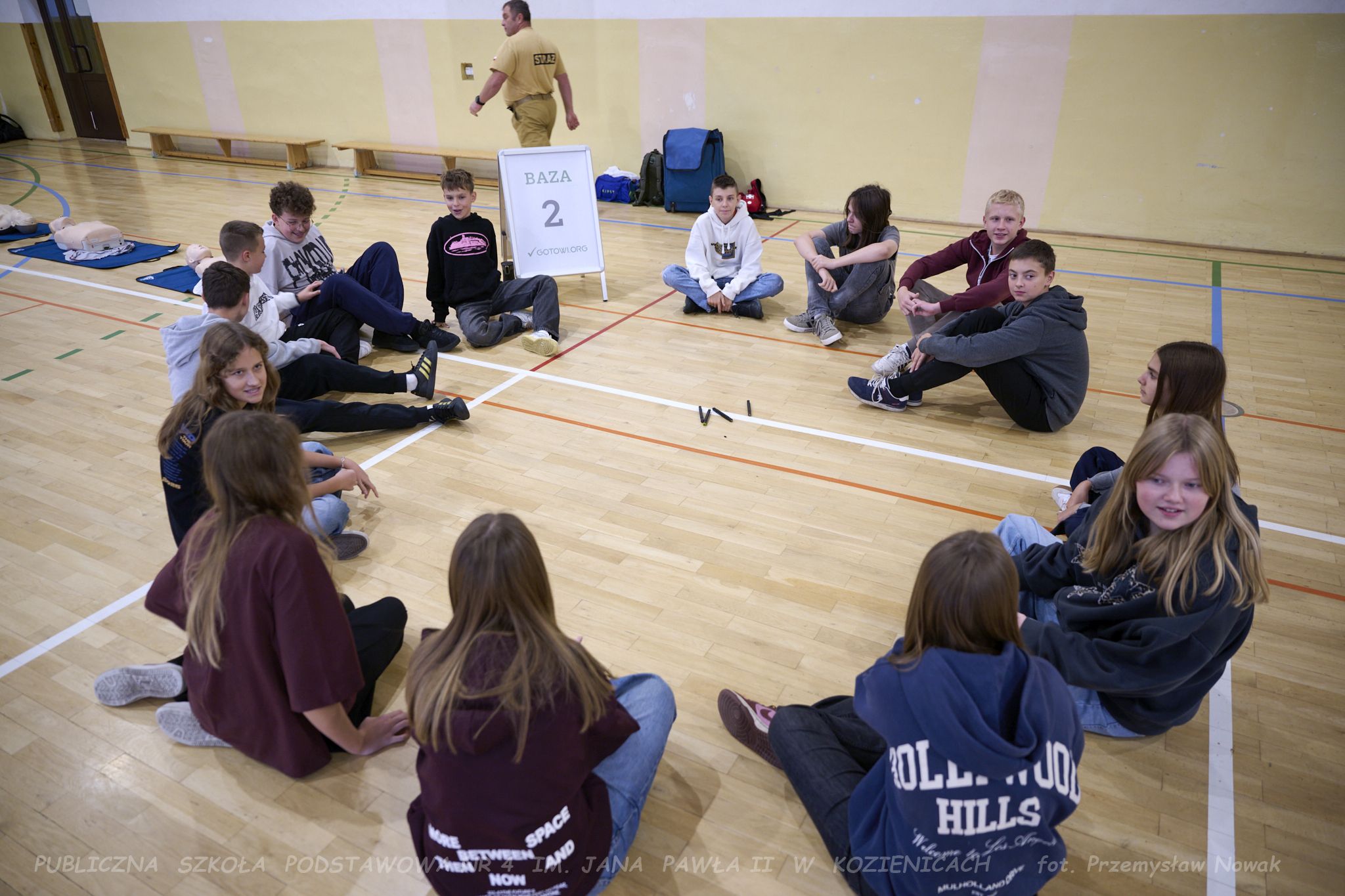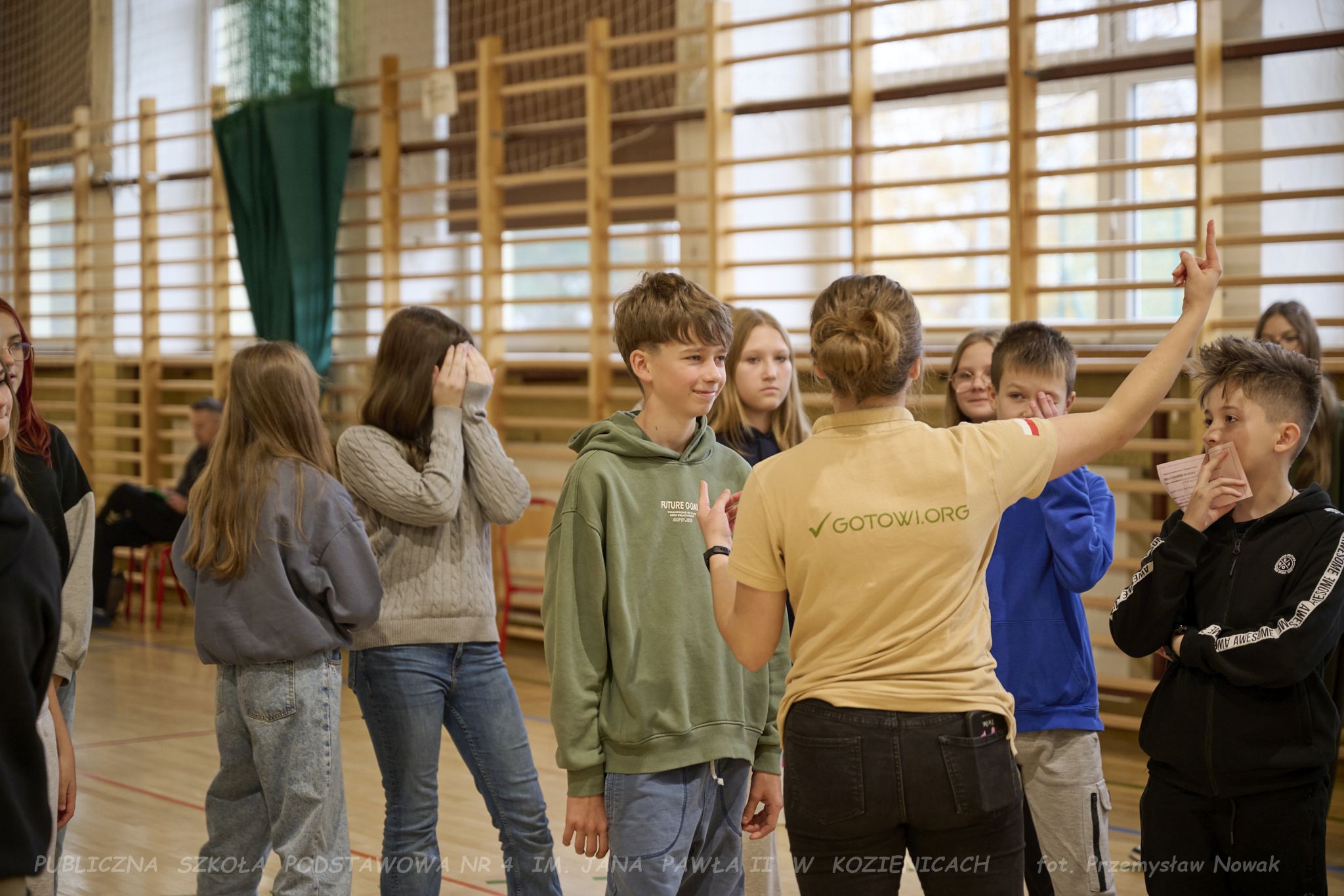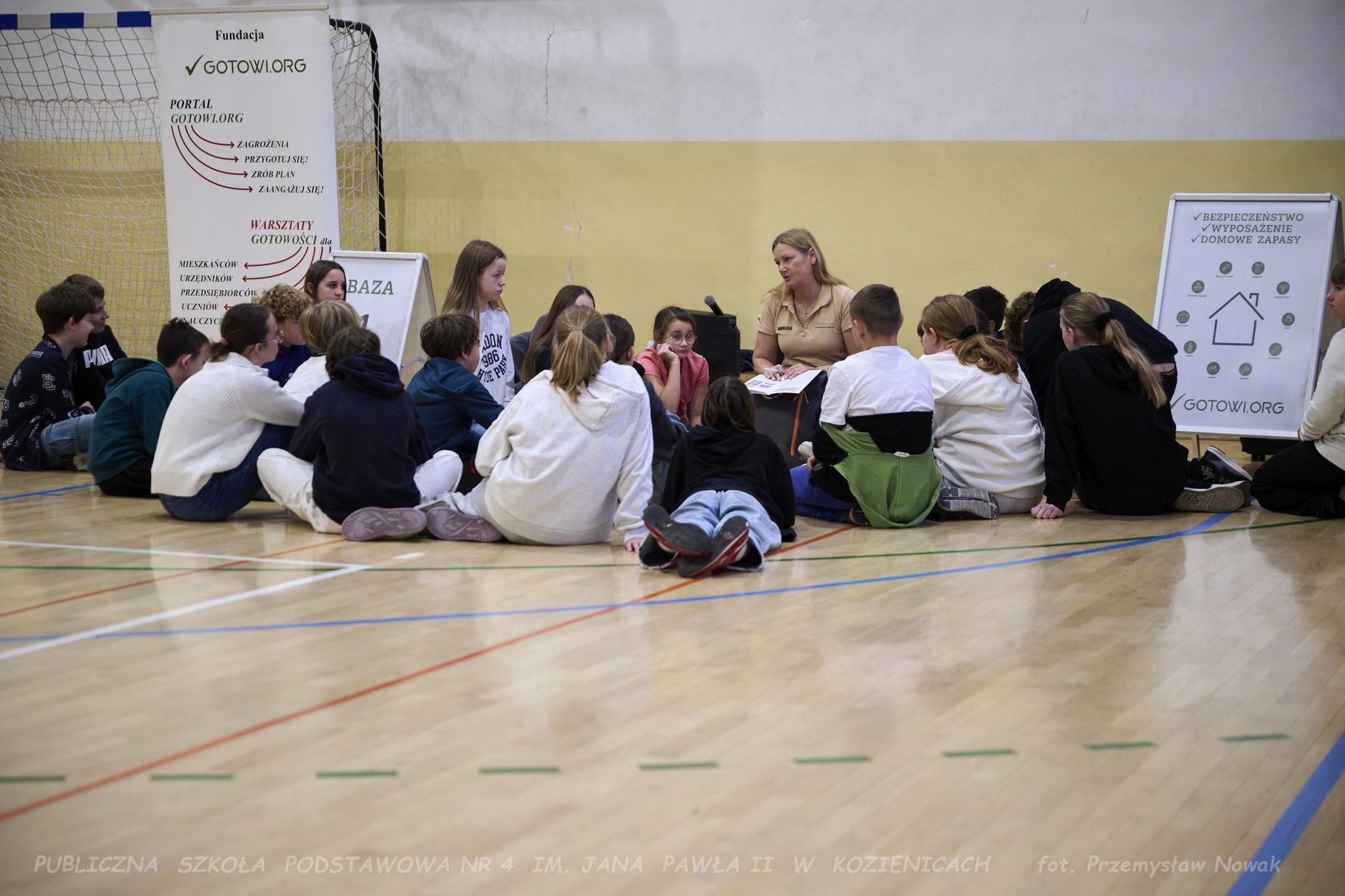 3 listopada w naszej szkole odbyły się wyjątkowe warsztaty gotowości, zorganizowane przez Fundację GOTOWI.ORG. Zajęcia poprowadzili przedstawiciele fundacji: Pani prezes Agnieszka Kordalewska, Pani Olga Radzikowska oraz Pan Krzysztof Miąśnik, którzy w ciekawy i angażujący sposób przeszkolili uczniów klas szóstych i siódmych w zakresie przygotowania na sytuacje kryzysowe, zagrożenia oraz budowania odporności na sytuacje awaryjne.