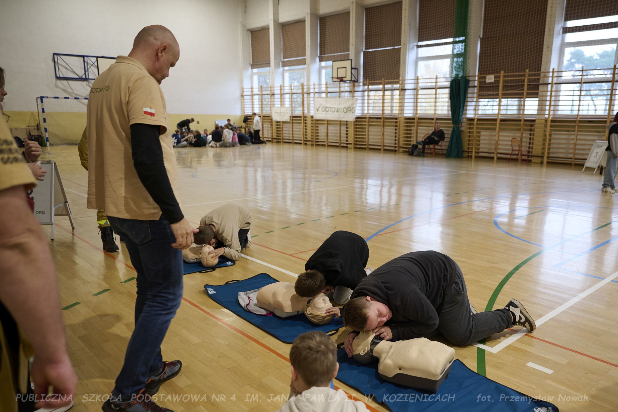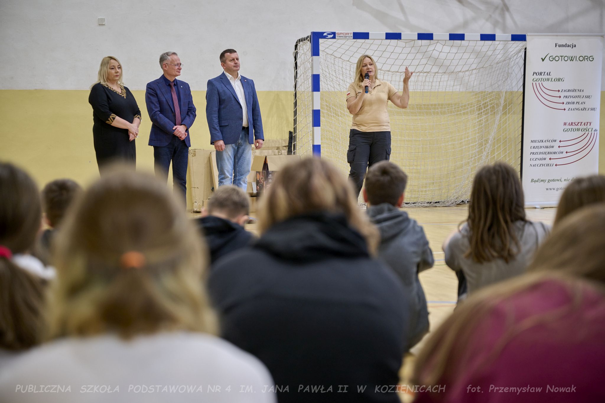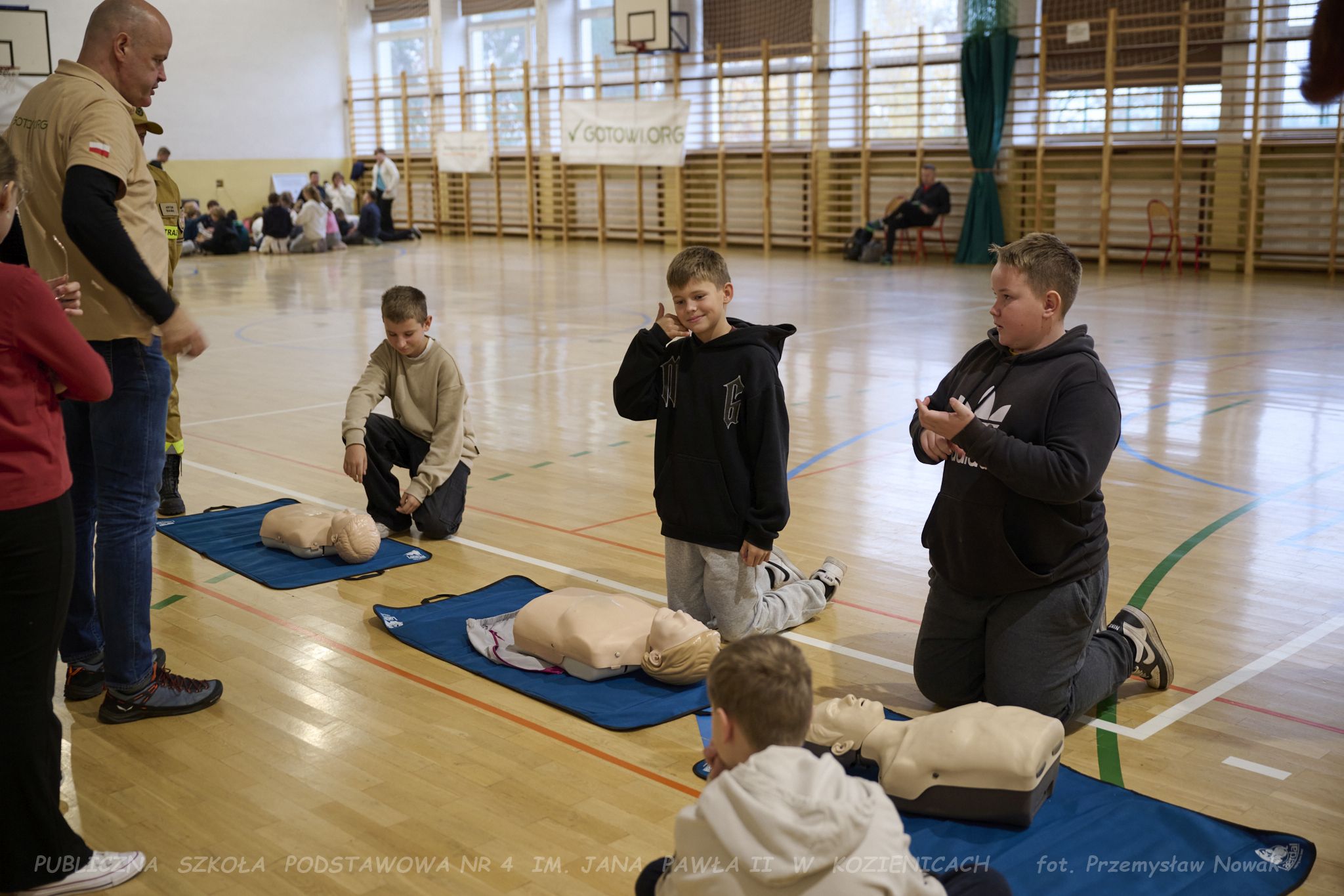 3 listopada w naszej szkole odbyły się wyjątkowe warsztaty gotowości, zorganizowane przez Fundację GOTOWI.ORG. Zajęcia poprowadzili przedstawiciele fundacji: Pani prezes Agnieszka Kordalewska, Pani Olga Radzikowska oraz Pan Krzysztof Miąśnik, którzy w ciekawy i angażujący sposób przeszkolili uczniów klas szóstych i siódmych w zakresie przygotowania na sytuacje kryzysowe, zagrożenia oraz budowania odporności na sytuacje awaryjne.